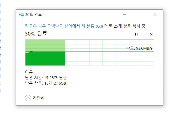 파일을 옯겨 보았습니다. USB 3.0 속도가 나옵니다.