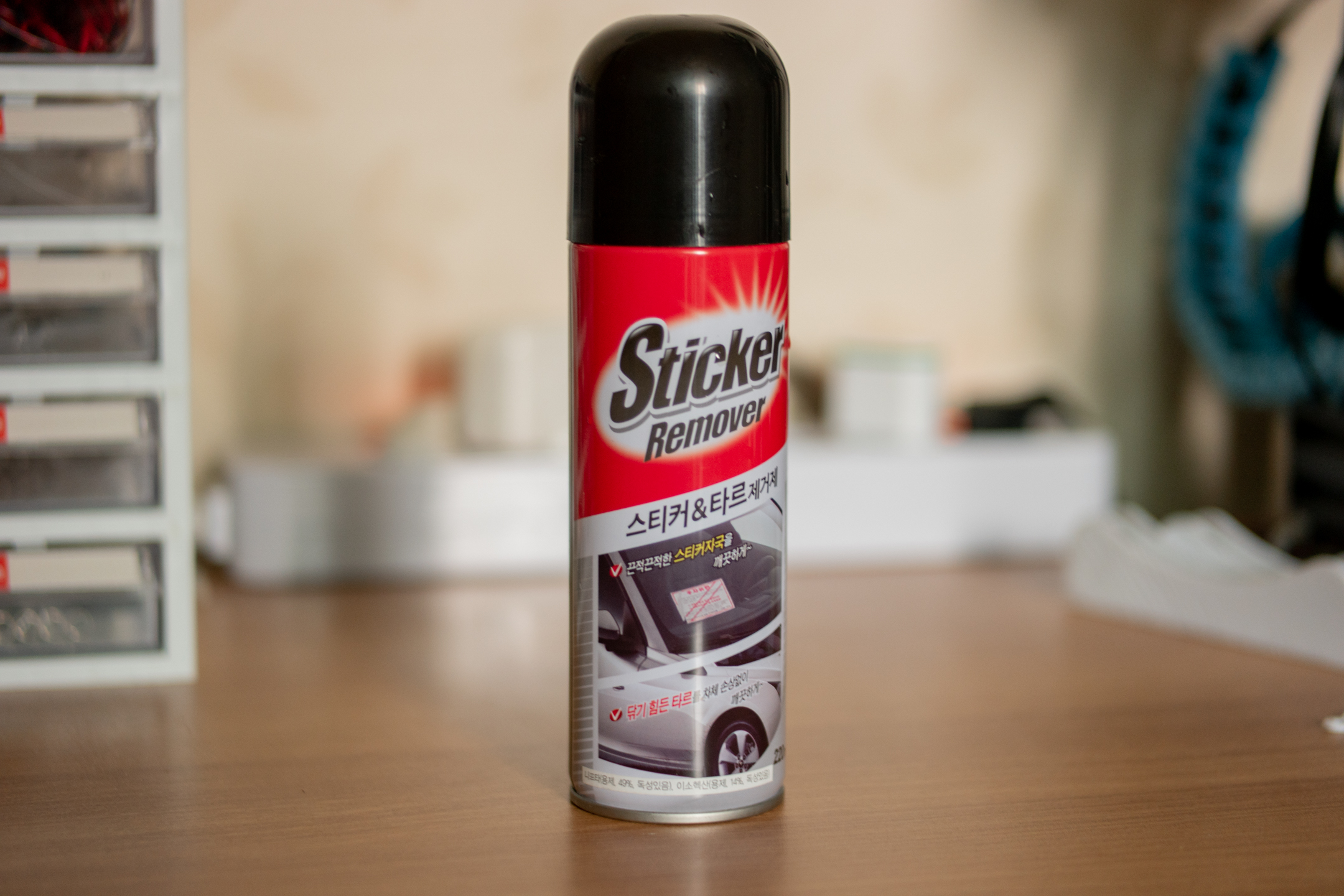스티커 제거제를 뿌리고 나서 조금 기다린 다음에 휴지로 닦으니까 테이프 자국 대부분이 사라졌습니다.