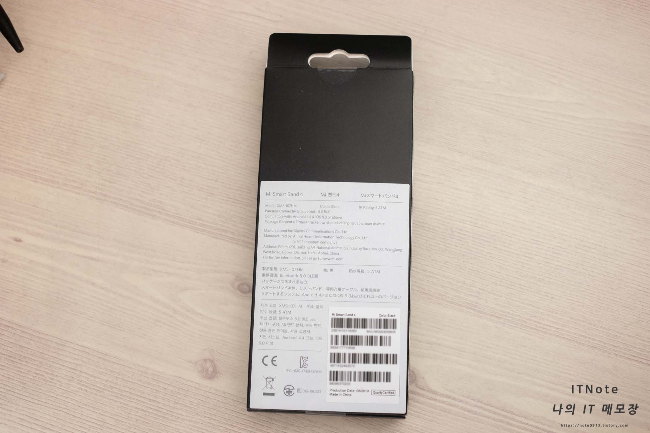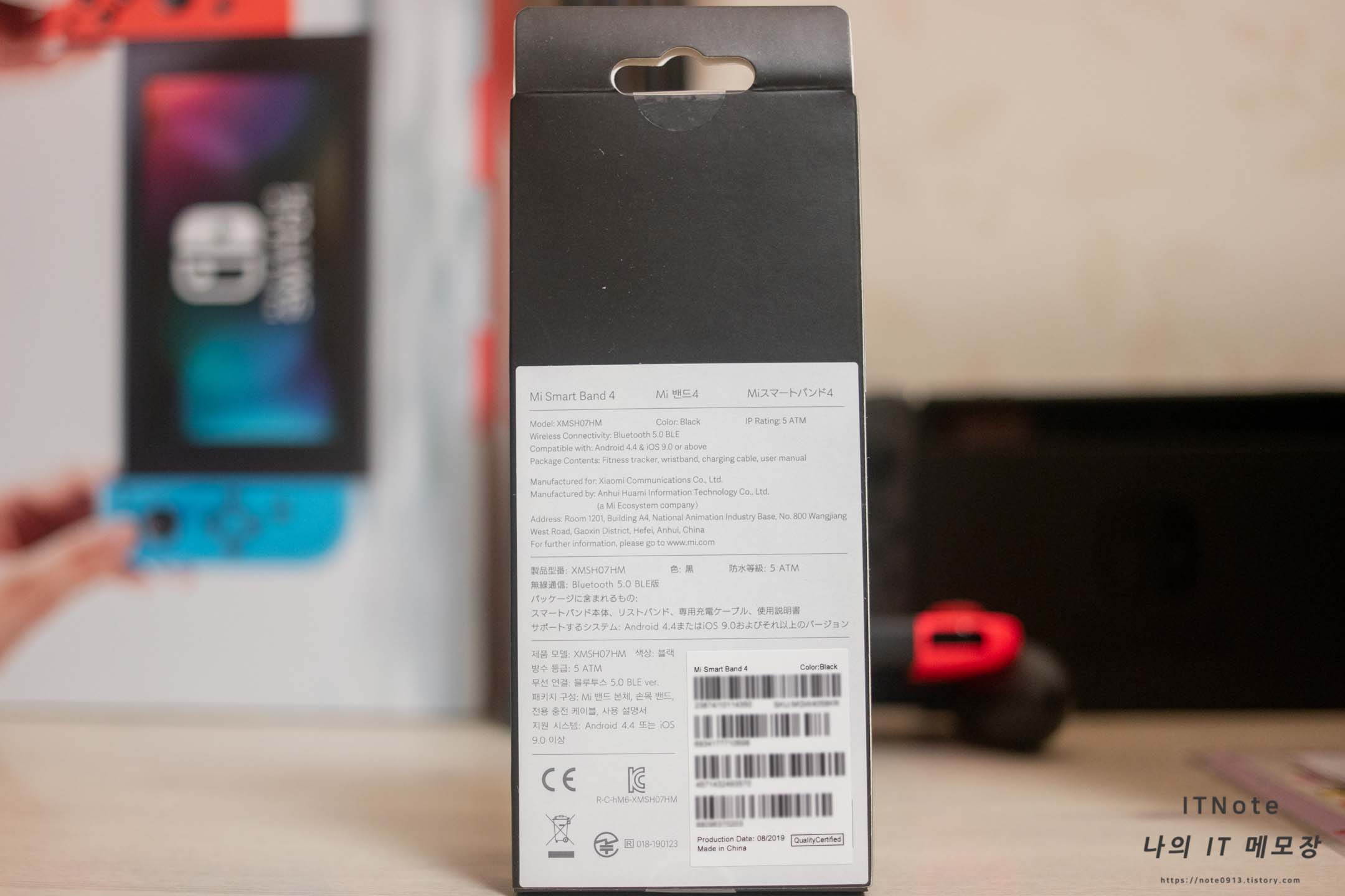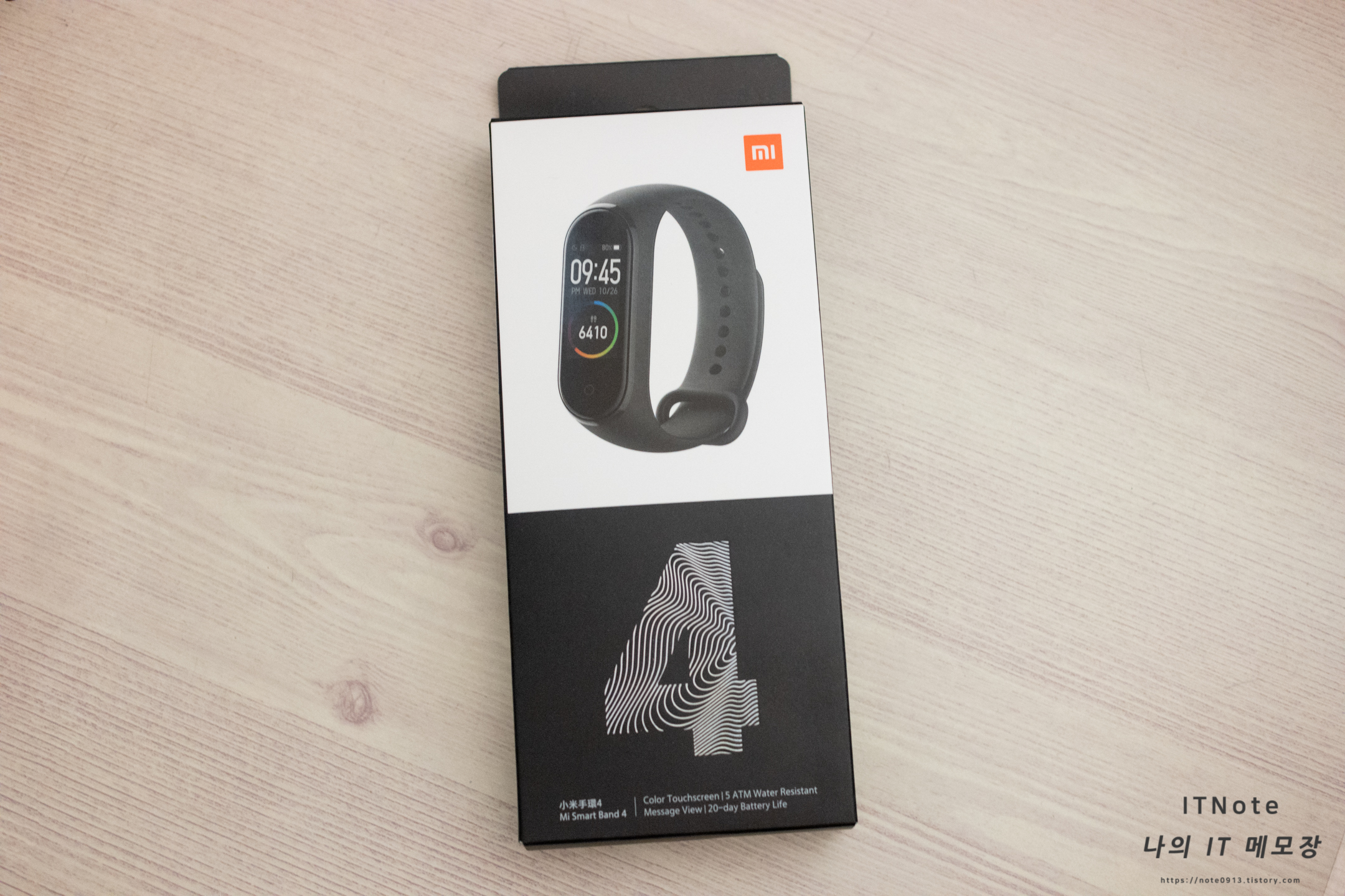 미밴드4의 박스패키지 전면입니다. 박스 디자인은 깔끔하게 잘 나온 것 같습니다.
