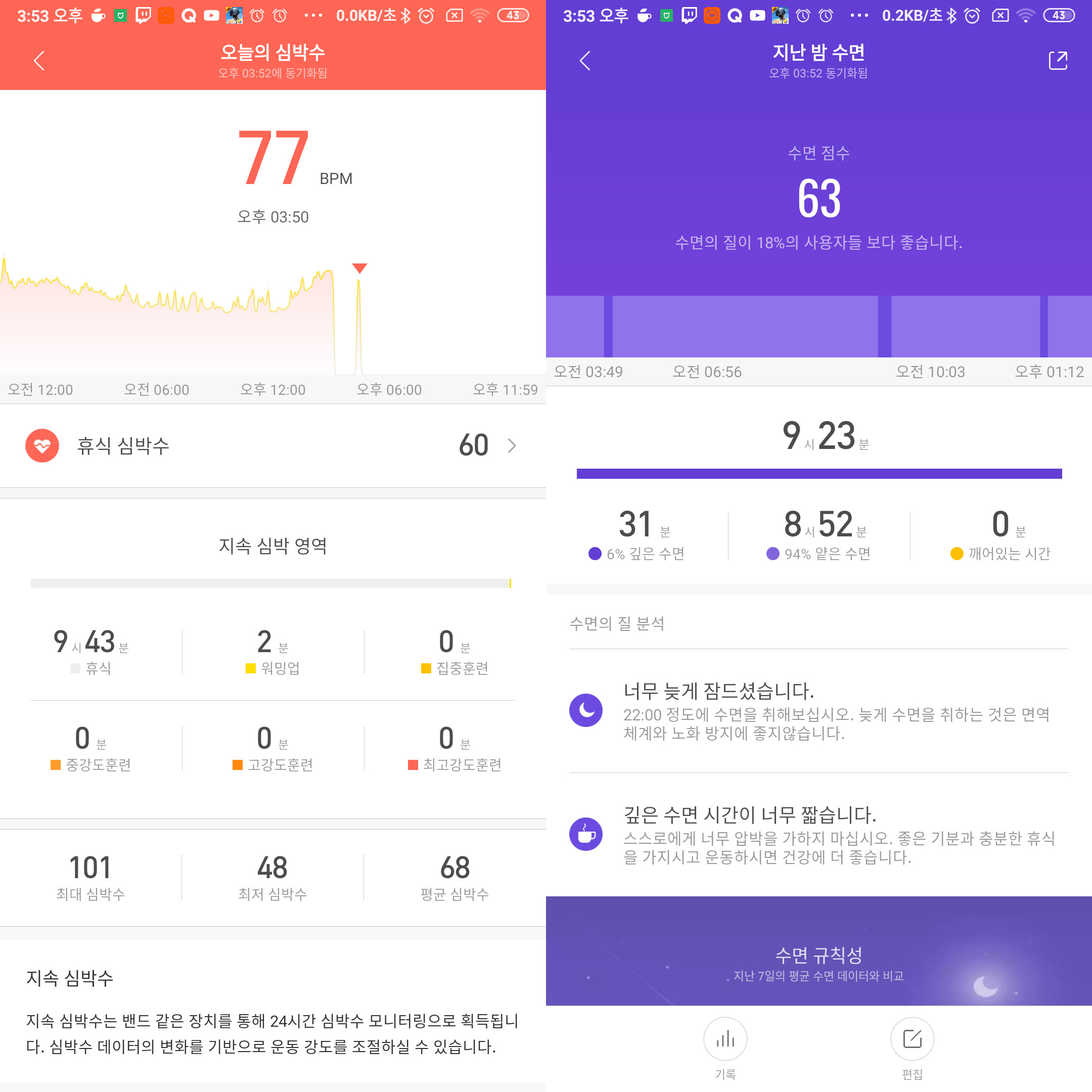 수면체크의 경우에는 꽤 정확해서 나름 괜찮은 기능인 것 같습니다.
