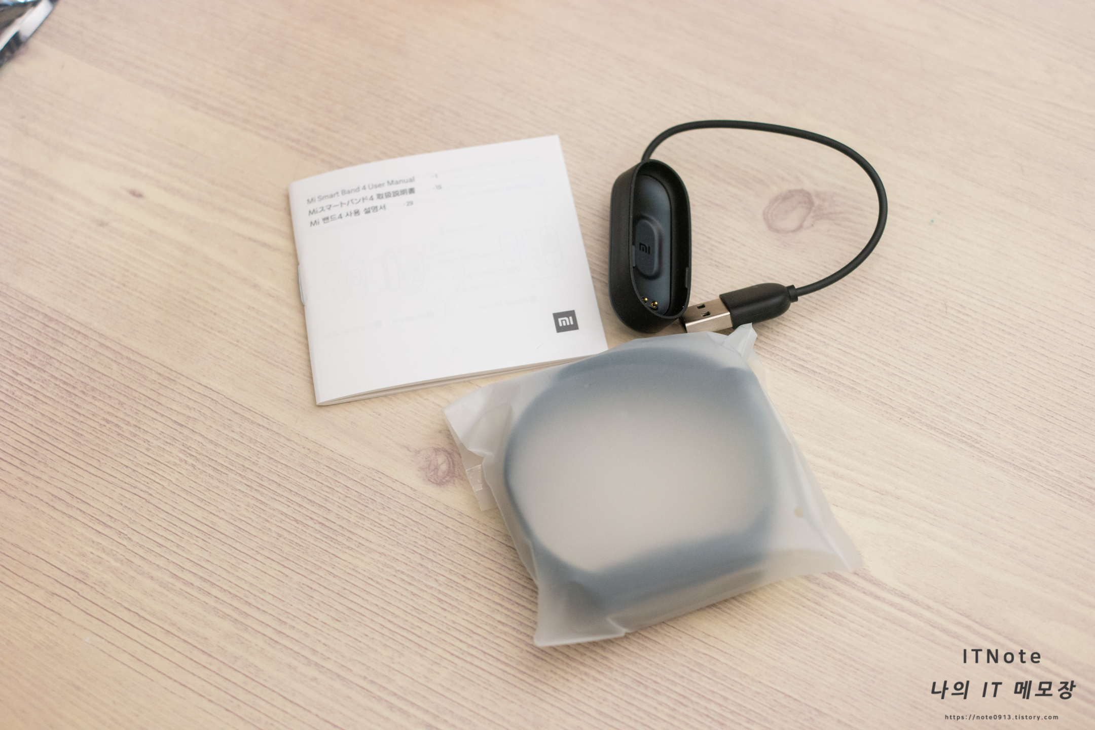 박스안 구성은 이렇게 되어있습니다. 미밴드와 손목밴드는 결합된 채로 비닐에 포장되어 있습니다.