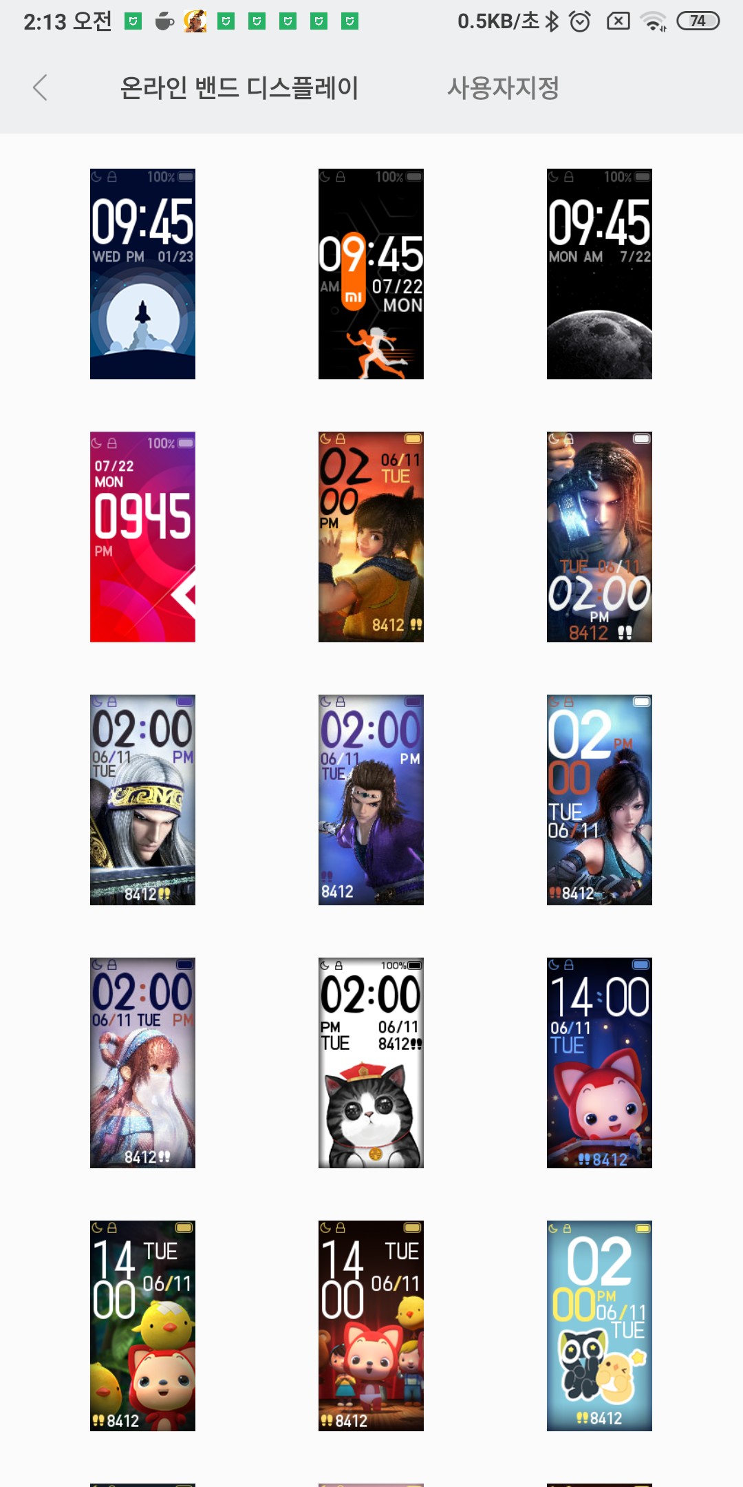 밴드 디스플레이를 설정하는 화면인데 다양한 배경화면이 있습니다. 미핏 앱말고도 다른 서드파티 앱에서도 미밴드4 배경화면을 설정할 수 있다고 합니다.