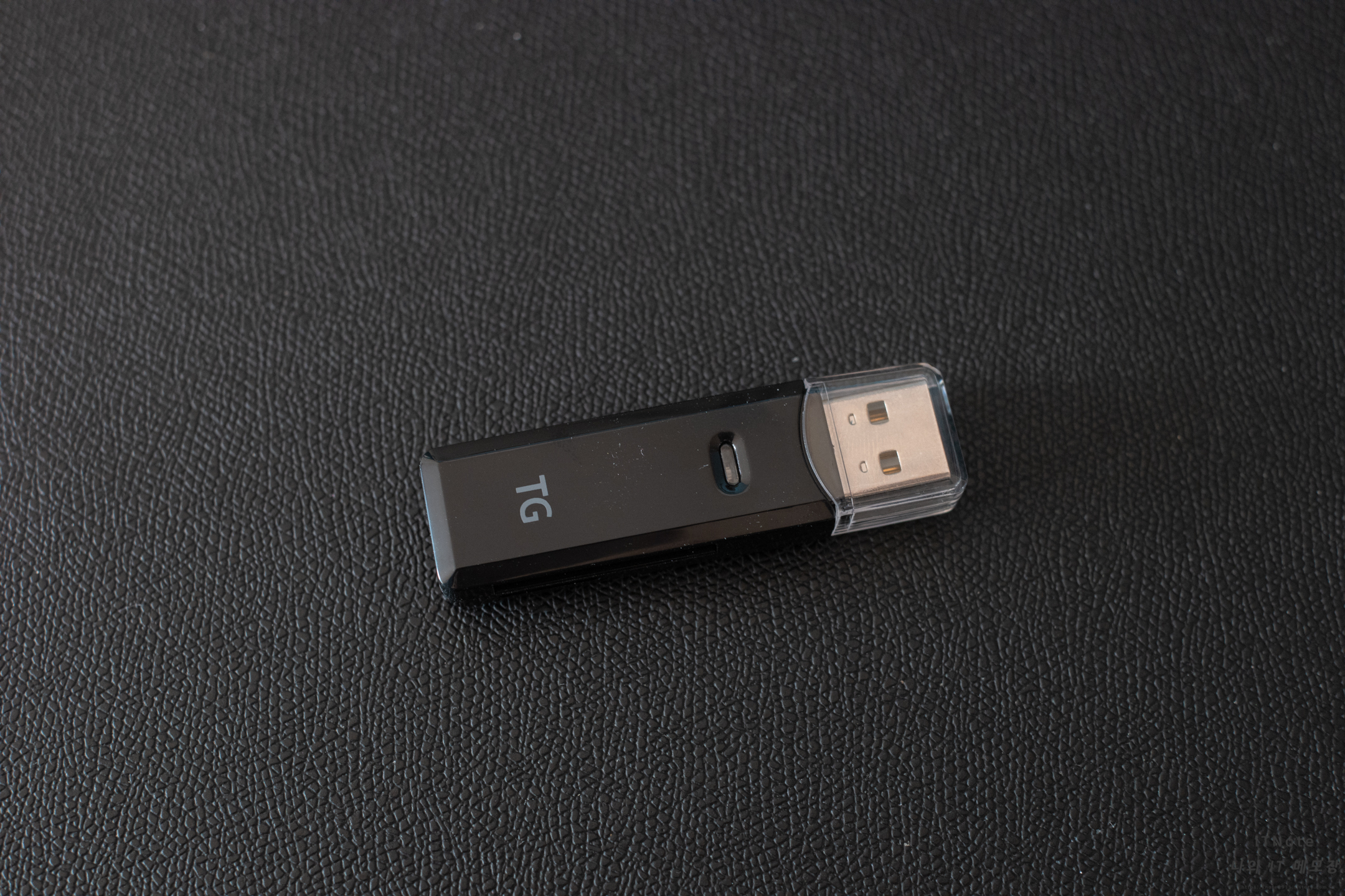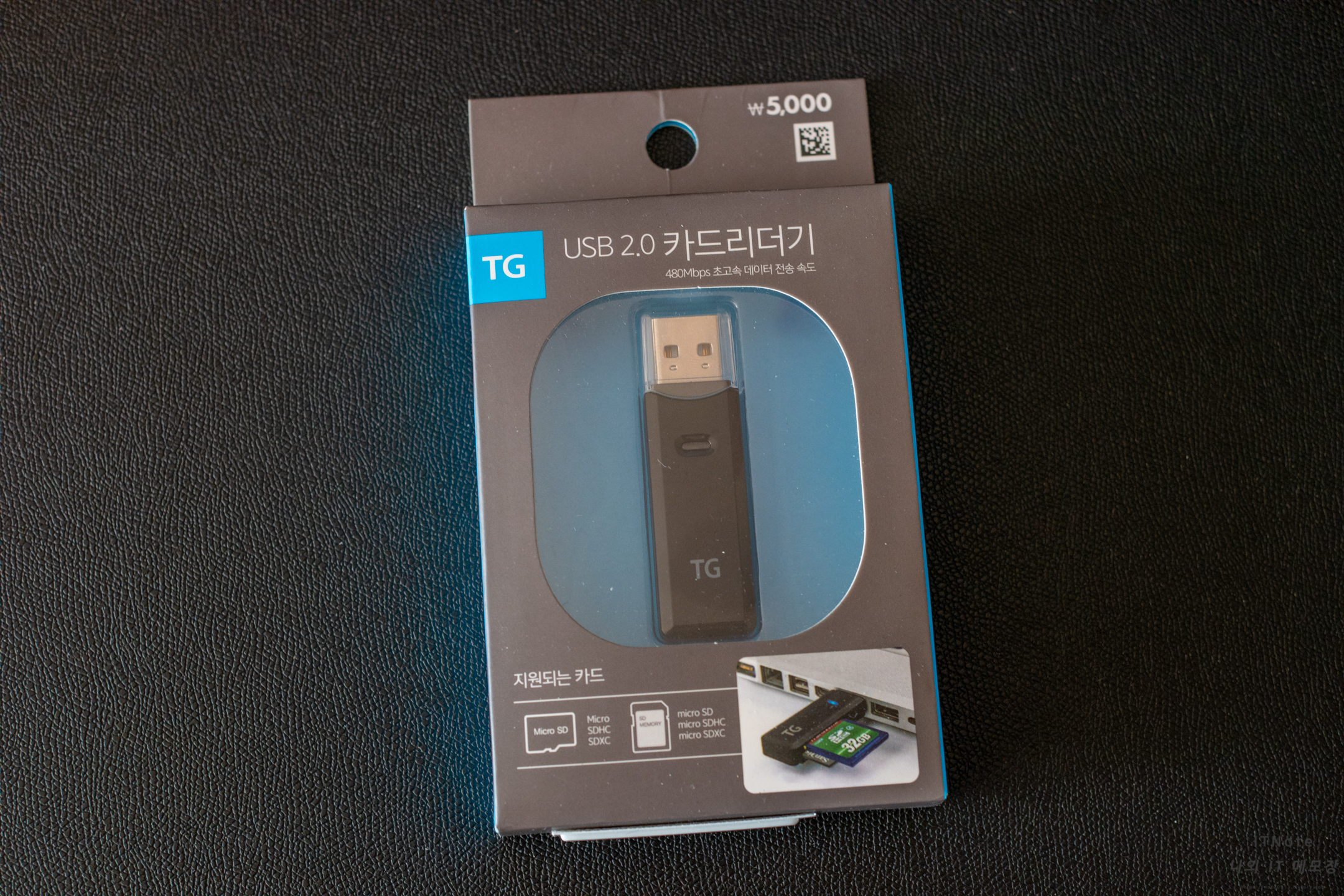 다이소에서 판매하지만 제품은 TG 제품입니다. 그래서 카드리더기에 TG 마크가 있습니다. 카드리더기 앞에 상태 표시등이 있고 USB 보호캡이 있습니다.