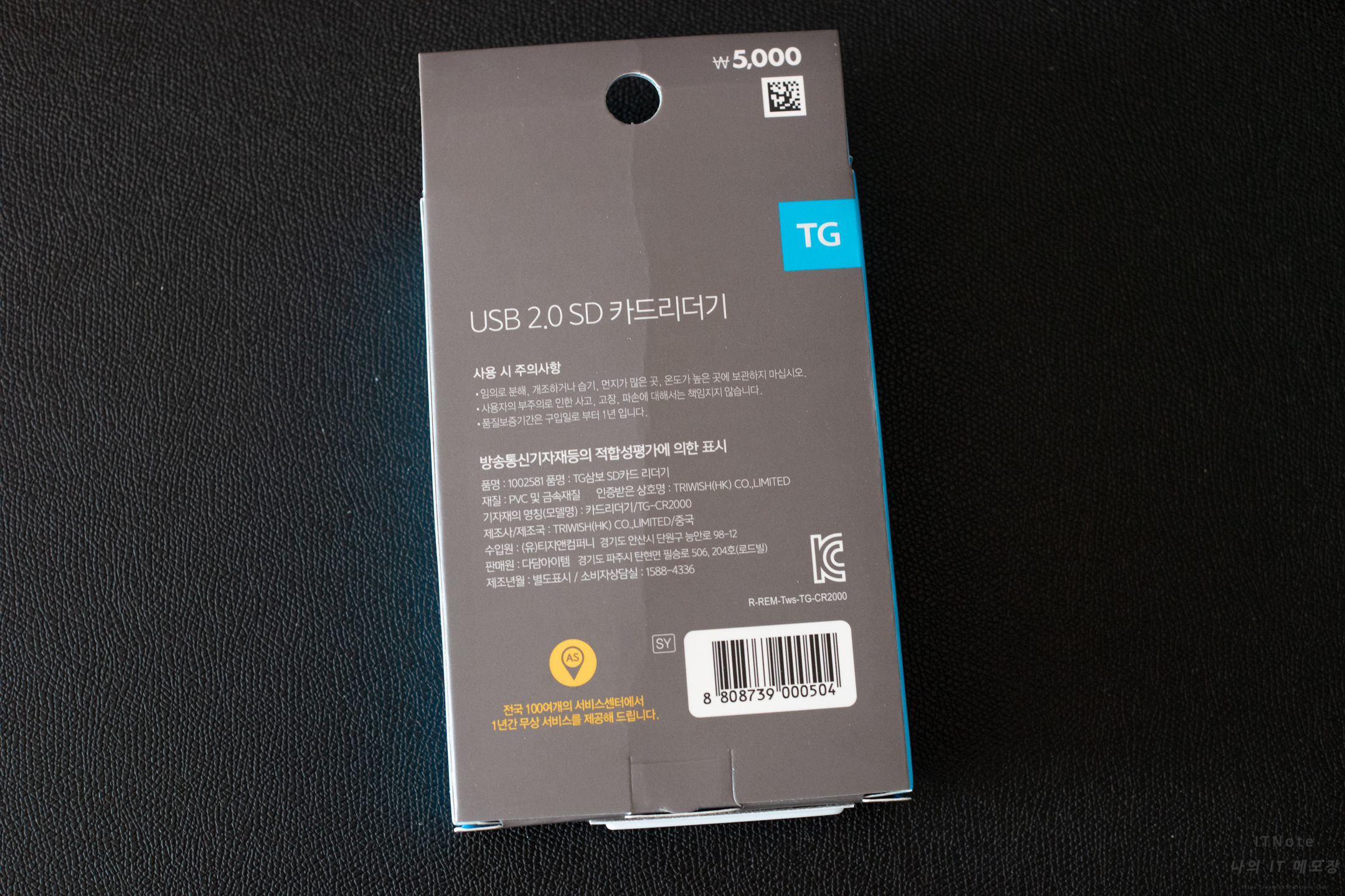 이 제품역시 TG제품이며 1년간 무상 A/S를 지원한다고 합니다.