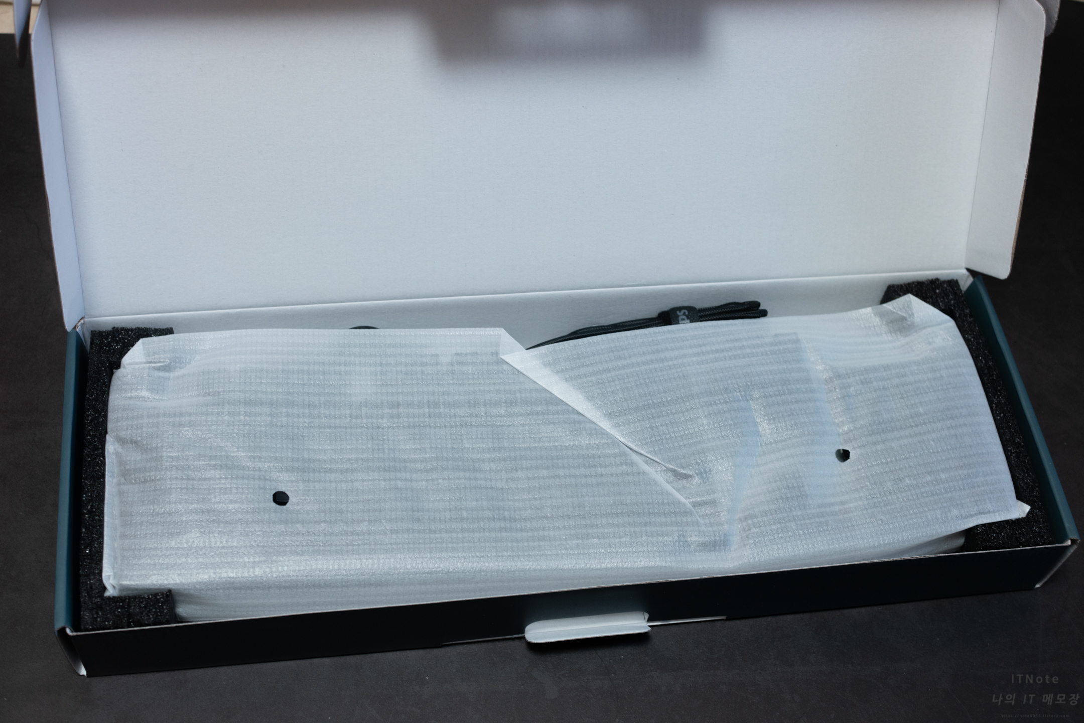 박스를 열면 봉지에 싸여진 키보드가 보입니다.