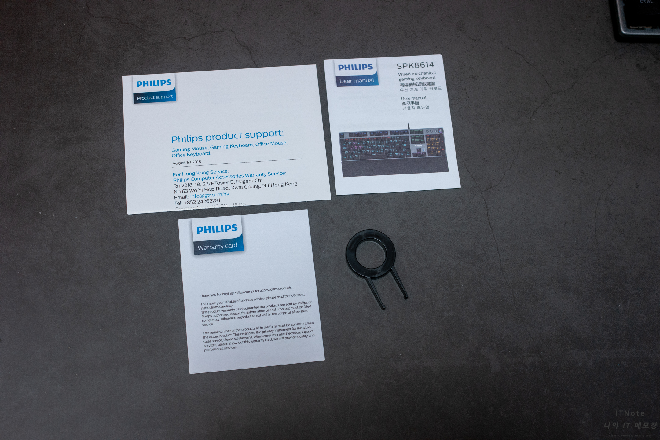 또다른 구성품은 키캡 리무버와 사용설명서, 제품보증서, 제품 지원 안내문이 있습니다.