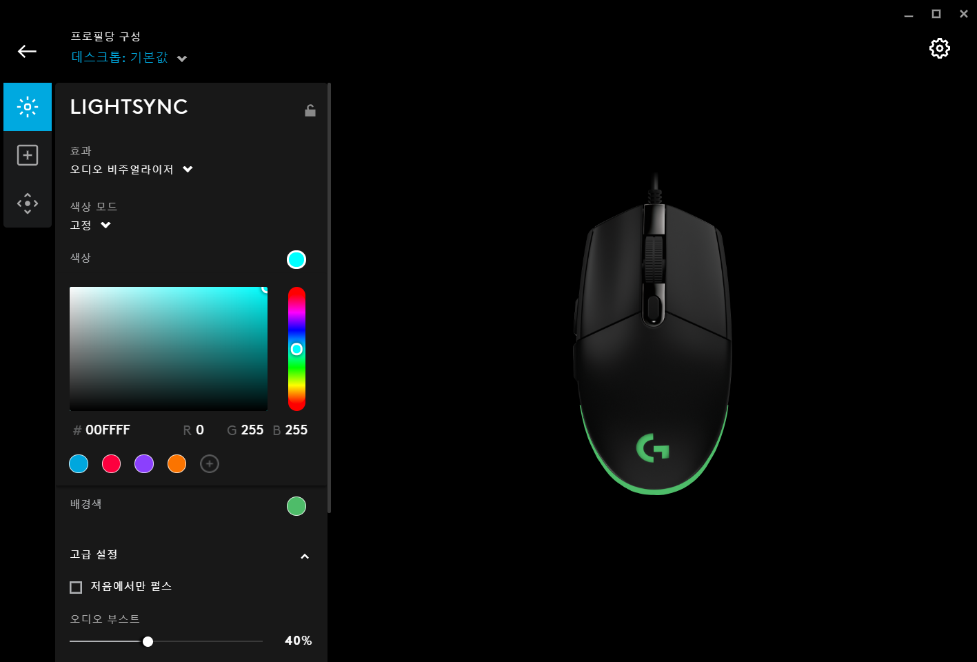 또한 로지텍에서 제공하는 G HUB 프로그램을 다운로드하여 설치하면 다양한 설정이 가능합니다.