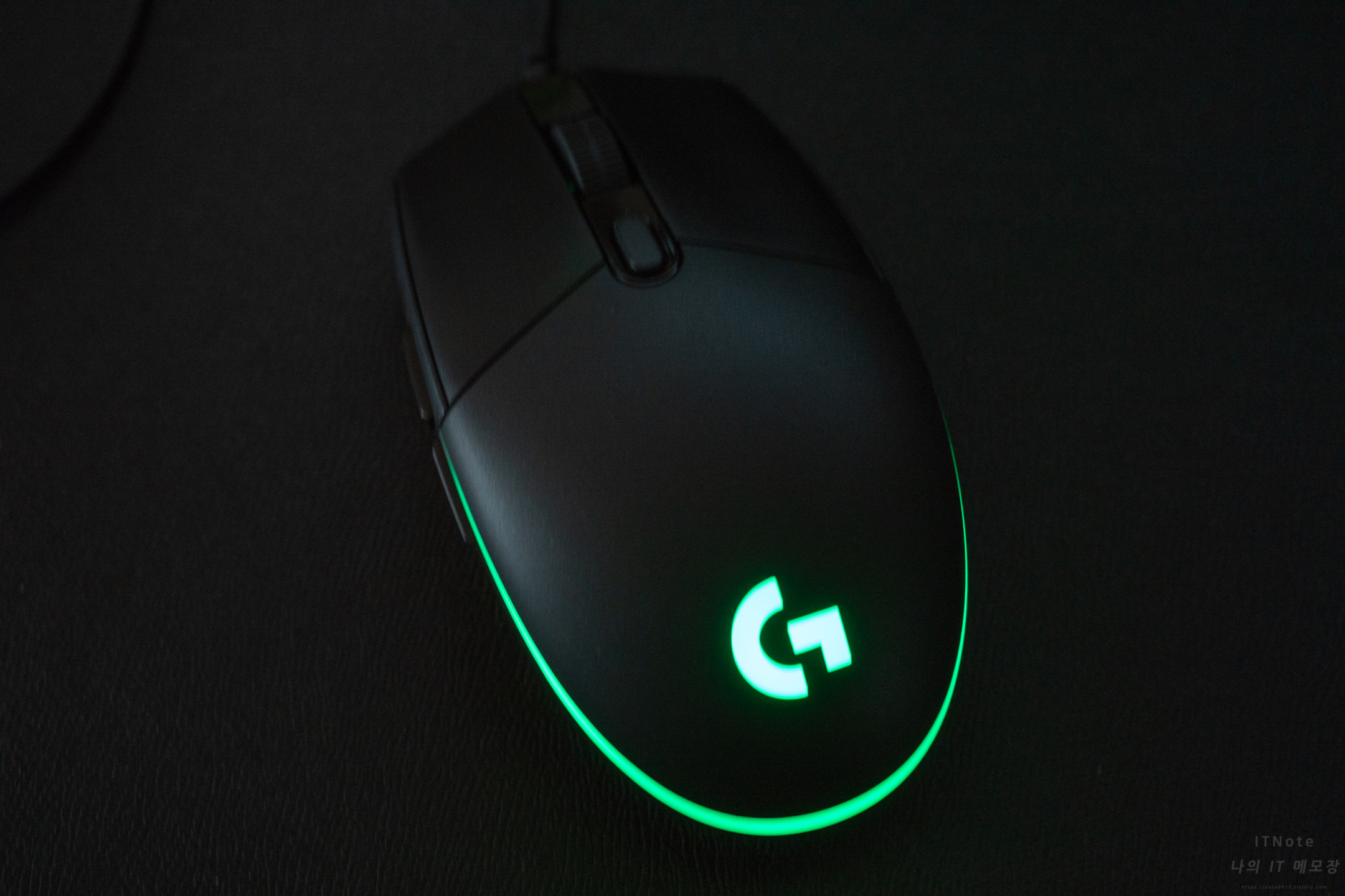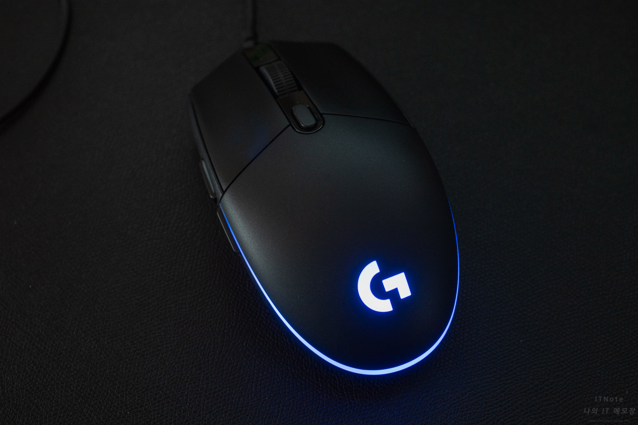 로지텍 G102 전원이 들어오면 LED가 켜집니다. LED가 부드럽고 깔끔하게 나옵니다.