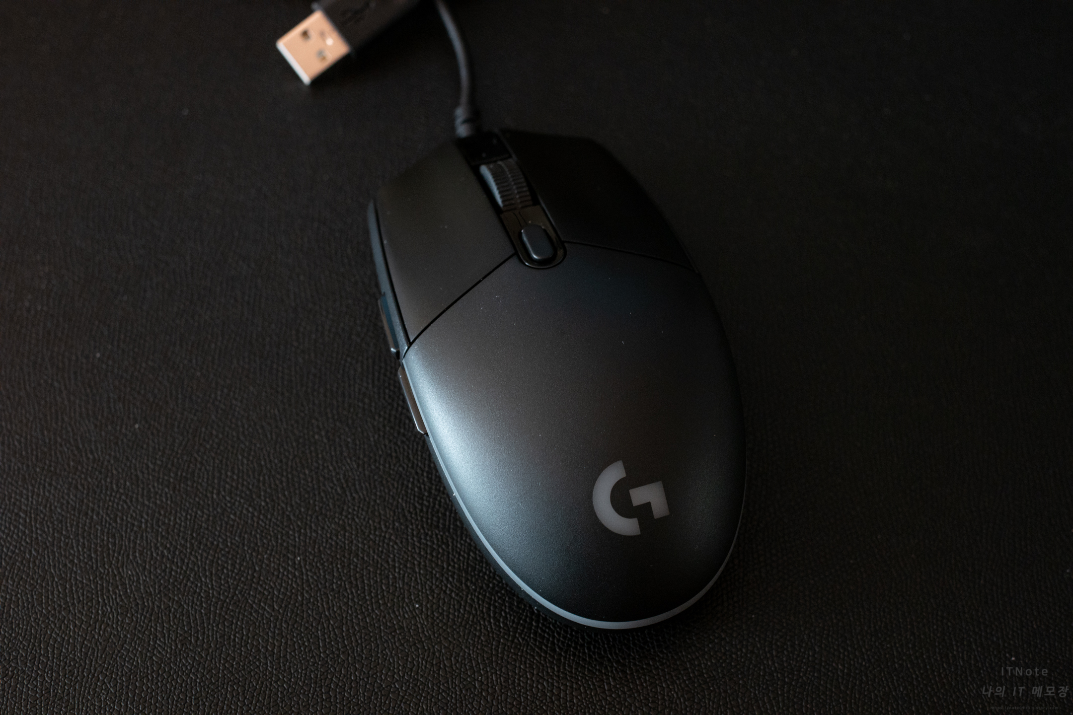 로지텍 G102 외관입니다. 외관은 깔끔하고 클릭부에 홈이 파여있어서 마우스를 잡을 때 그립감이 좋습니다.