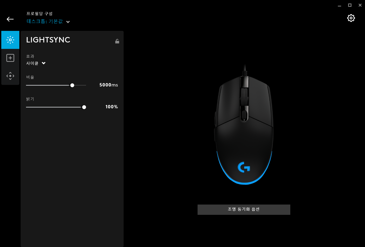 LIGHTSYNC 탭에서는 기본적으로 조명을 조절할 수 있습니다.