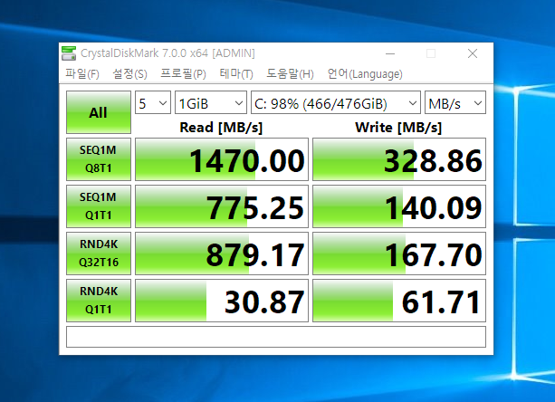 위 사진은 NVME SSD 의 속도입니다. 성능면에서는 SSD가 좋지만 가격대비 용량이 매우 적어서 단순 데이터 저장용이나 백업용은 보통 하드디스크를 사용하는게 일반적입니다.