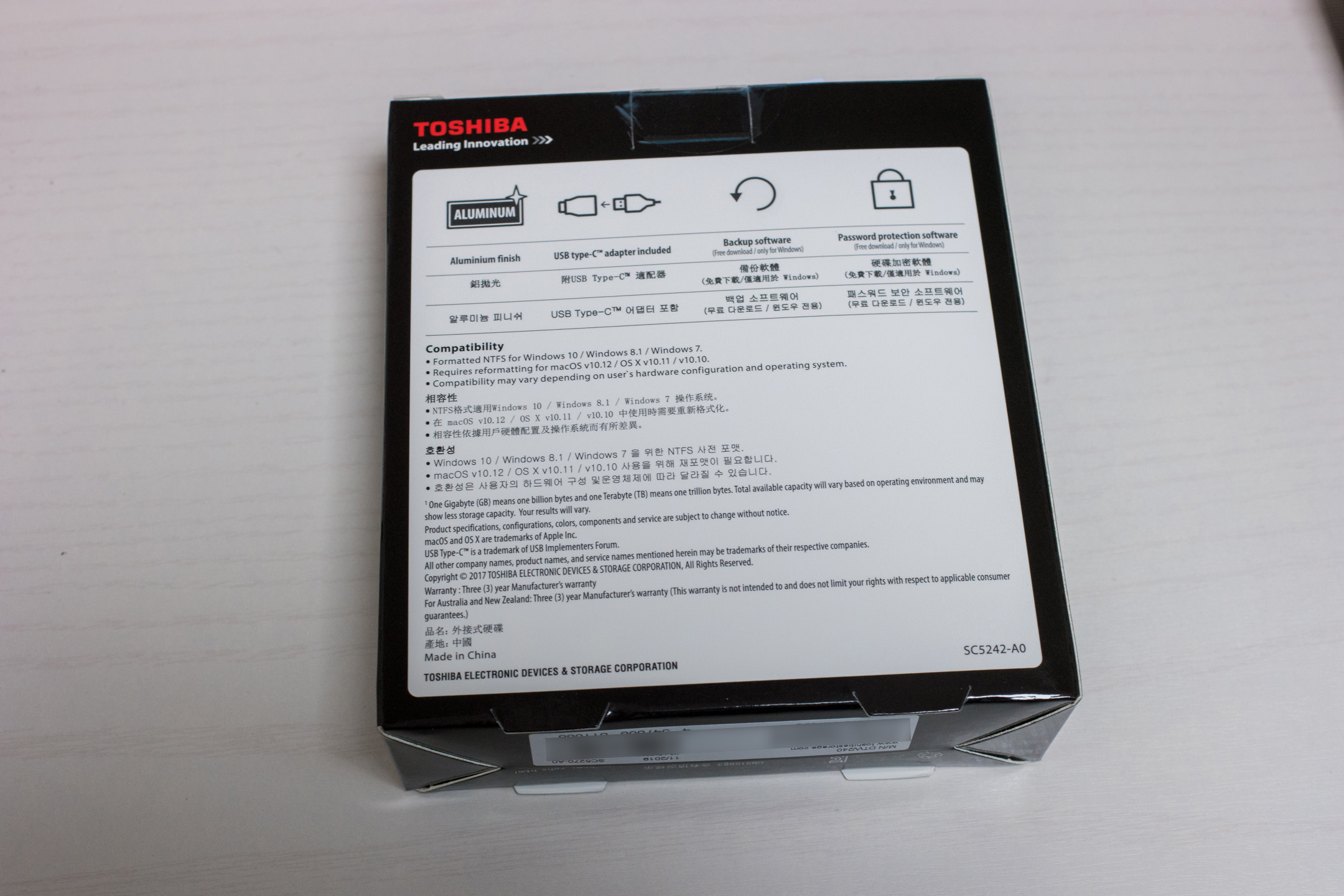 도시바 칸비오 프리미엄2 외장하드 4TB 박스입니다. 옜날에는 4TB 외장하드는 없거나 엄청 비싸서 구할 수가 없었는데 요즘은 이정도 크기에 4TB를 구매할 수 있게되었네요. 3년 제한보증이라고 박스에 나와 있습니다.