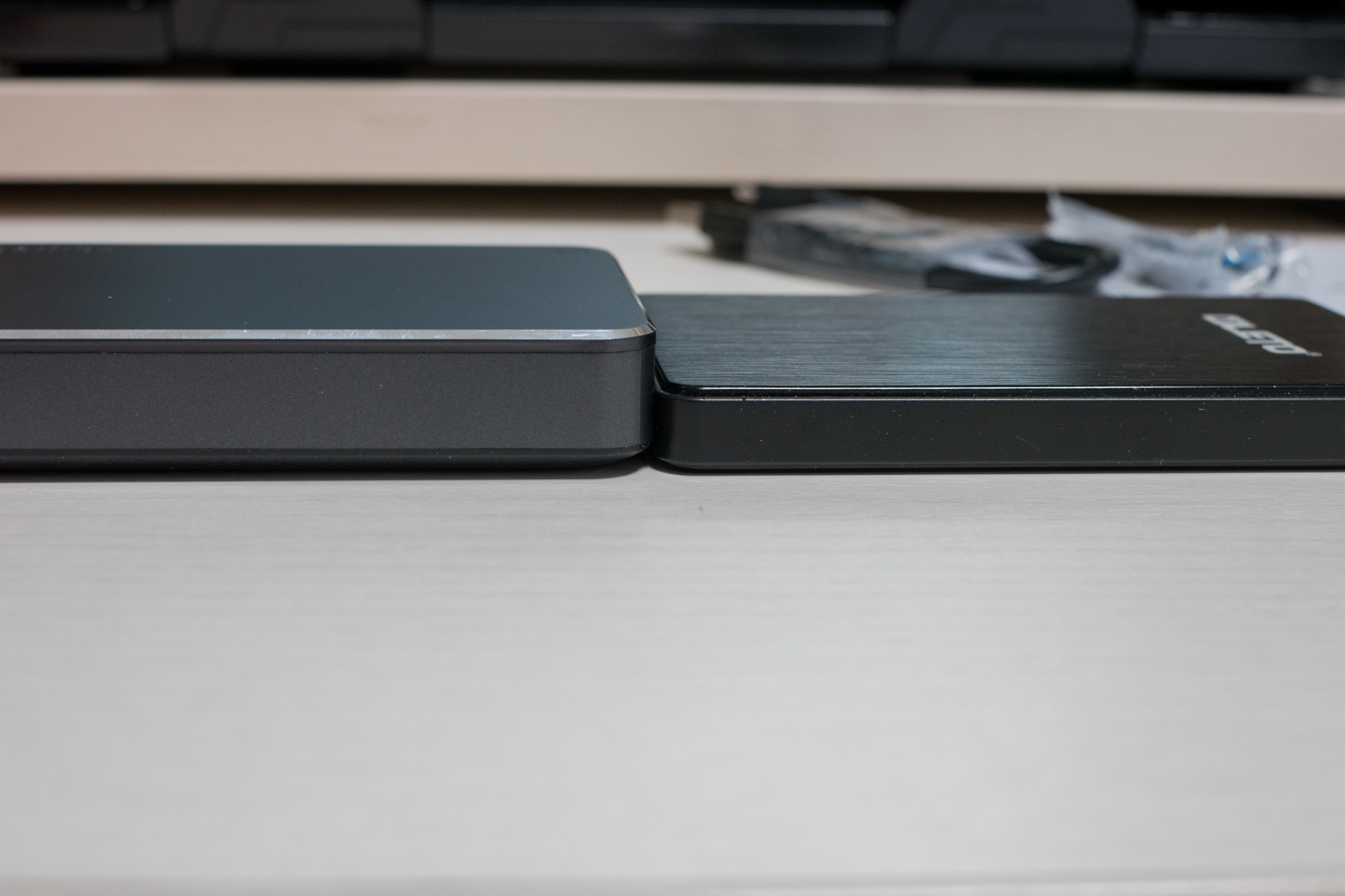 제가 가지고 있는 레토 1TB 외장하드랑 크기 및 두께를 비교해보았습니다. 크기는 약간 작지만 두꼐는 1.5배 정도 차이가 납니다.