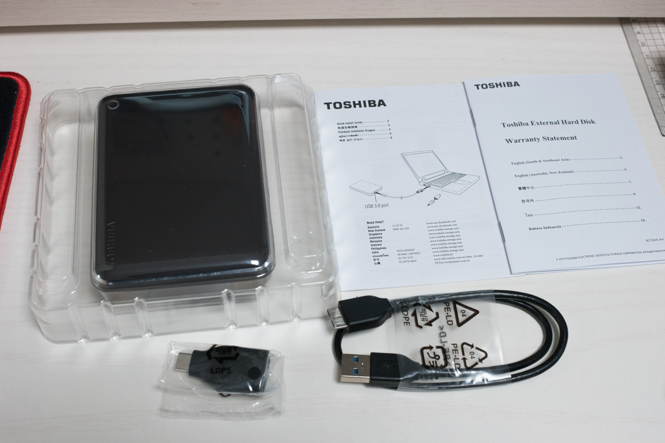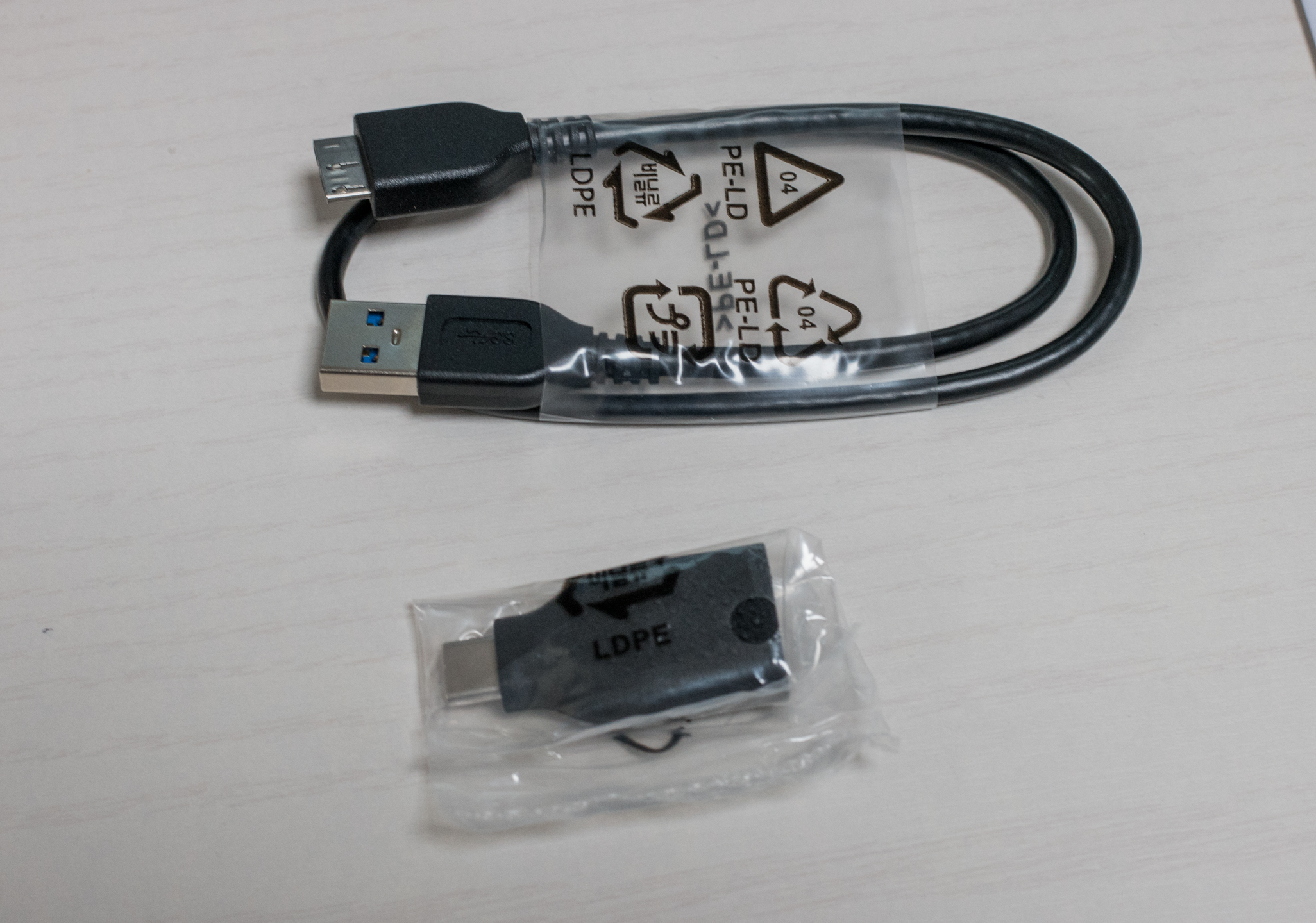 나머지 구성품들은 외장하드 사용시 필요한 케이블과 타입 C 어댑터, 간단설명서와 보증서가 들어있습니다.