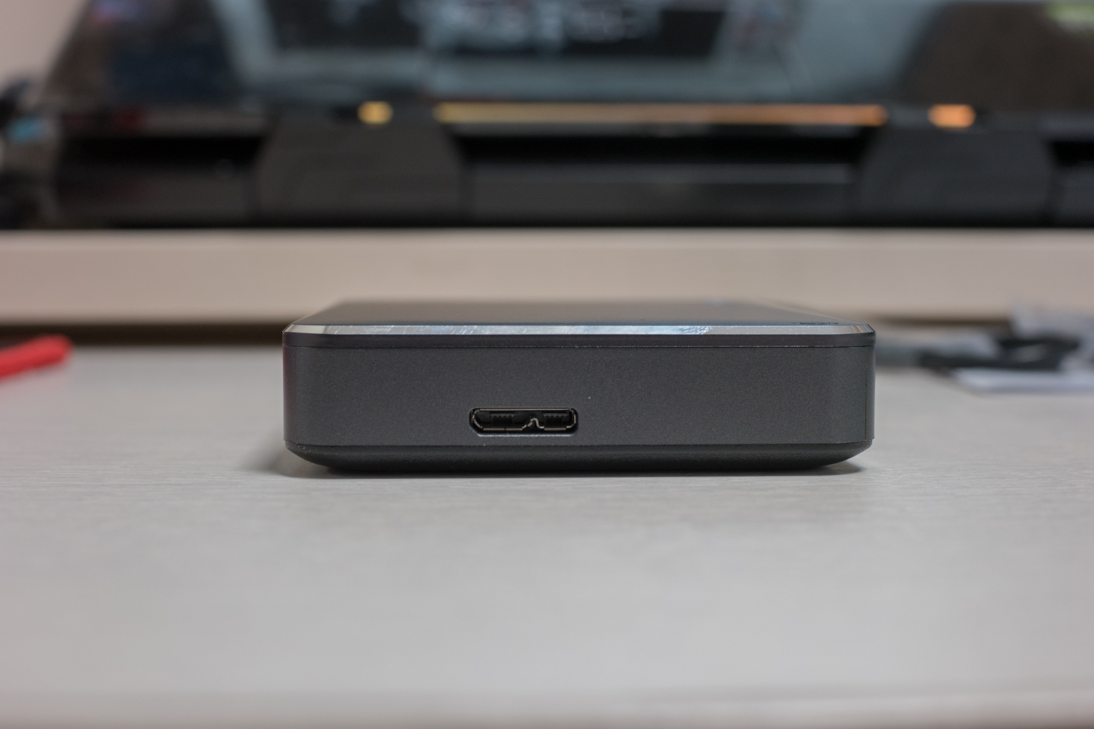 외장하드 염면입니다. 4TB 용량이다 보니 두께가 좀 있습니다. 자로 재보니까 한 1.8cm 정도 되는 것 같습니다.