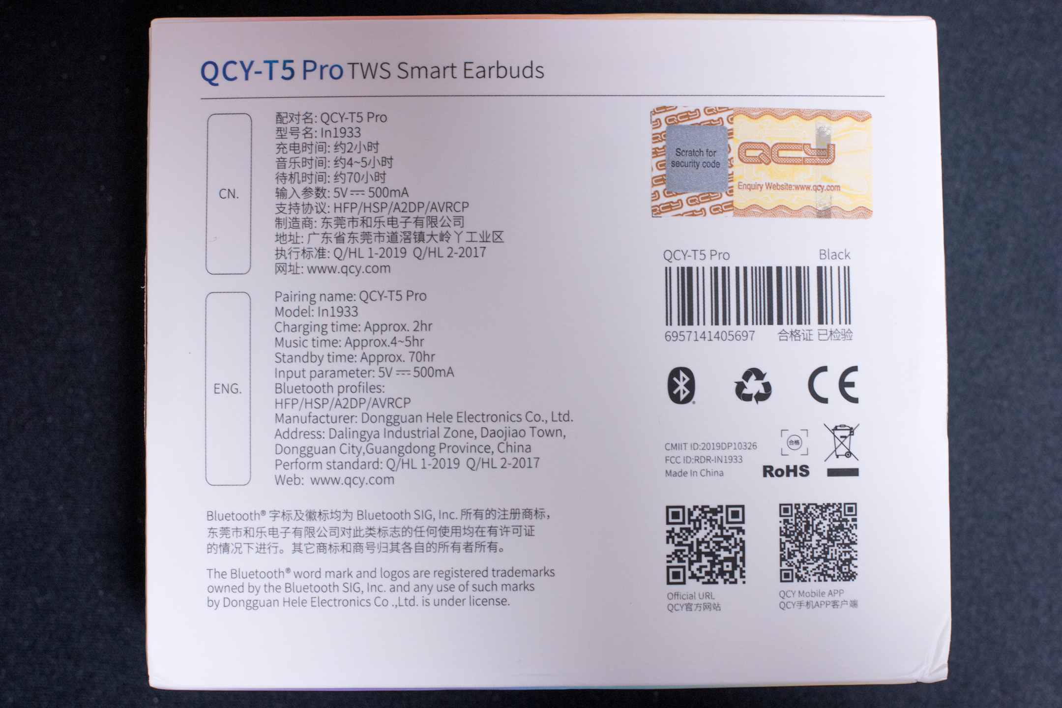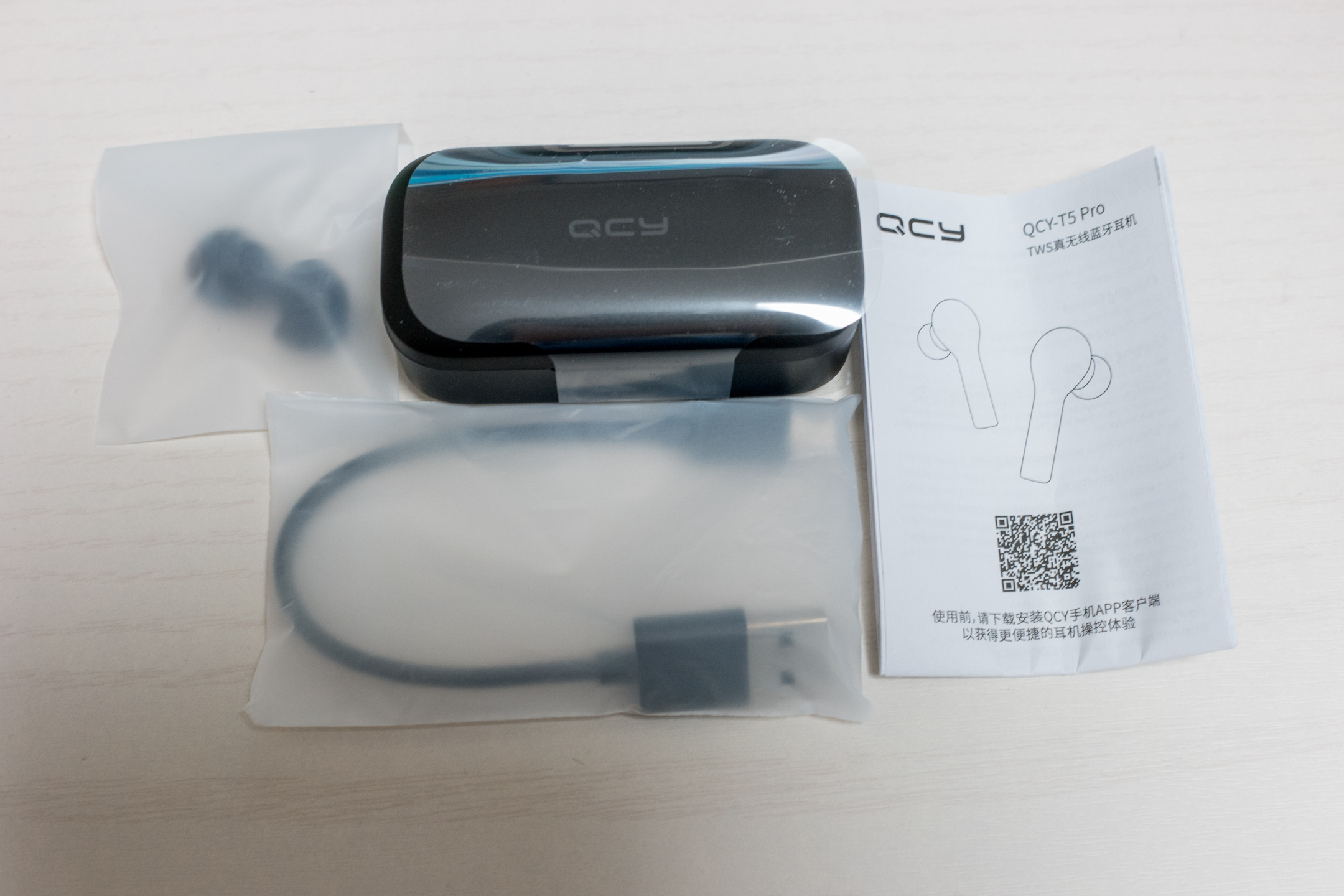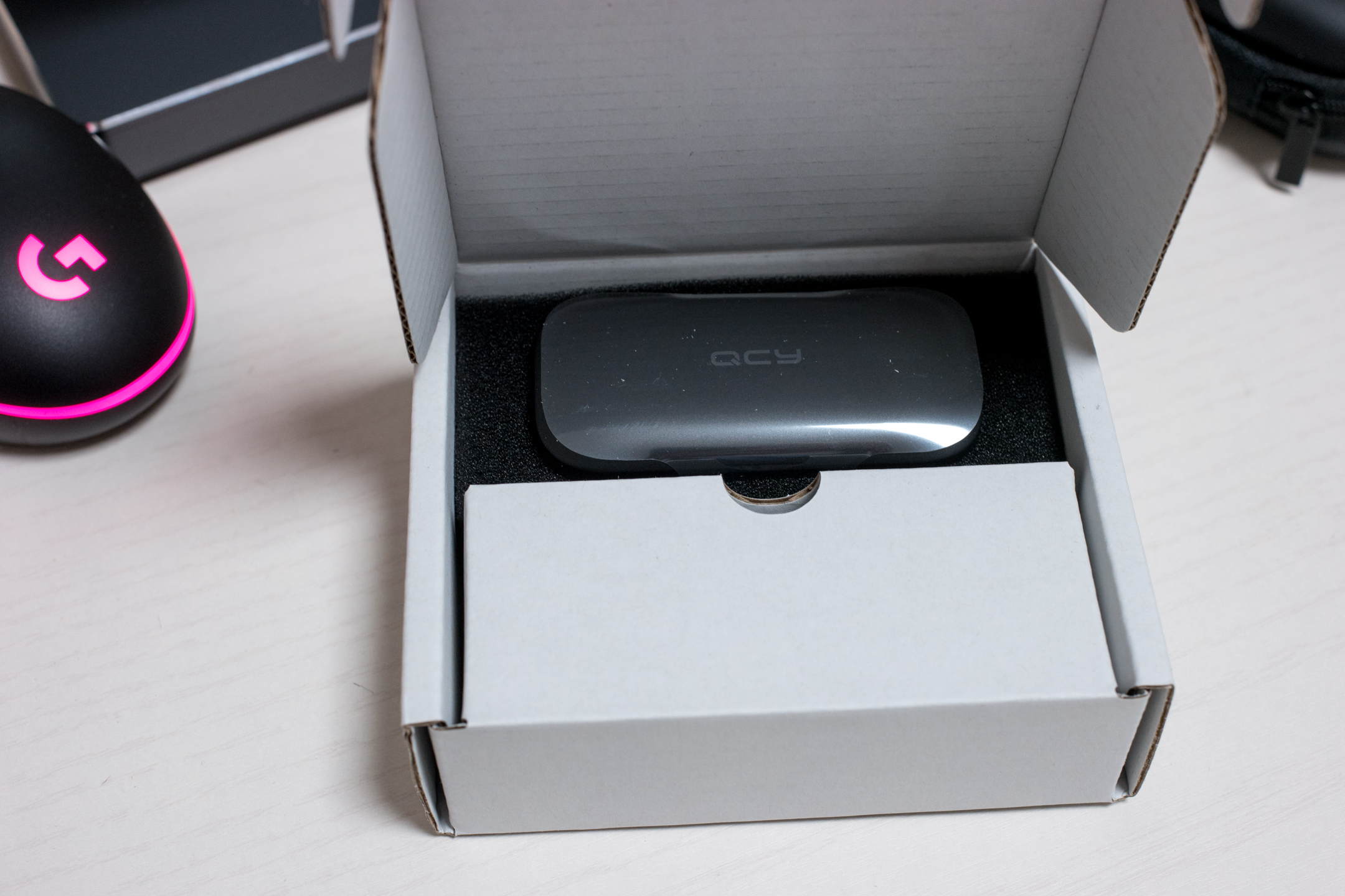 T5 PRO 케이스 입니다. 상단에 QCY 로고가 보이네요.