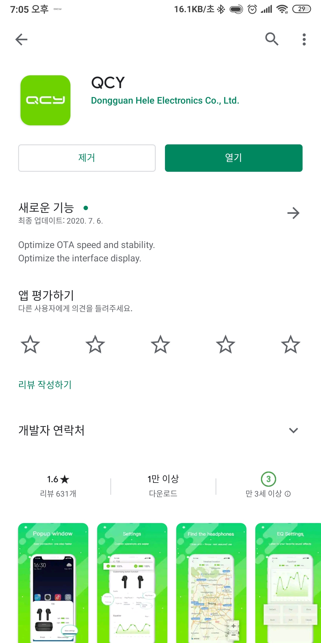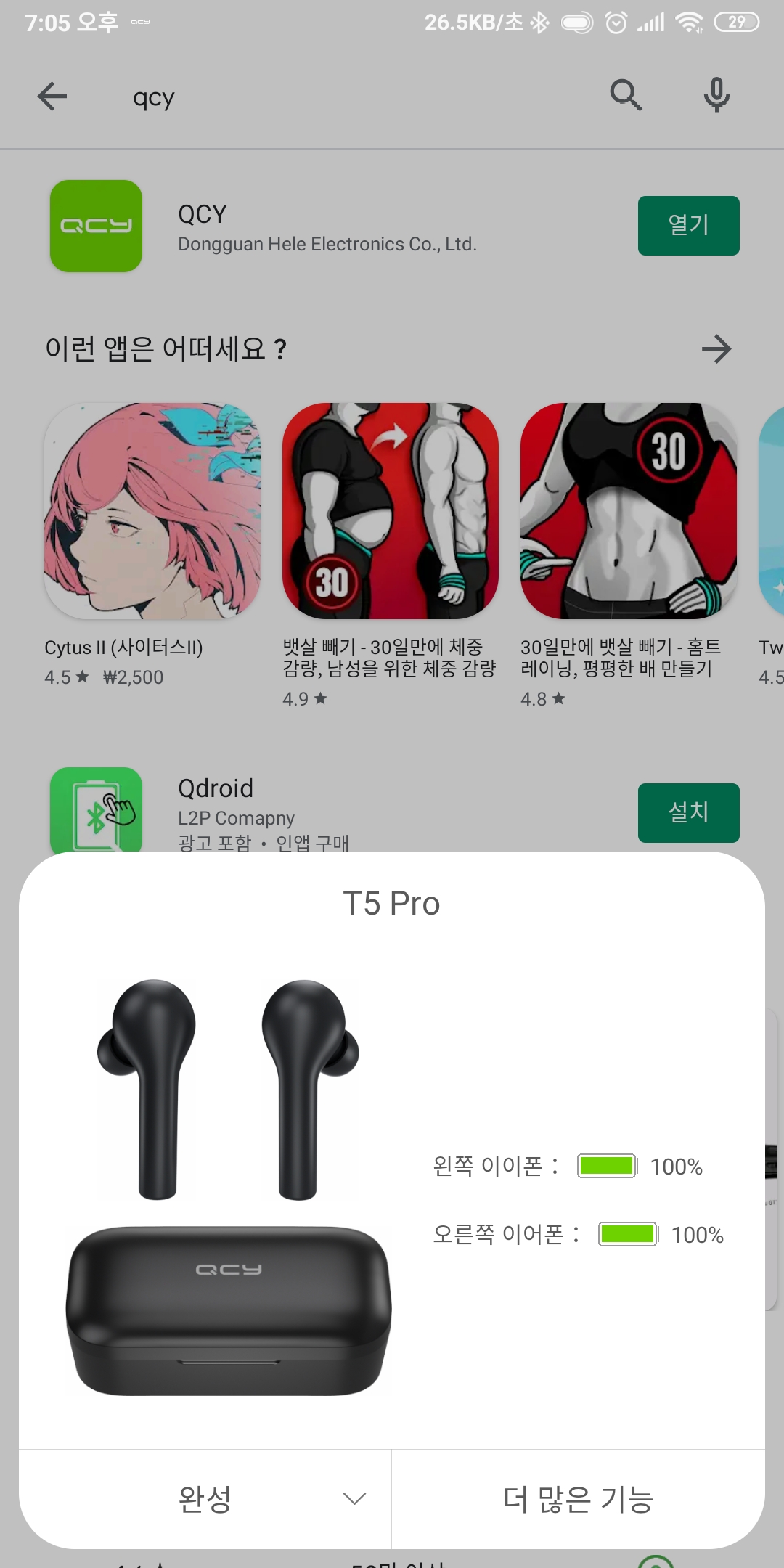 QCY T5S 나 T5 PRO는 모바일 앱을 지원하기 때문에 구글 플레이스토어나 애플 앱스토어에서 QCY 앱을 다운받을 수 있습니다.