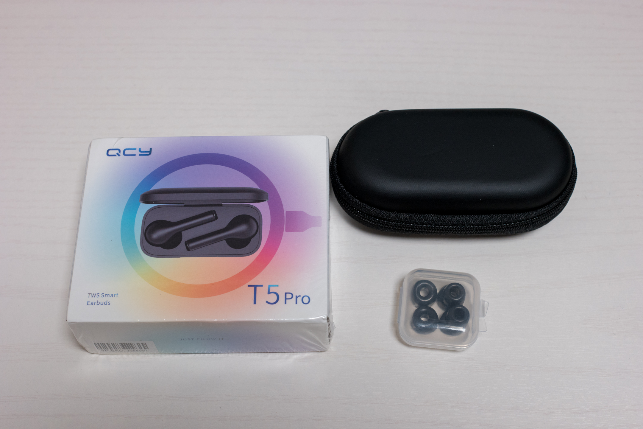 QCY T5 PRO 와 추가로 구매한 수납가방이랑 메모리 폼입니다. 메모리폼은 단독으로 구매하는 것보다 이렇게 옵션으로 넣어서 구매하는게 싸길래 궁금해서 사보았습니다.
