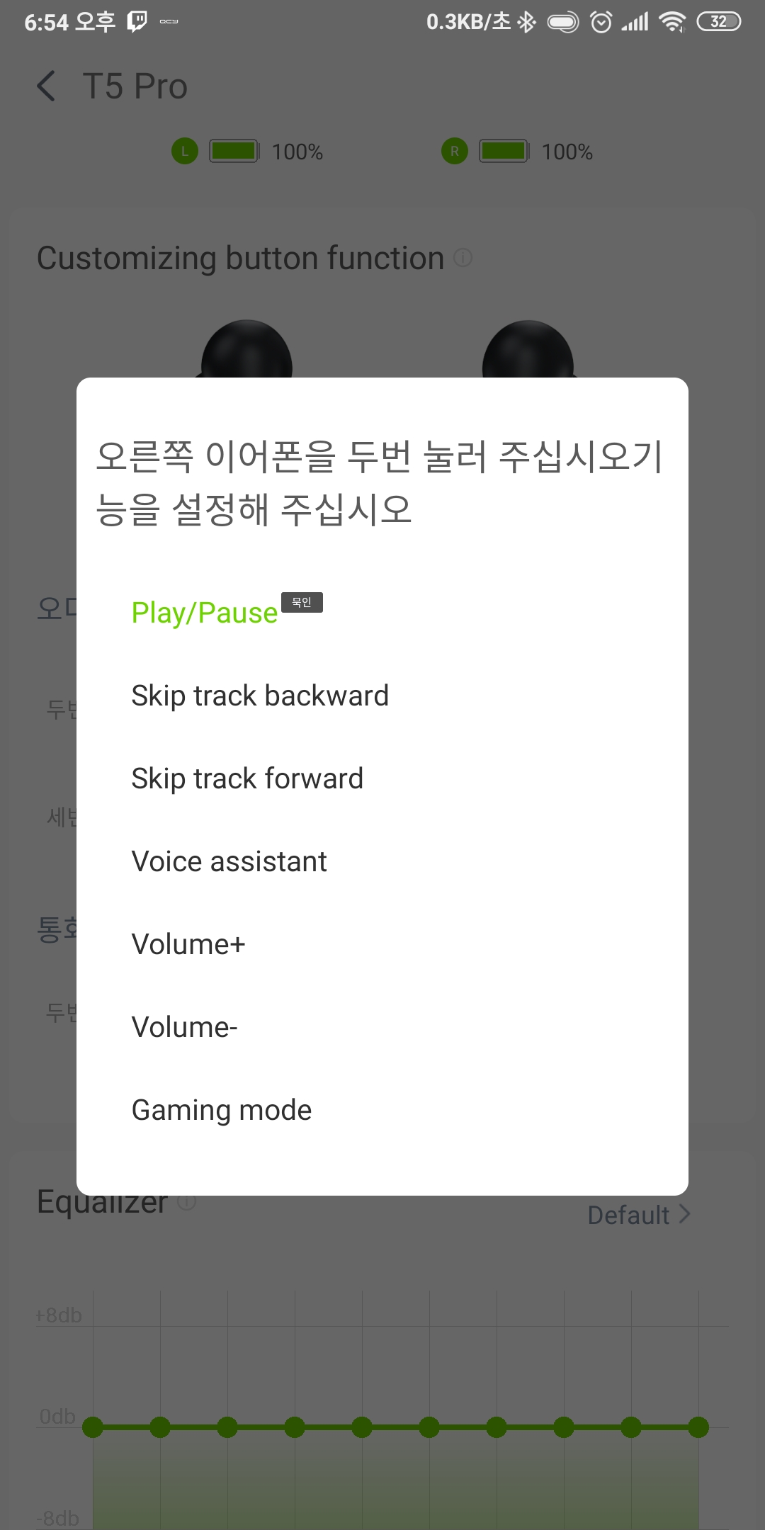 앱을 들어가보면 두번 터치시나 세번 터치시 무슨 작업을 할지 설정도 가능하고 이퀄라이져 설정도 가능합니다.