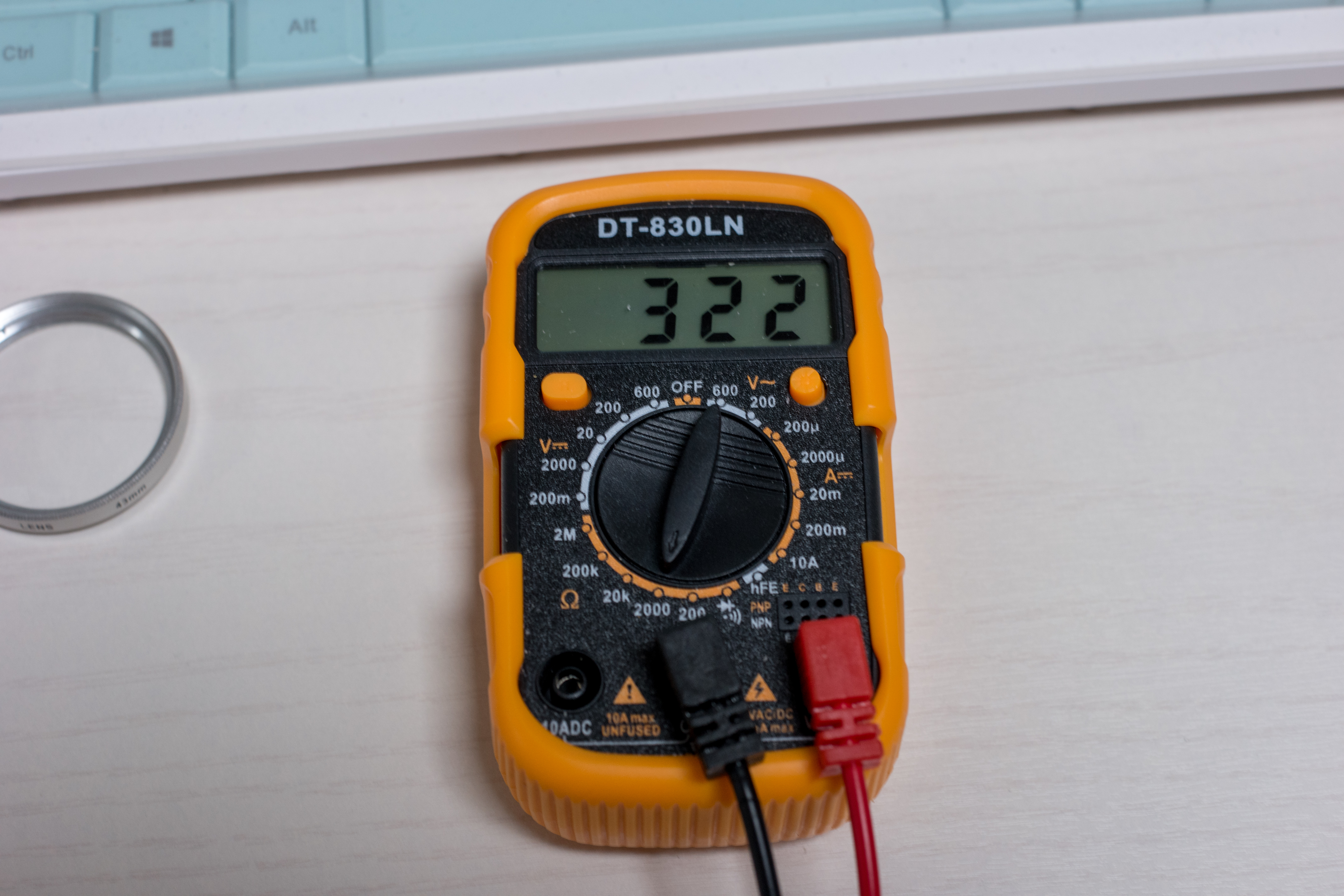 멀티미터로 찍어보면 322옴이 측정됩니다.