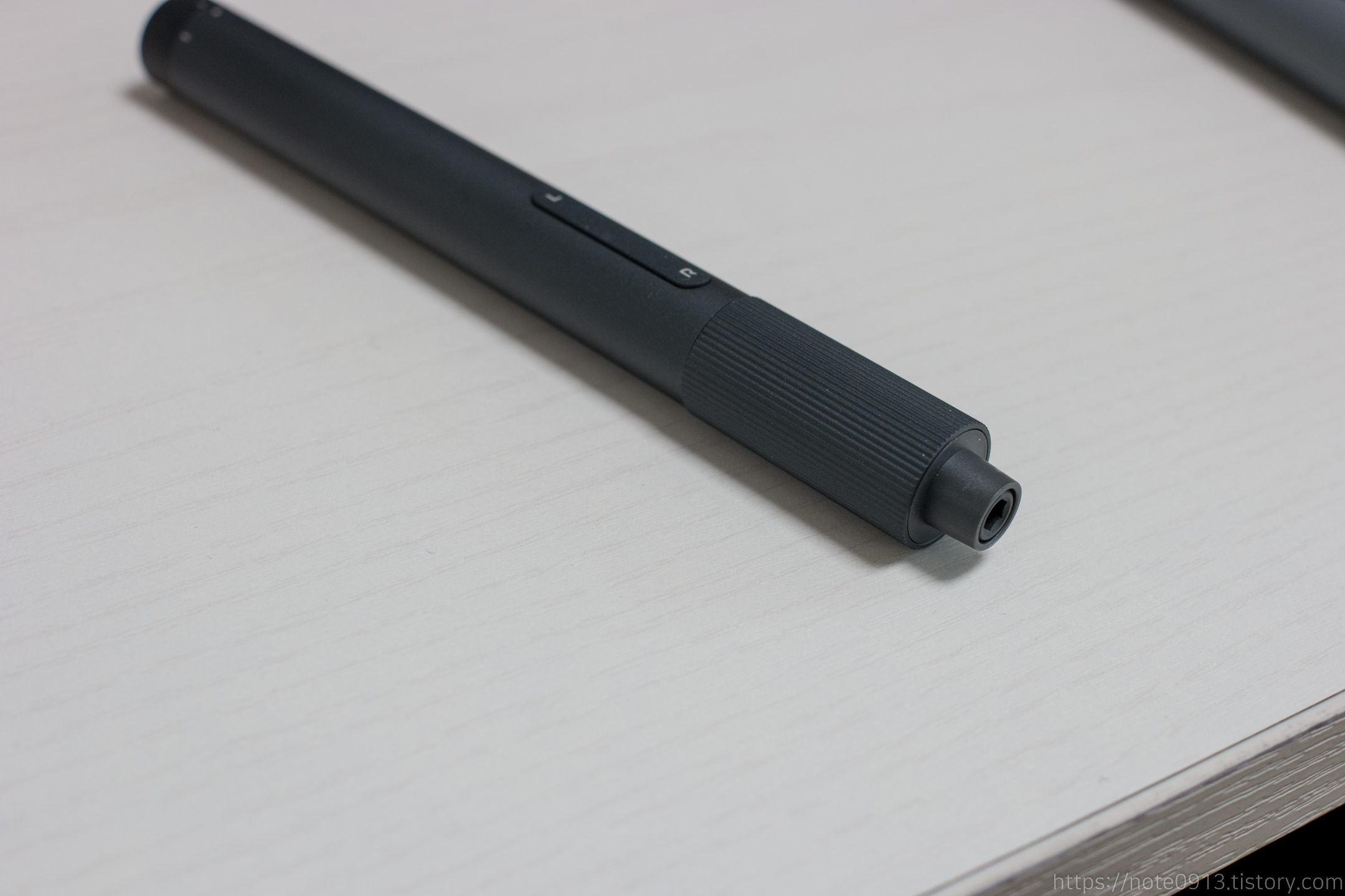 전동드라이버 모습입니다.  멀리서 보면 두꺼운 펜처럼 보입니다.
