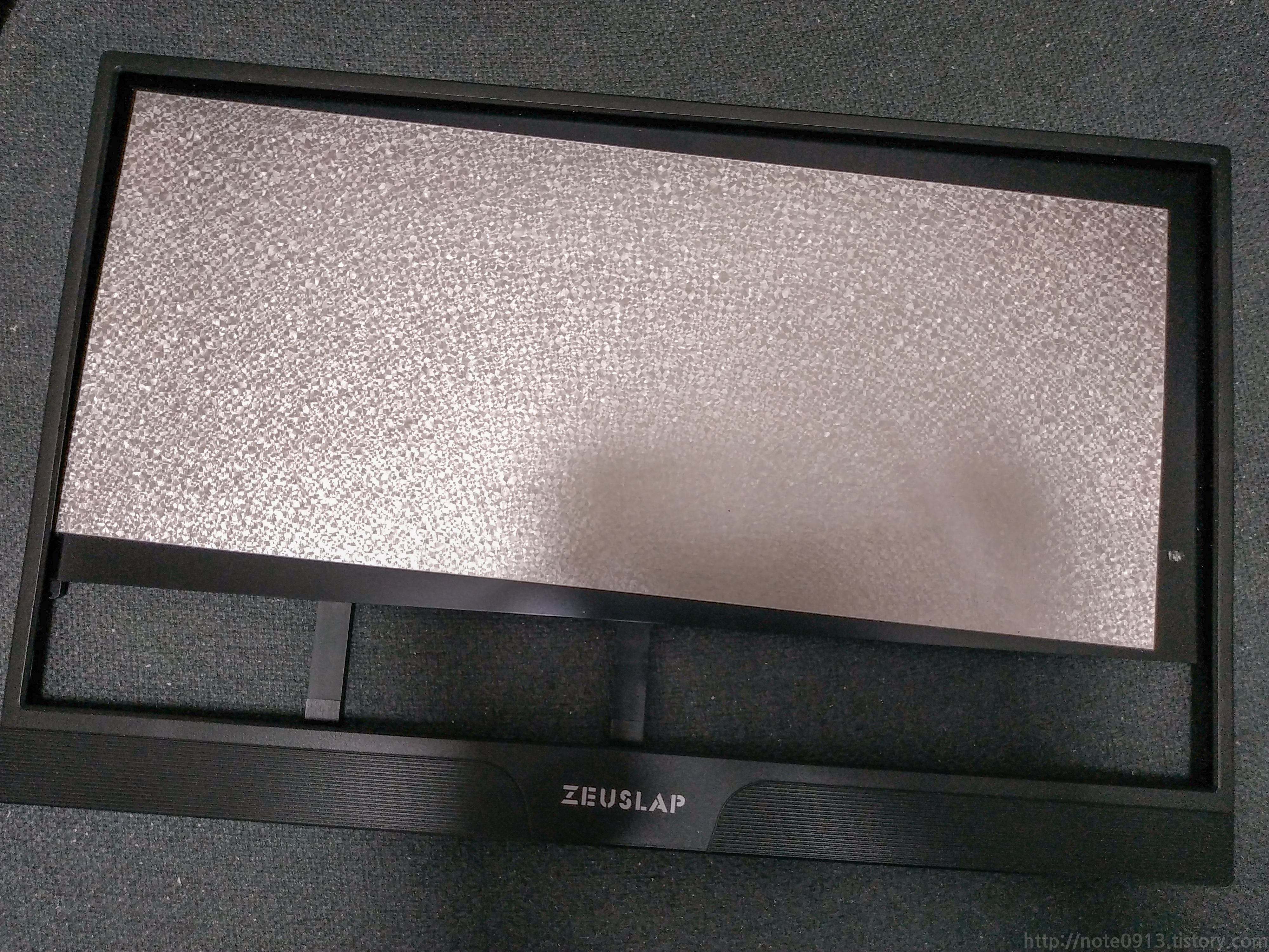 제우스랩 전면입니다. 처음에 이걸 어떻게 분해하지 생각하다가 보니까 테두리 부분이 양면테이프로 접착되어 있었습니다. 테두리를 조심스럽게 들어내니 분리가 됩니다. 다만 테두리가 다 벗겨지는건 아니고 양 옆은 중간까지 밖에 분리가 안되니 조심해야 합니다.