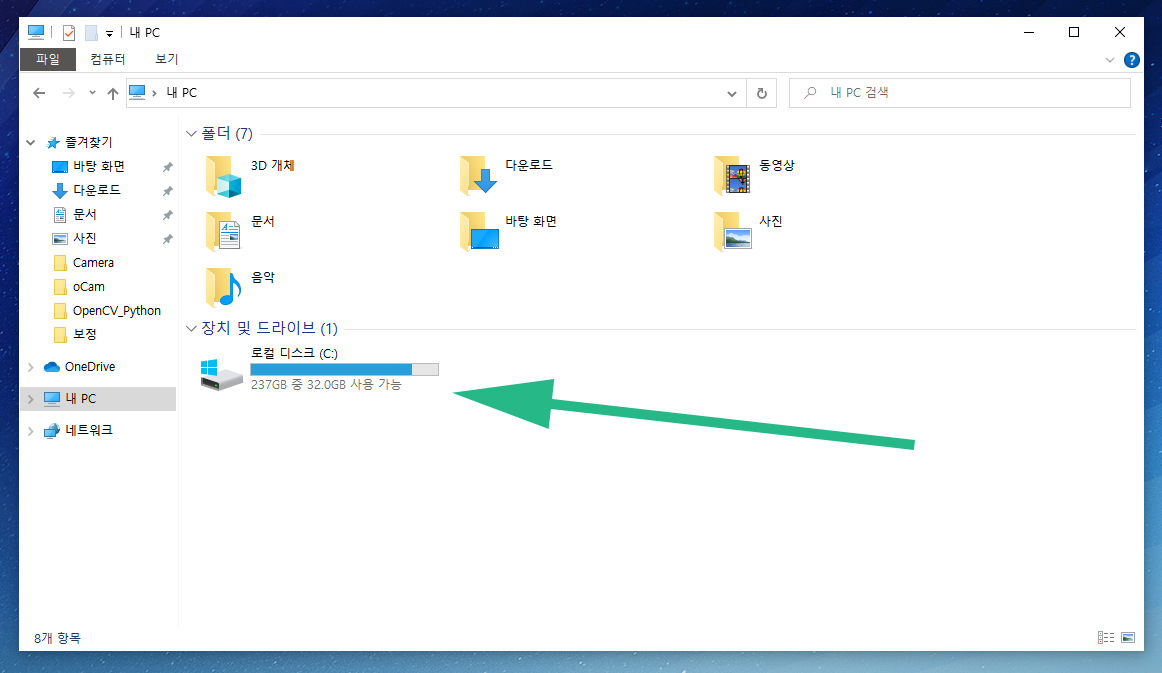첫번째로 내 PC에서 C드라이브를 클릭해 줍니다.