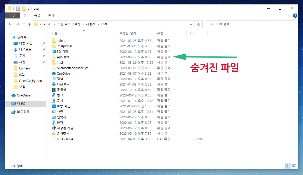 만약 숨김파일 설정을 못했다면 아래 링크를 통해 숨김파일 표시설정을 해주면 됩니다.