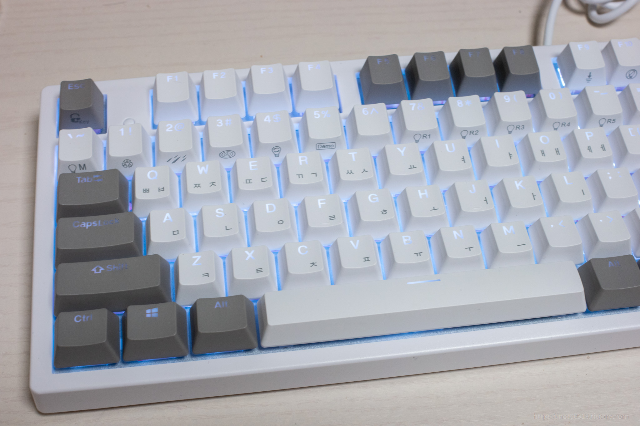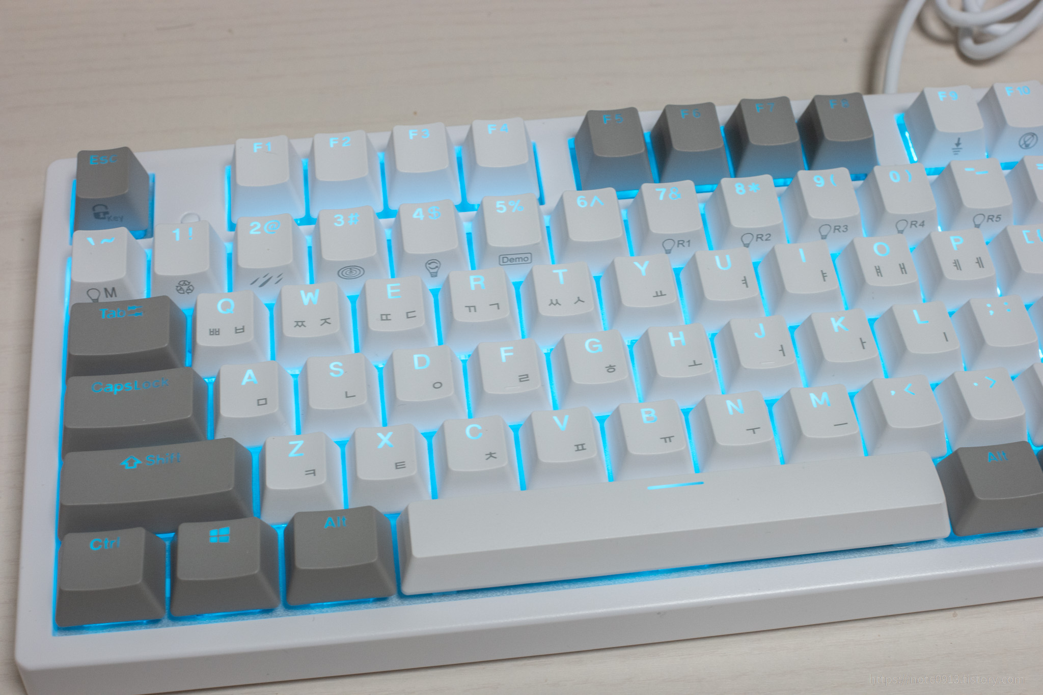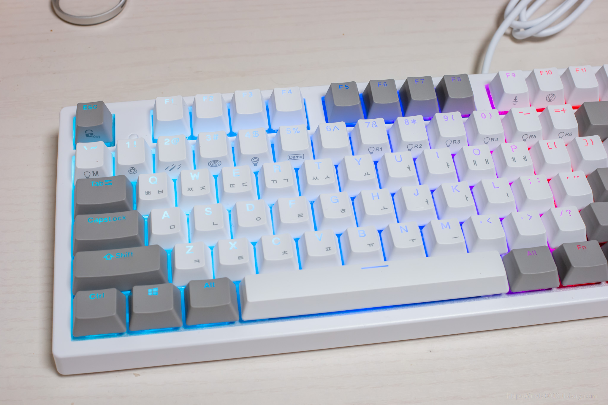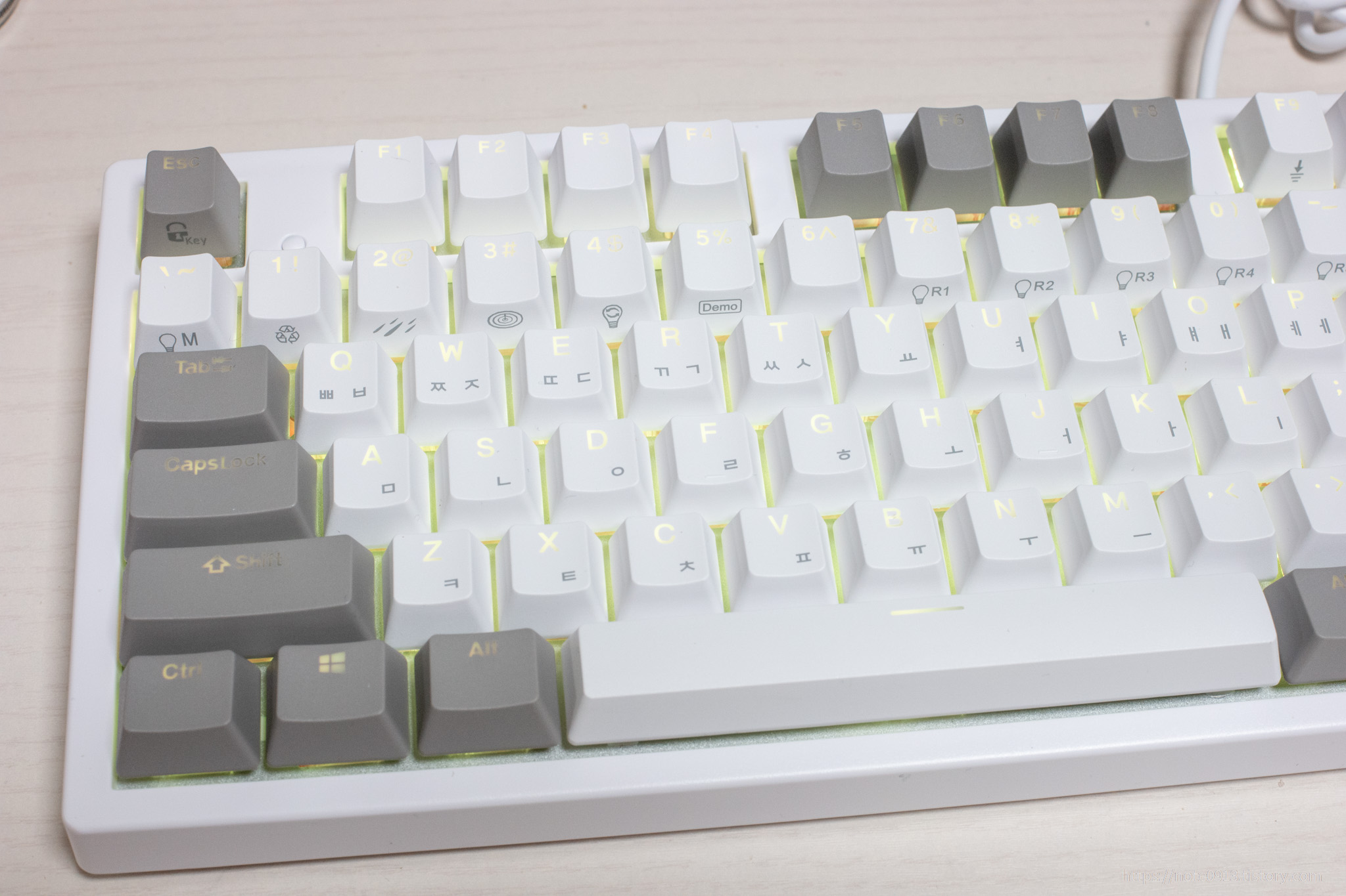 가까이에서 찍은 엠프리스 키보드입니다. 화이트와 그레이 조합으로 괜찮은 색상인 거 같습니다.