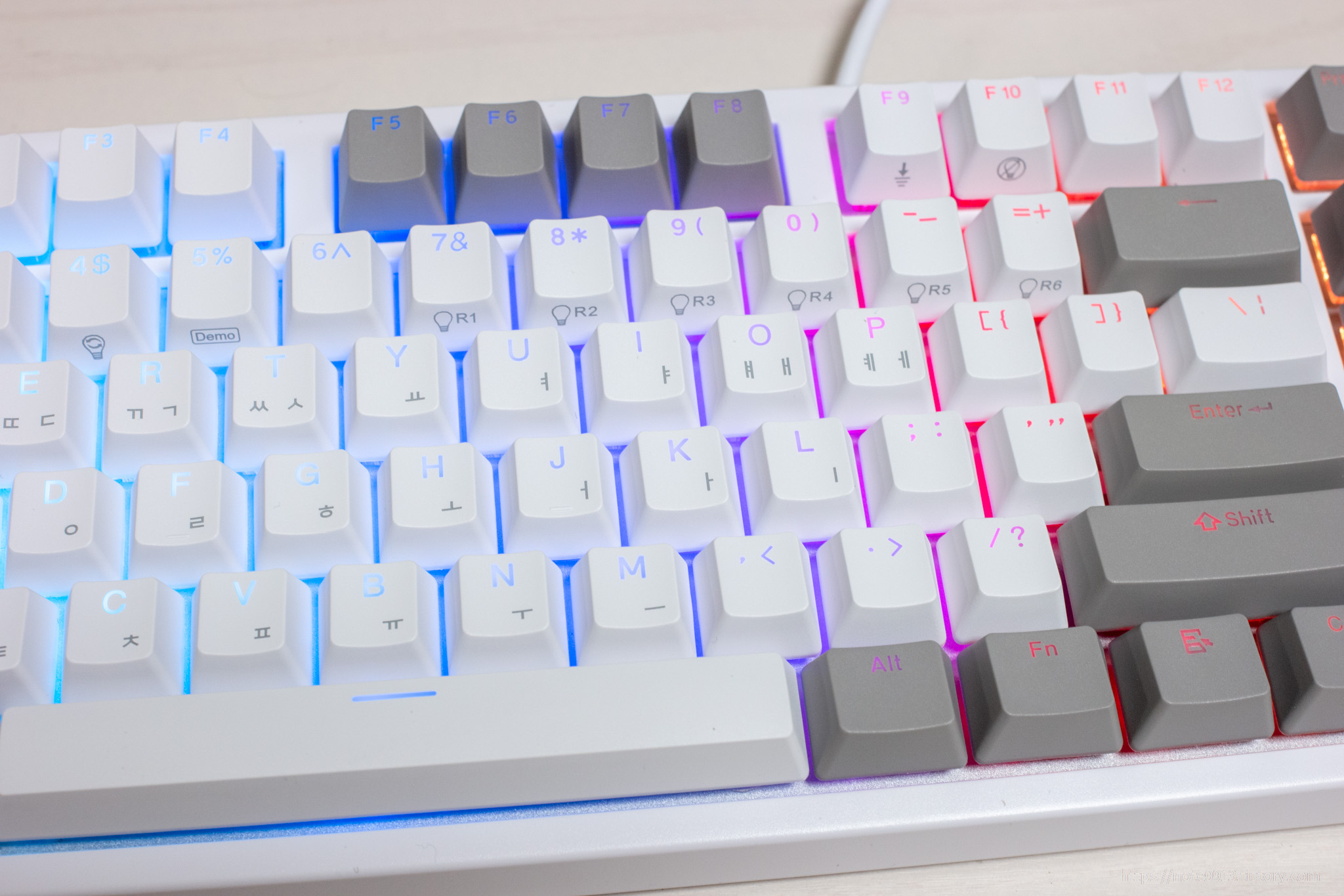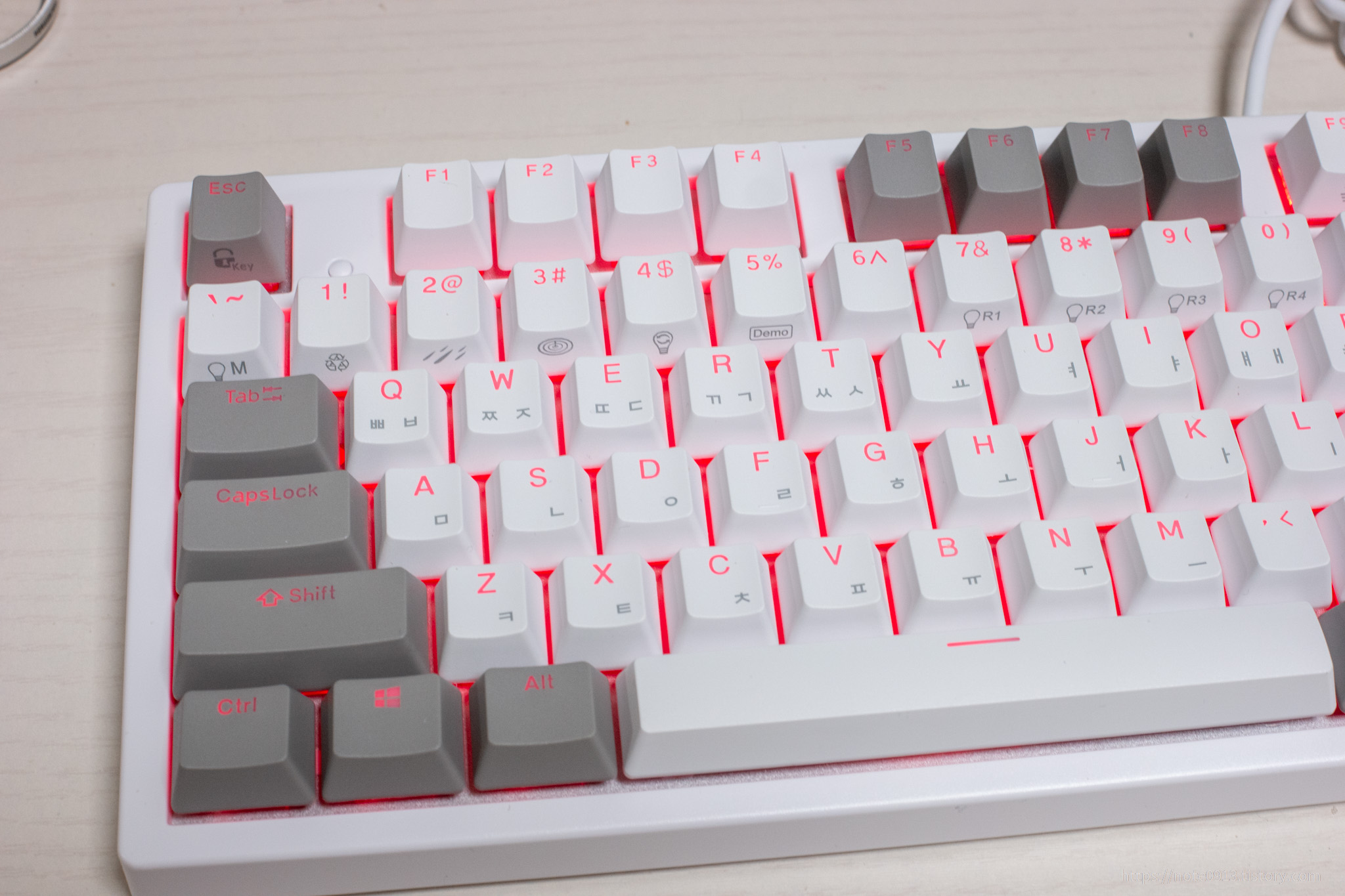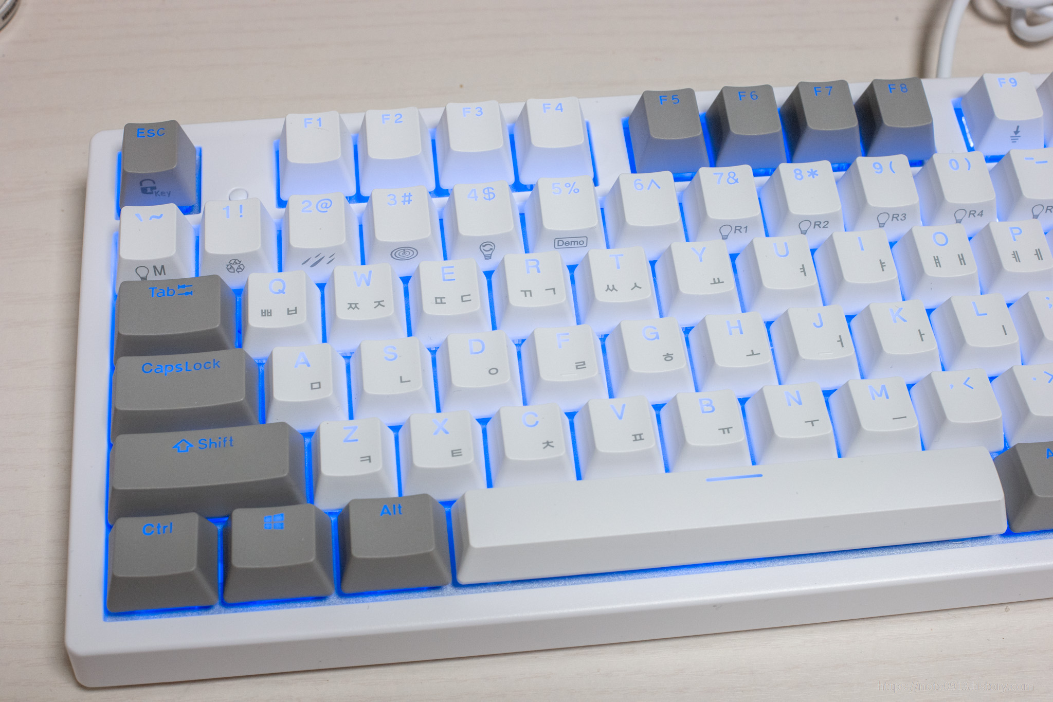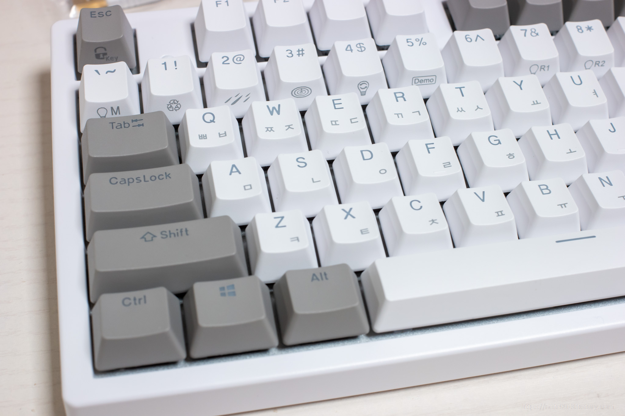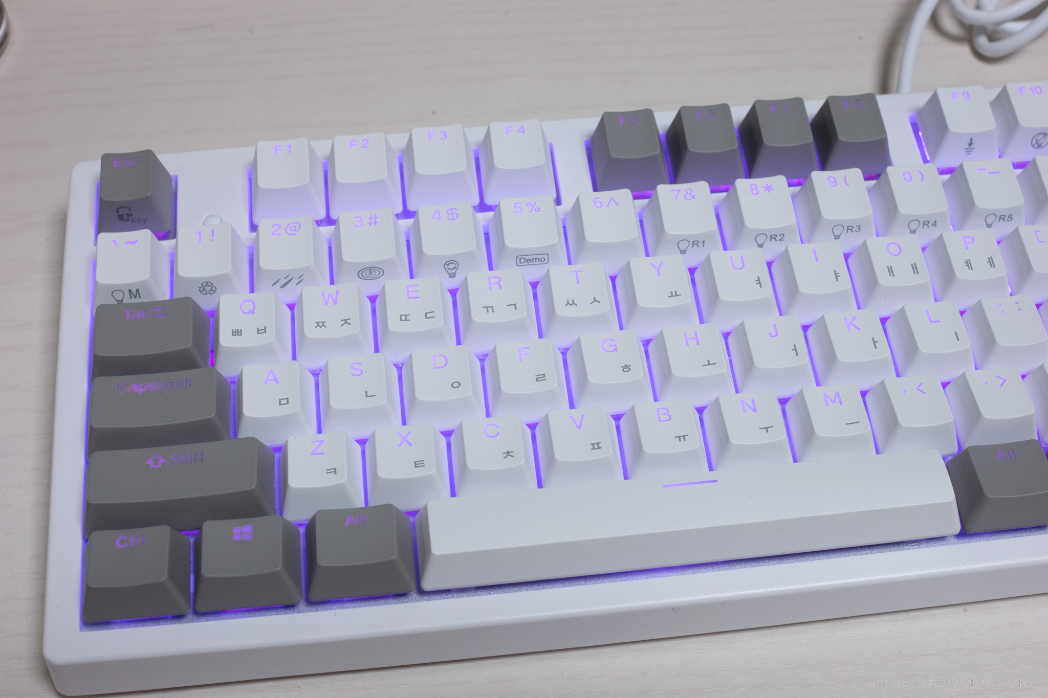 가까이에서 찍은 엠프리스 키보드입니다. 화이트와 그레이 조합으로 괜찮은 색상인 거 같습니다.