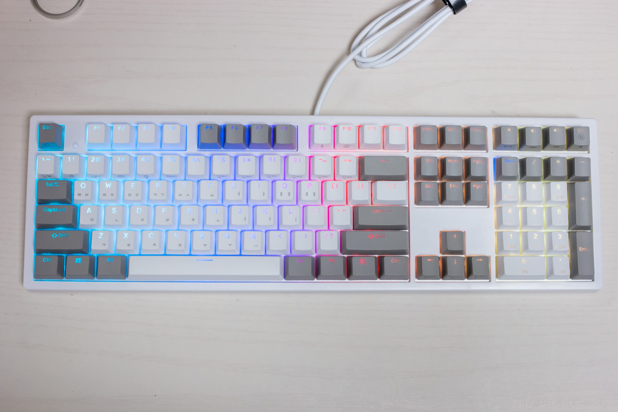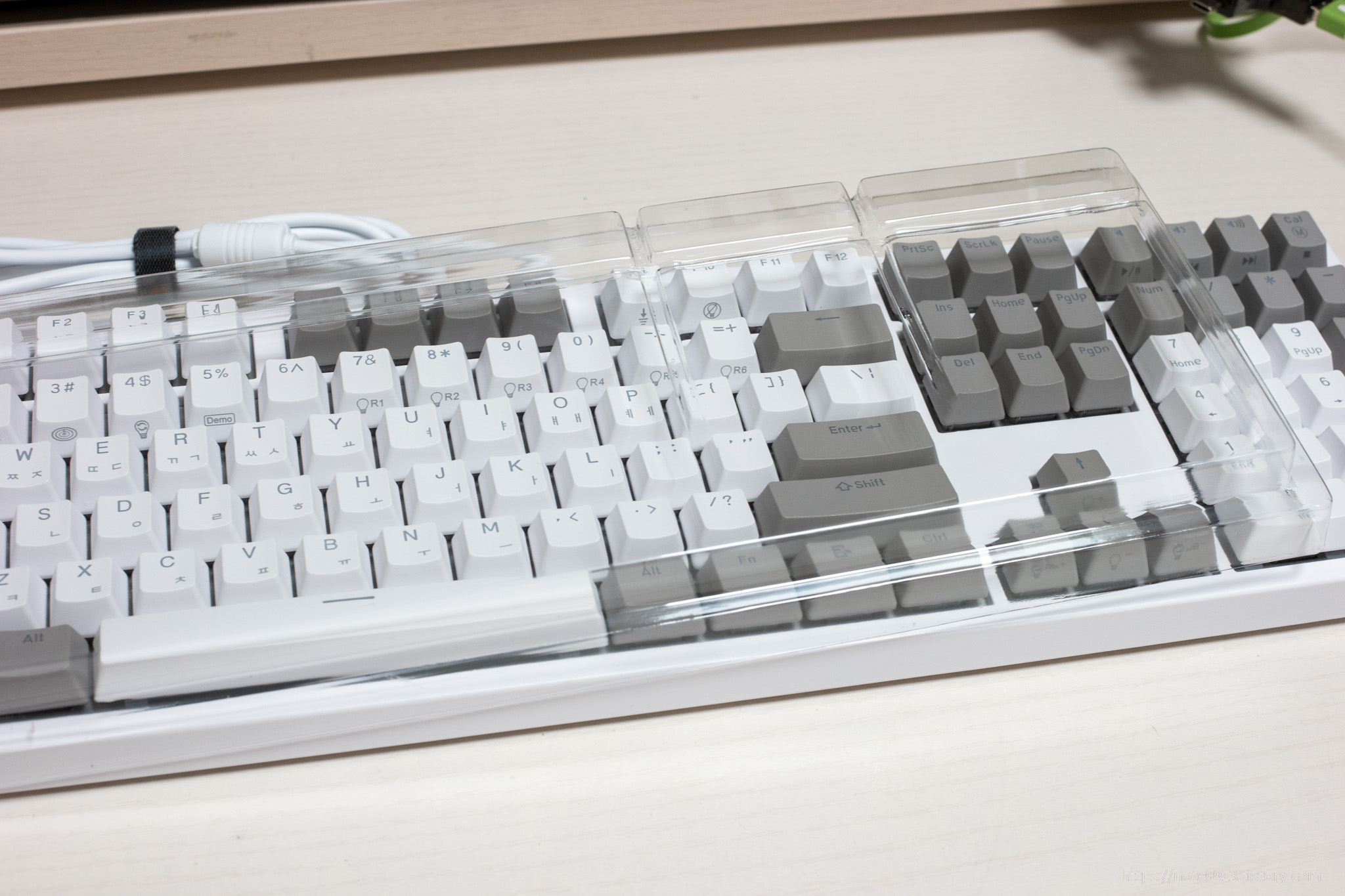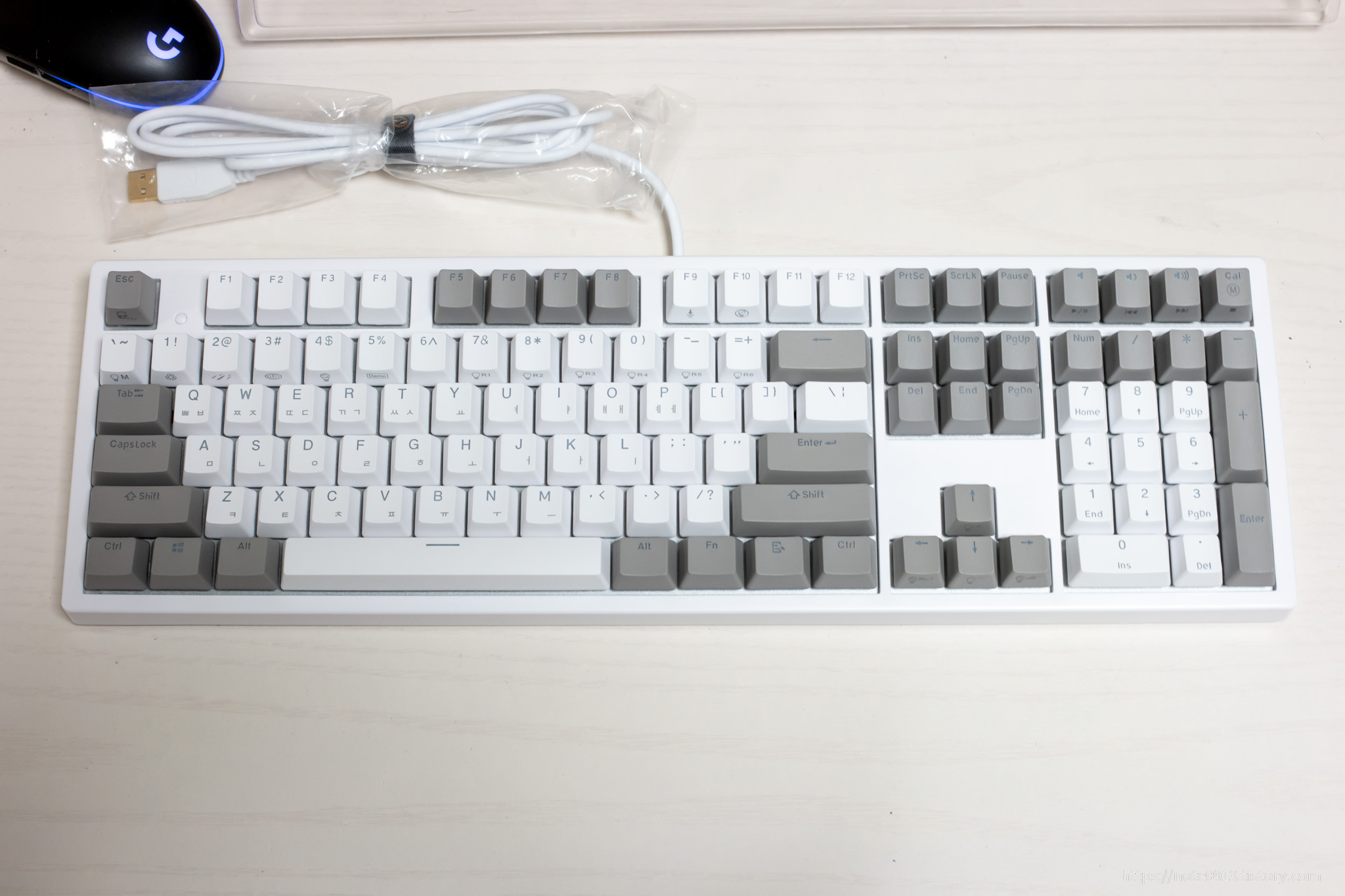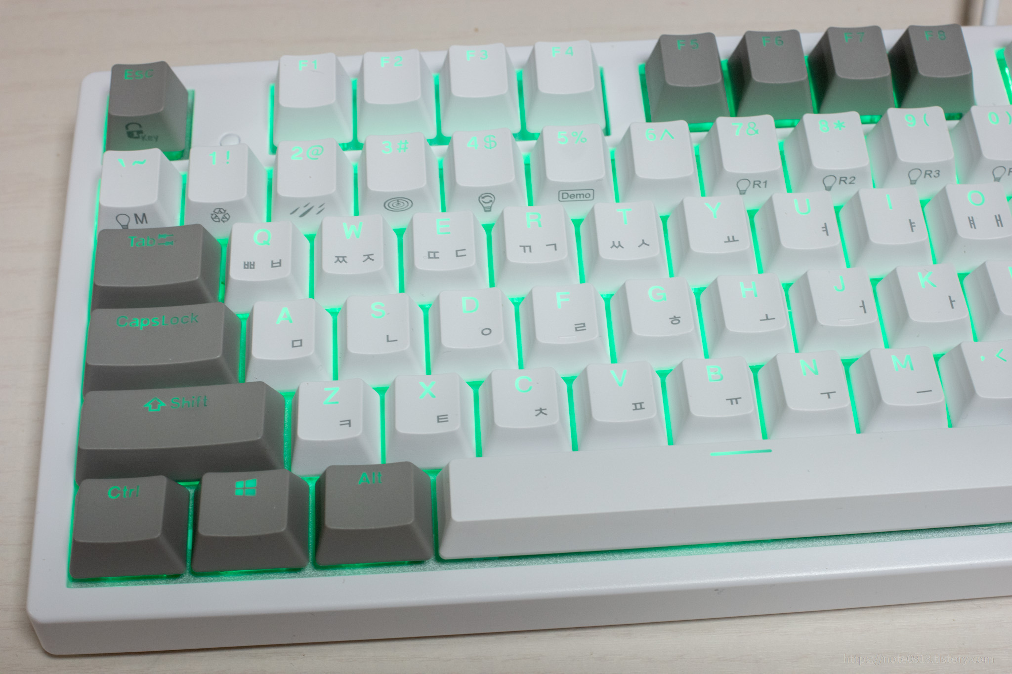 가까이에서 찍은 엠프리스 키보드입니다. 화이트와 그레이 조합으로 괜찮은 색상인 거 같습니다.