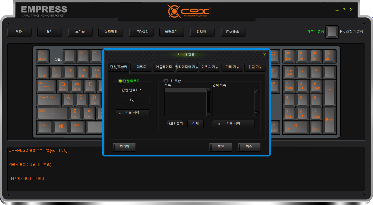 저 Cal 버튼을 제대로 사용하기 위해서는 콕스에서 제공하는 키보드 프로그램을 이용하면 사용자가 직접 각 키에 원하는 키나 매크로를 지정할 수 있습니다.