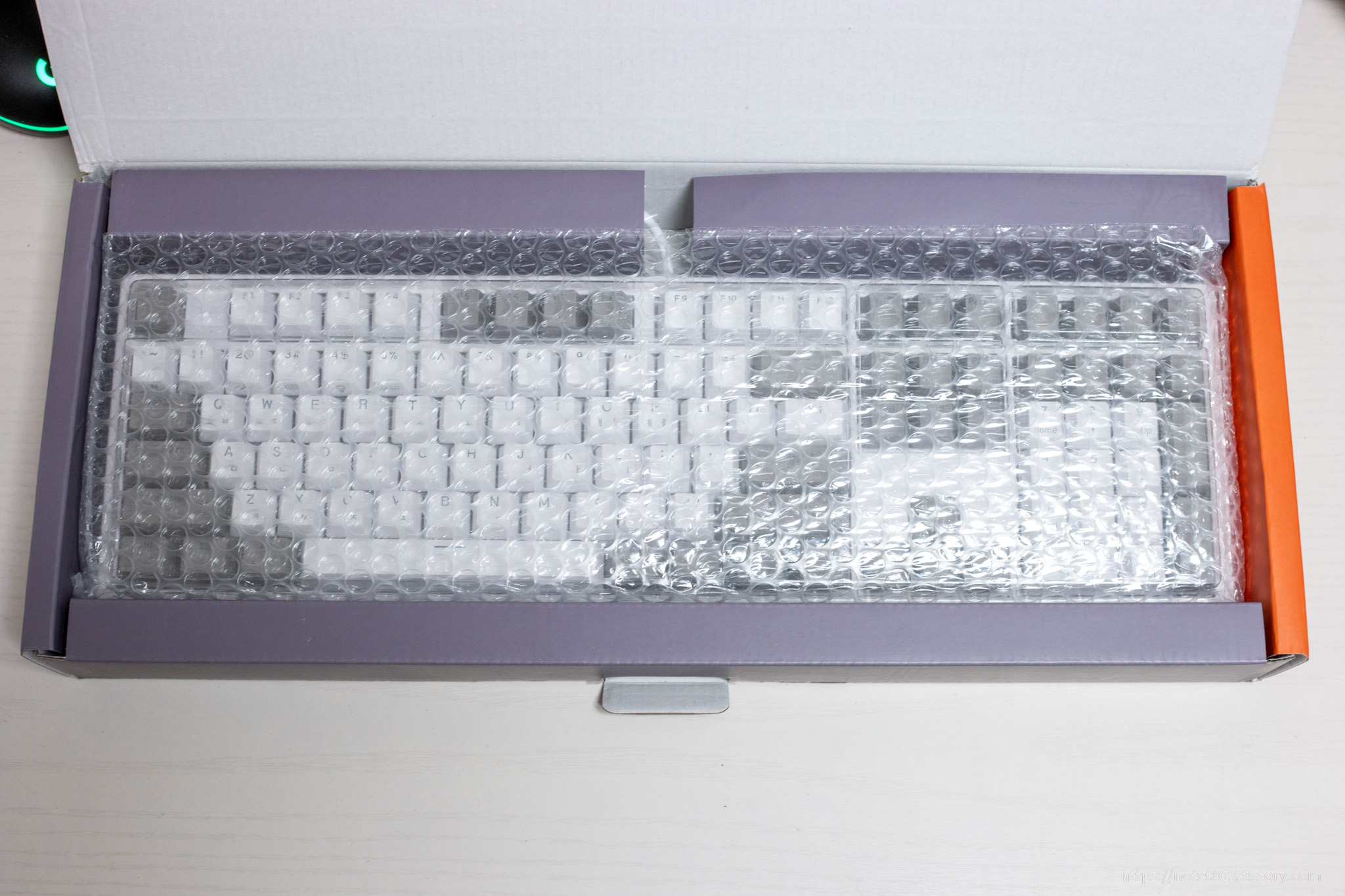 박스를 개봉하면 에어캡으로 키보드가 감싸져있습니다.