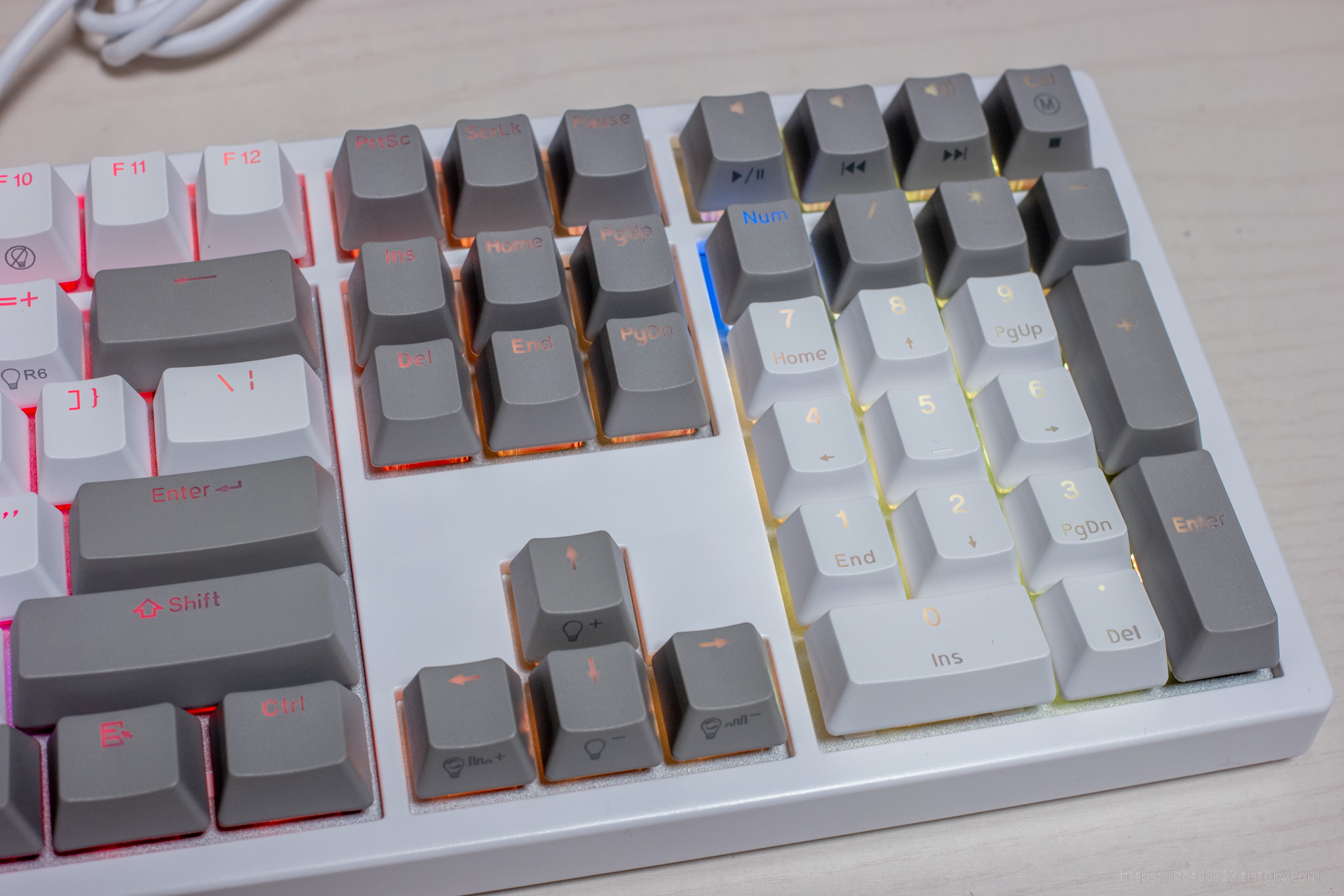 가까이에서 찍은 엠프리스 키보드입니다. 화이트와 그레이 조합으로 괜찮은 색상인 거 같습니다.