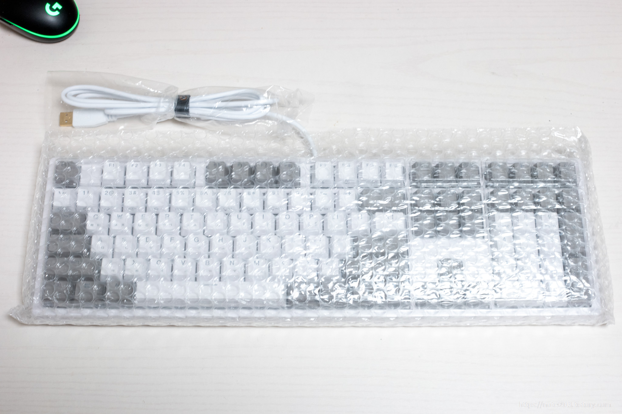 박스를 개봉하면 에어캡으로 키보드가 감싸져있습니다.