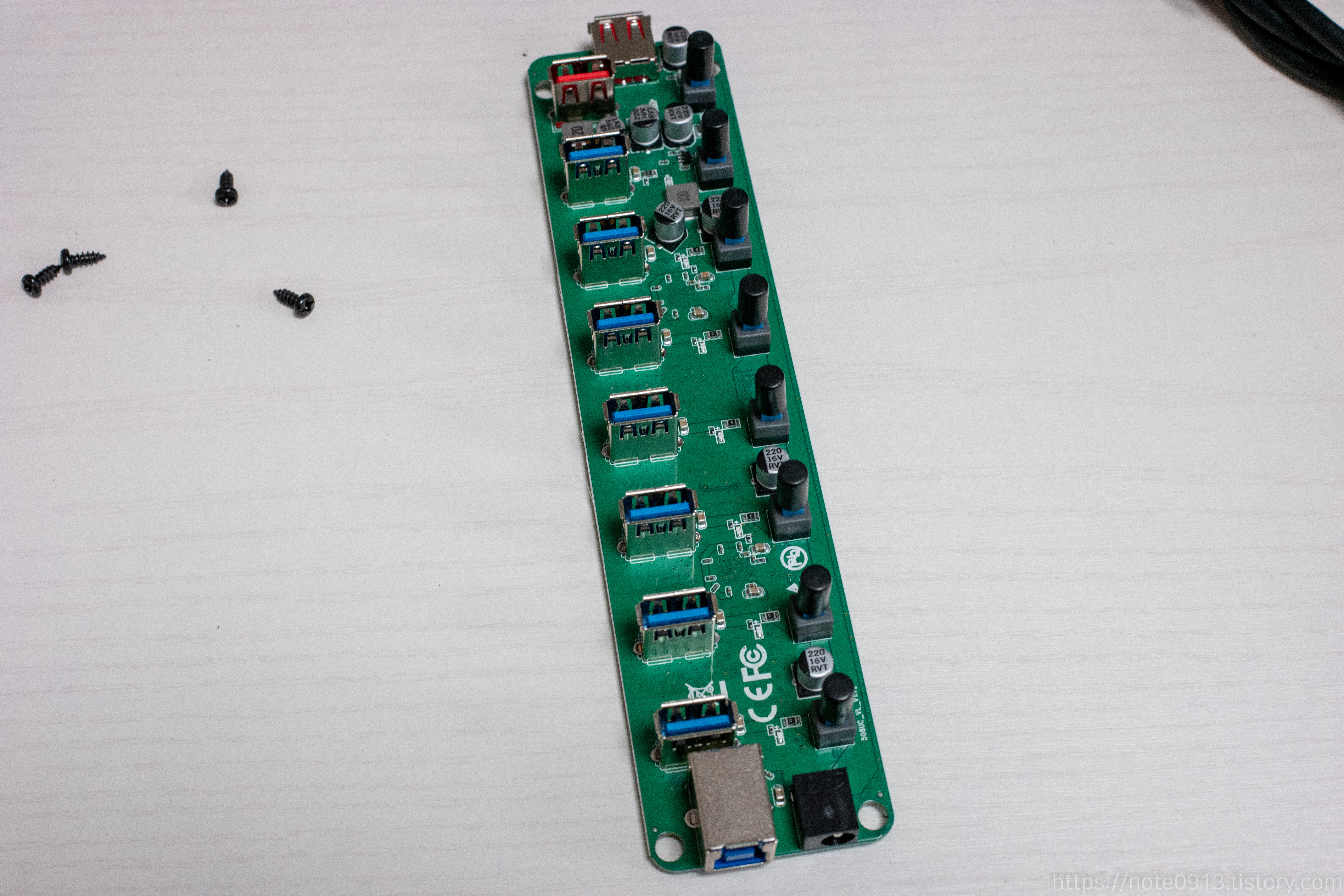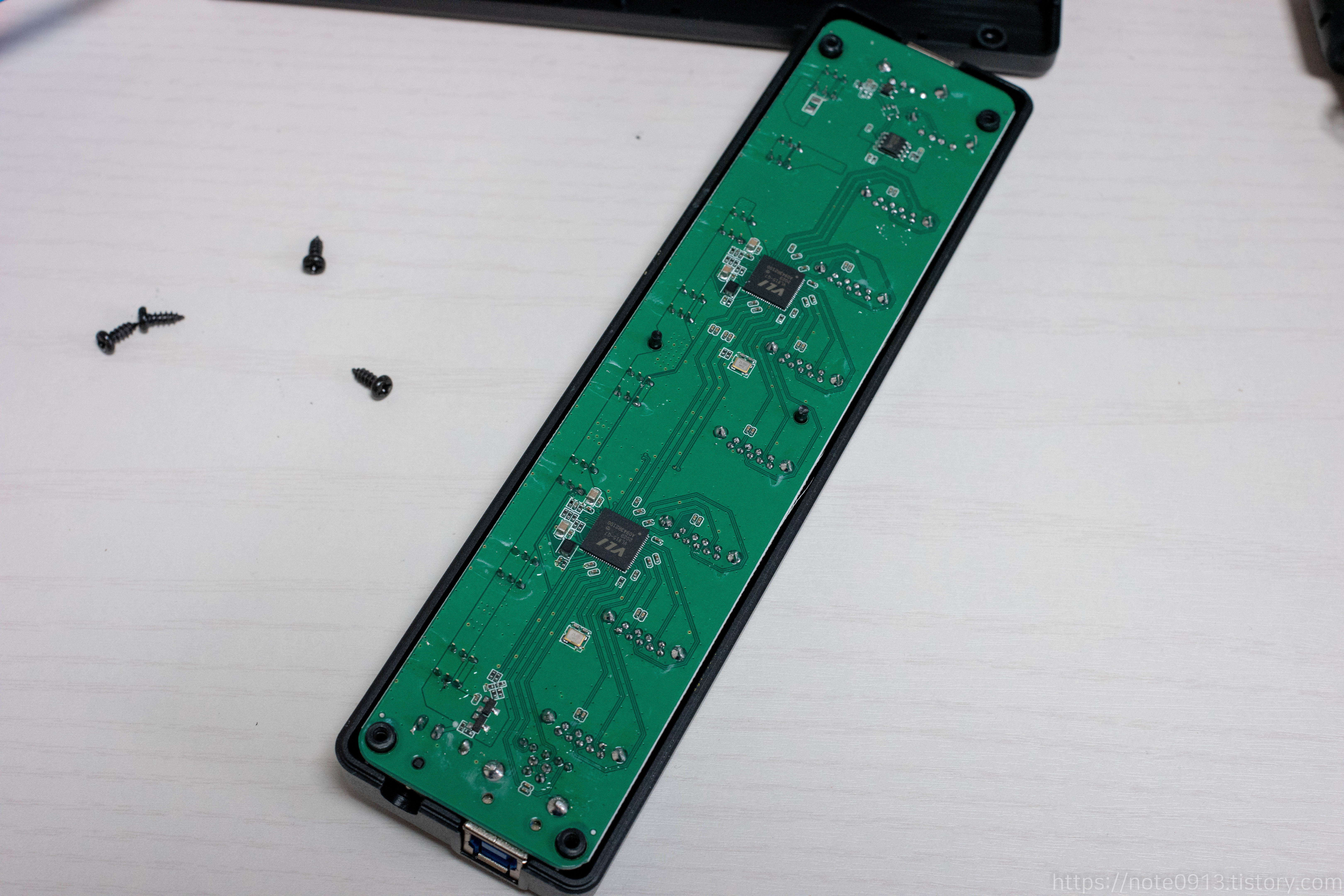 보니까 4포트 USB 3.0 칩셋을 2개를 연결해서 7포트 USB 3.0 허브로 구성되어있습니다.