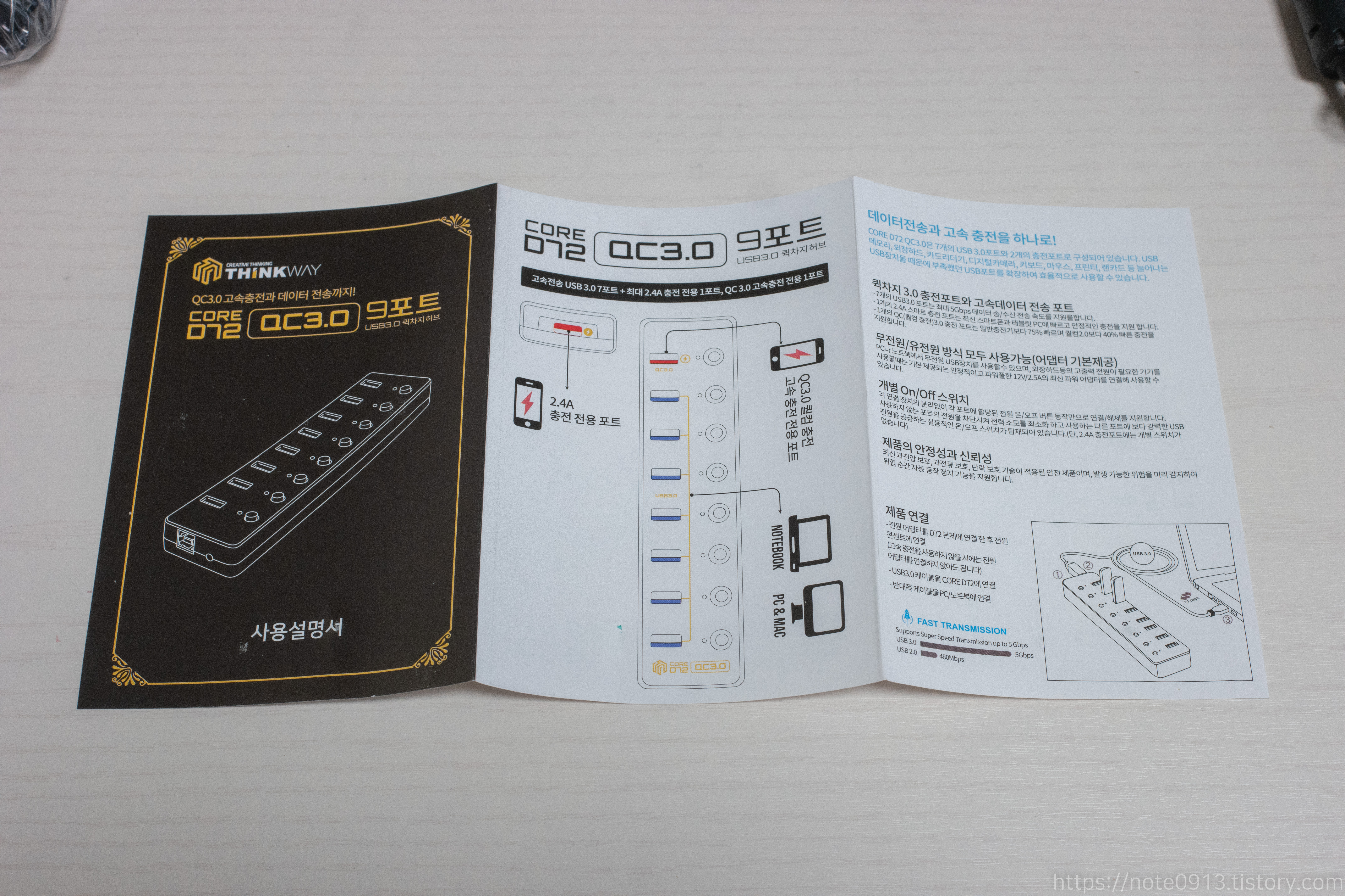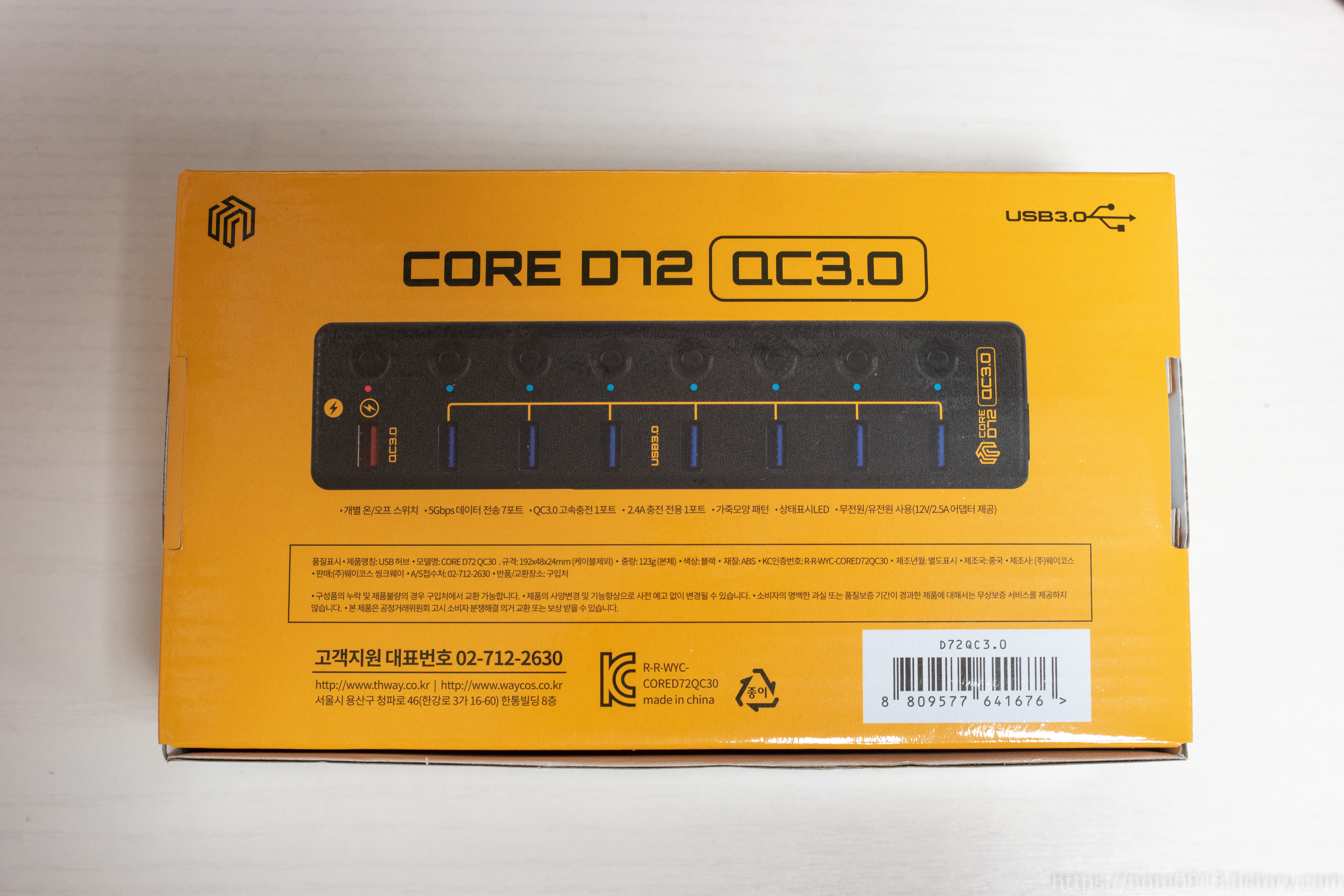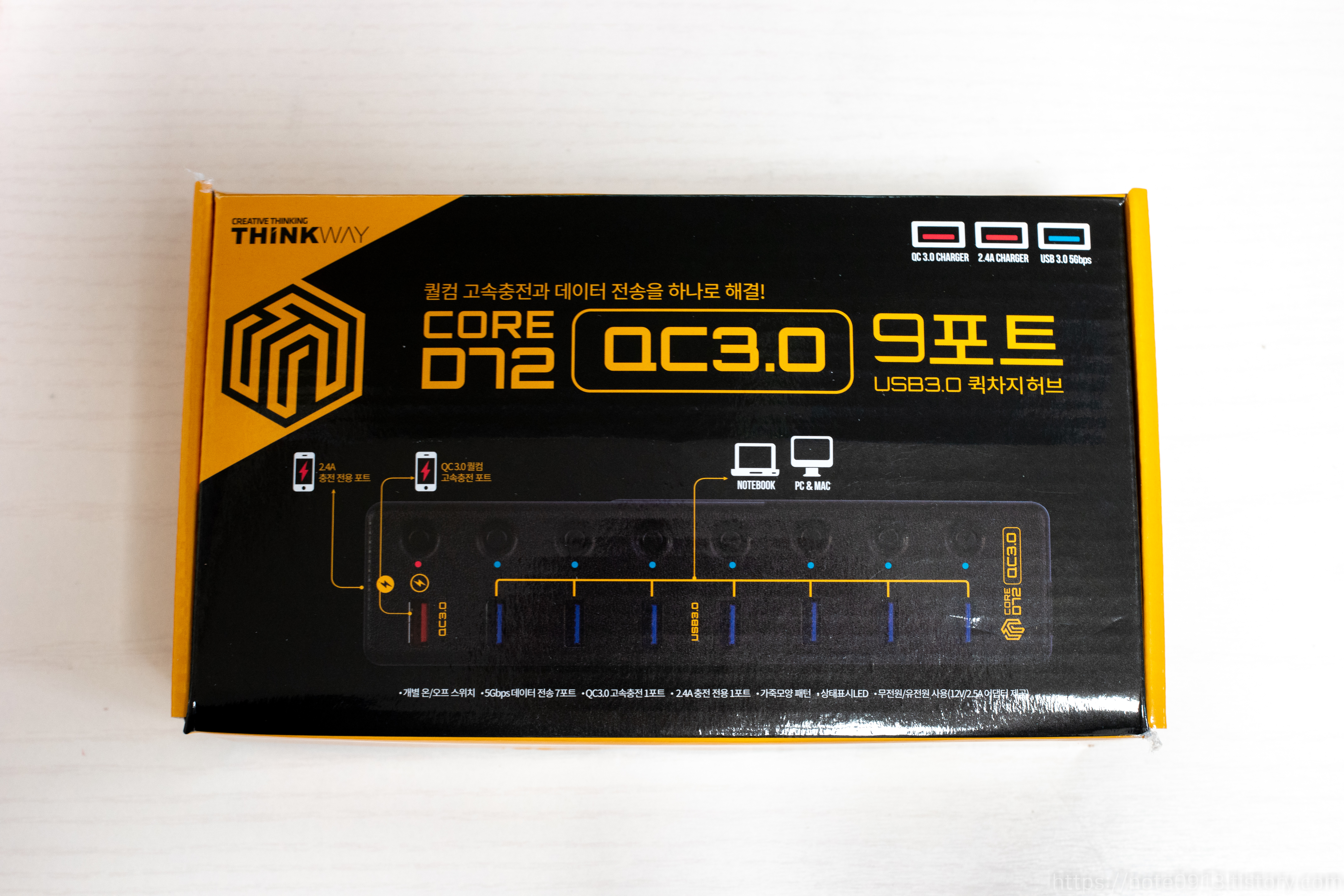 씽크웨이의 USB 3.0 허브 Core D72 제품의 박스입니다.