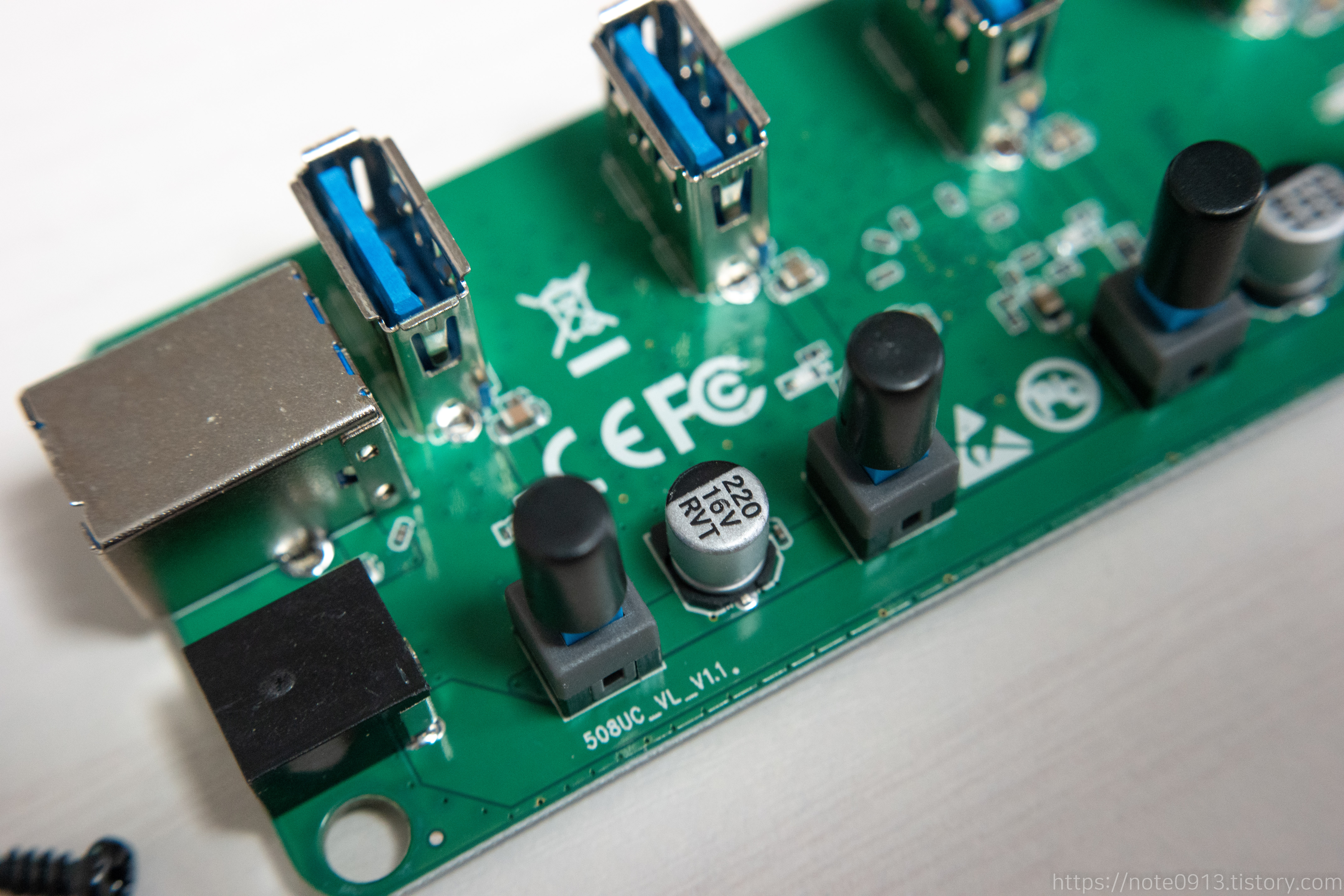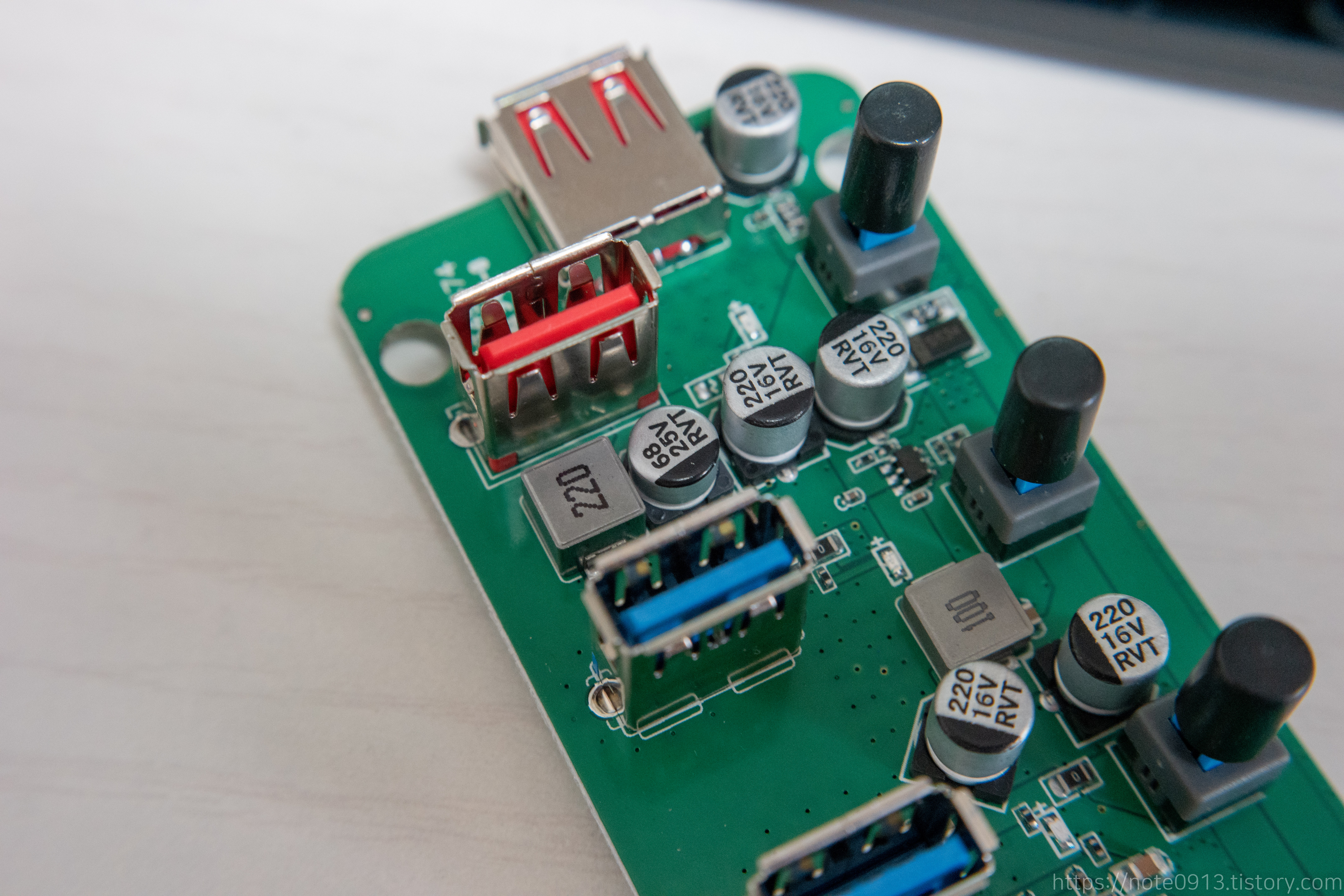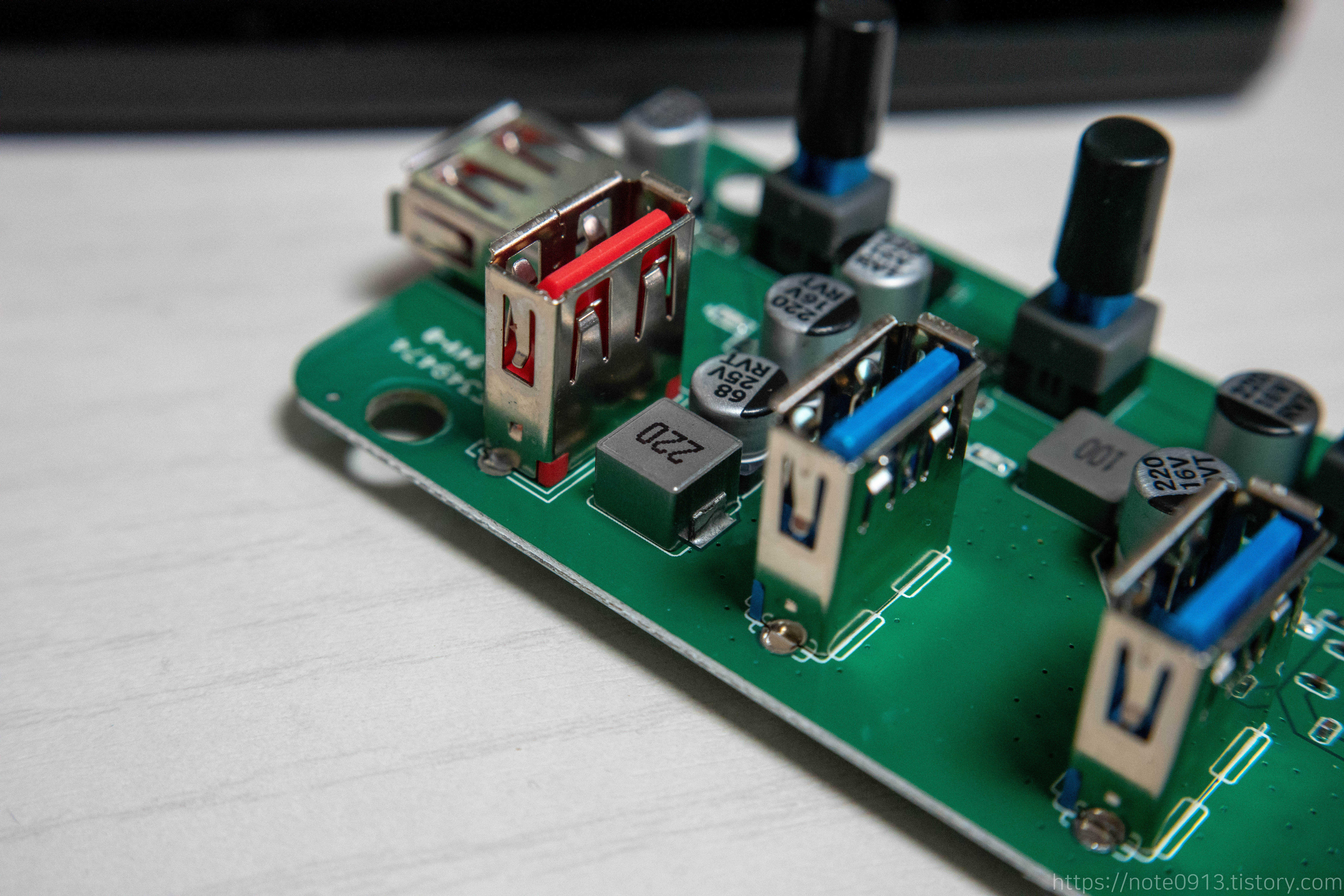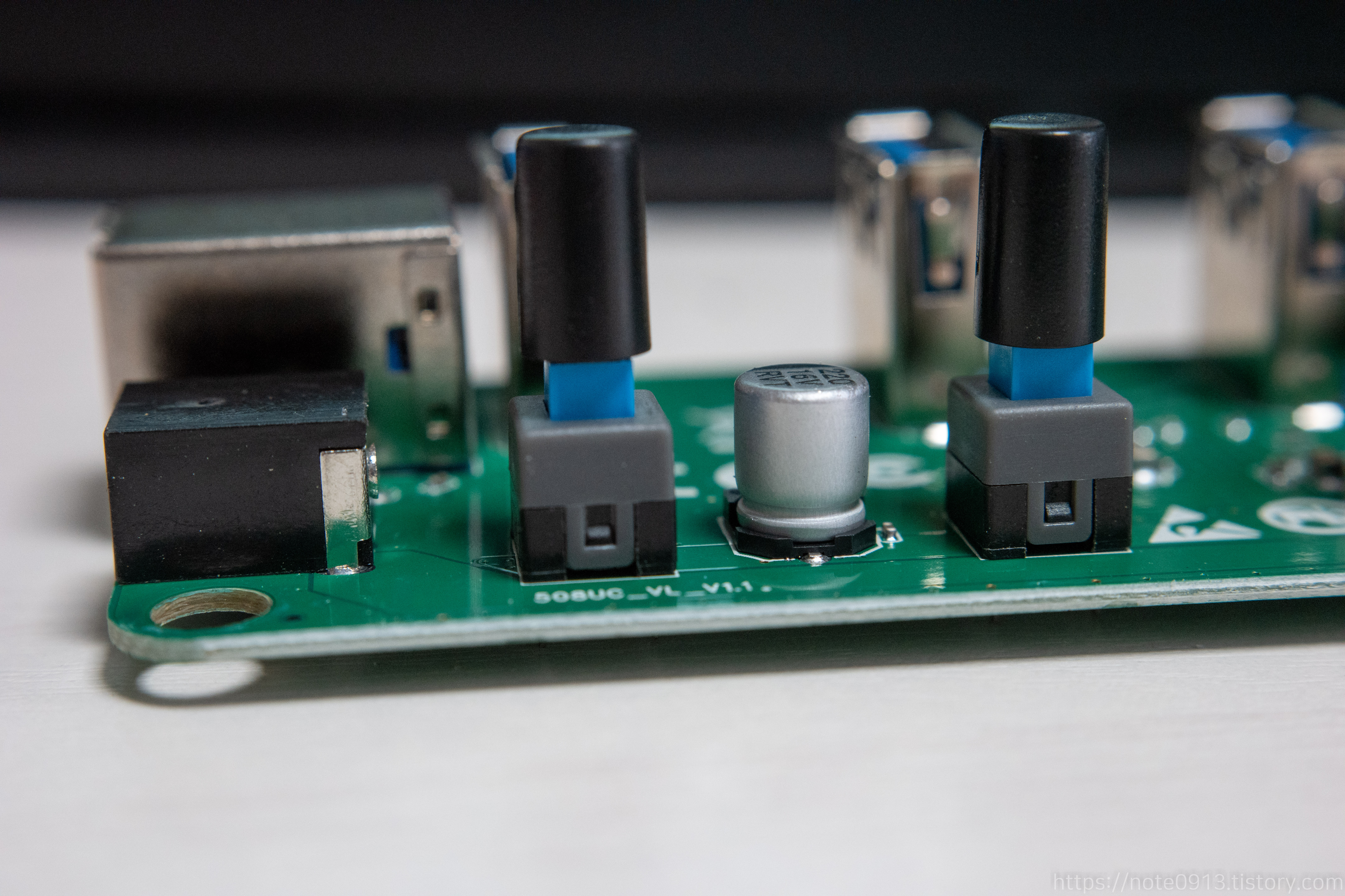 USB 단자 쪽은 ON/OFF를 위한 스위치가 있고 그래도 나름 알루미늄 커패시터가 사용되었습니다.