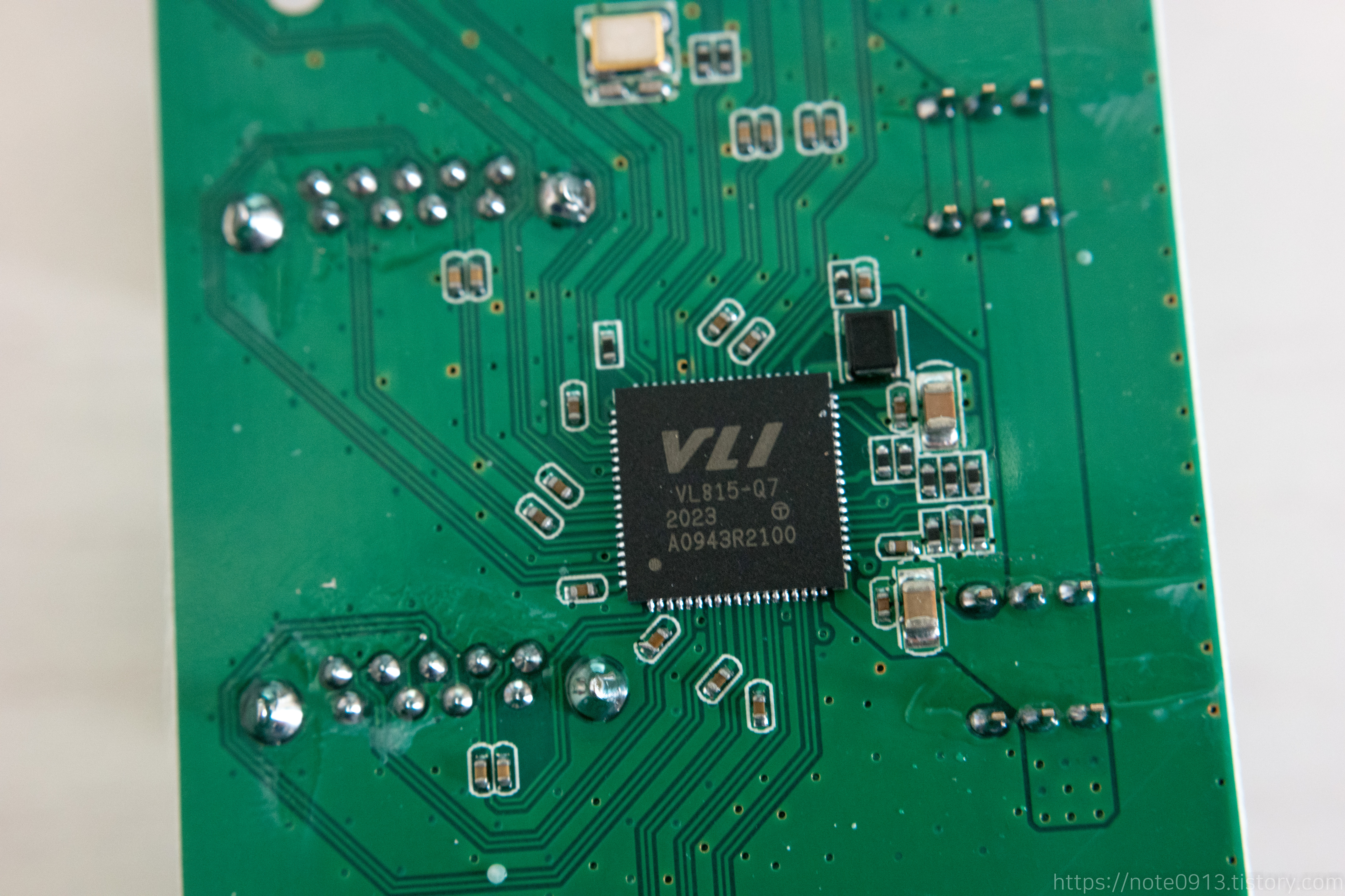 사용된 USB 3.0 허브 칩셋입니다. VLI의 VL815-Q7 이라는 칩을 사용합니다. 데이터시트를 찾아보니 4포트 USB 3.0 칩셋으로 나옵니다.