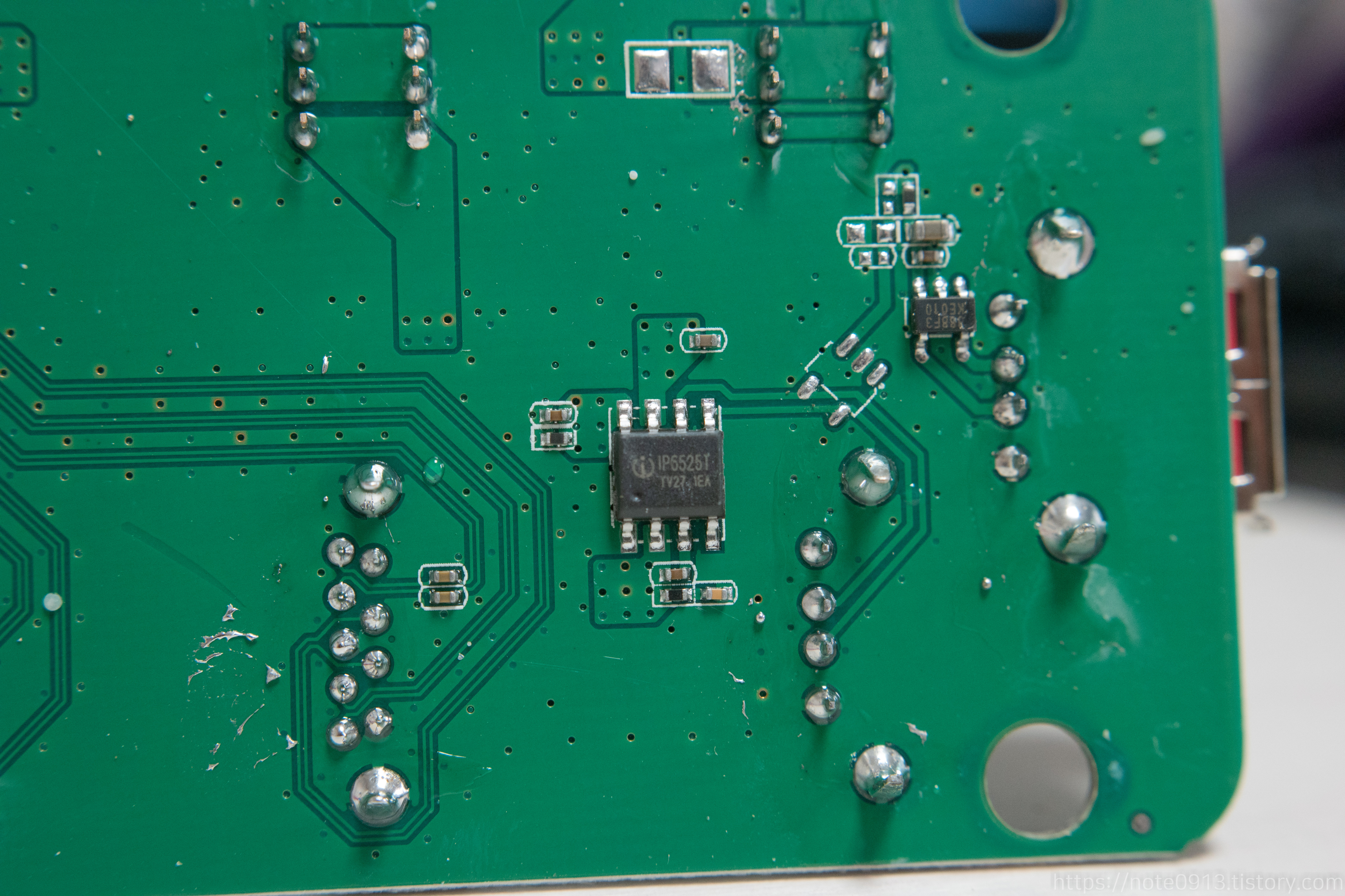 퀵차지 부분에는 IP6525T 라는 칩을 사용합니다. 이것도 구글에 검색해보면 퀄컴의 퀵차지 관련 칩으로 데이터시트가 나옵니다.