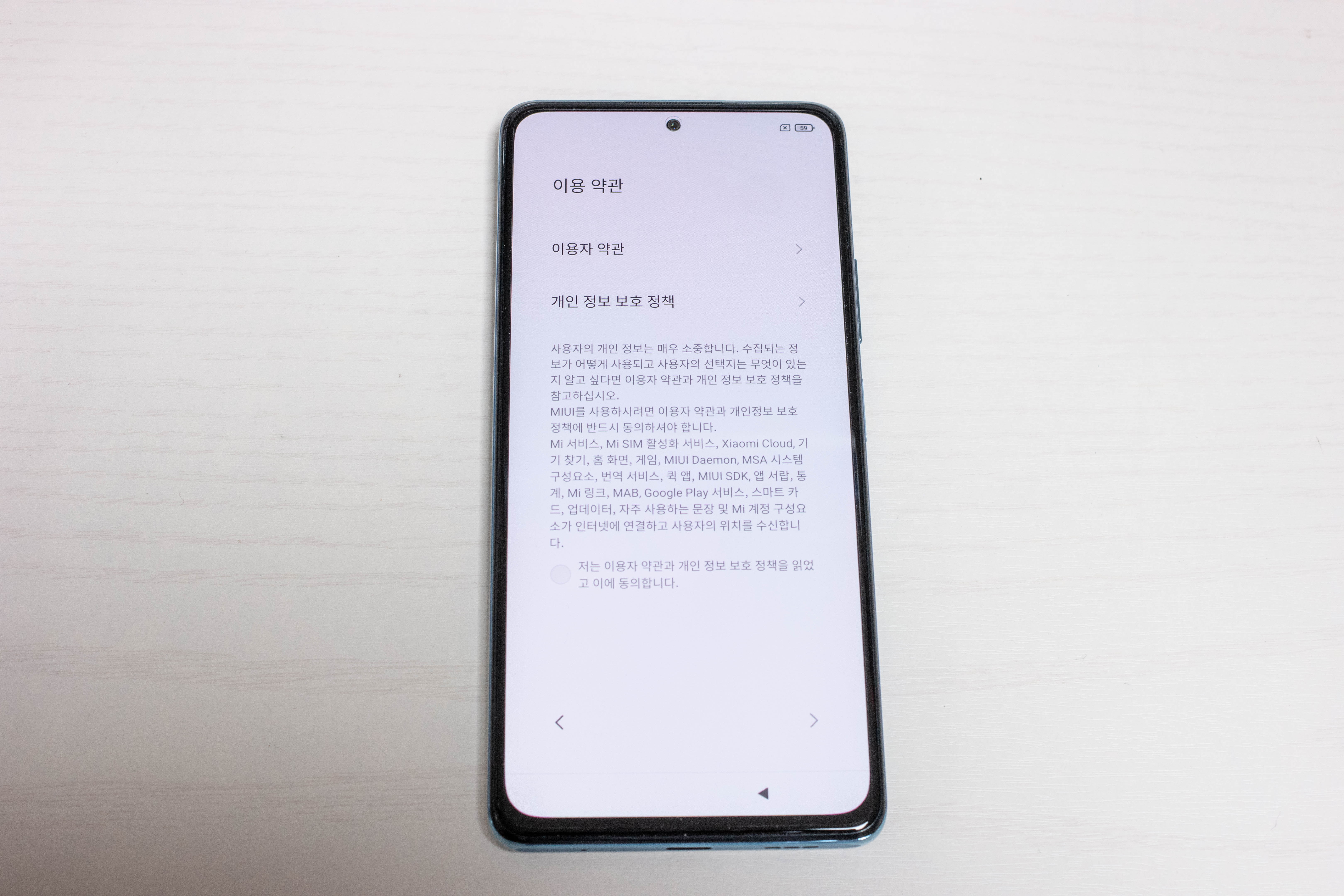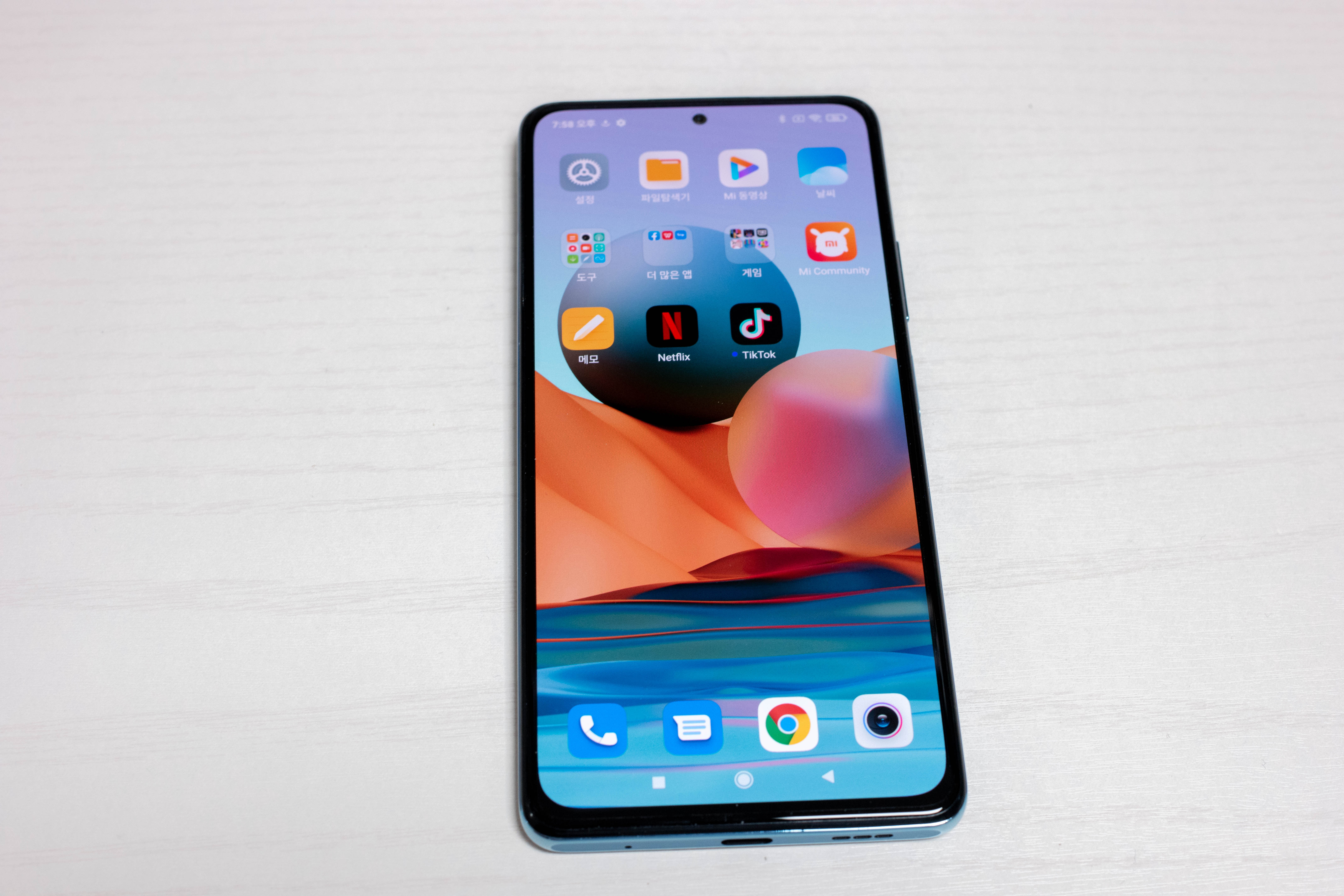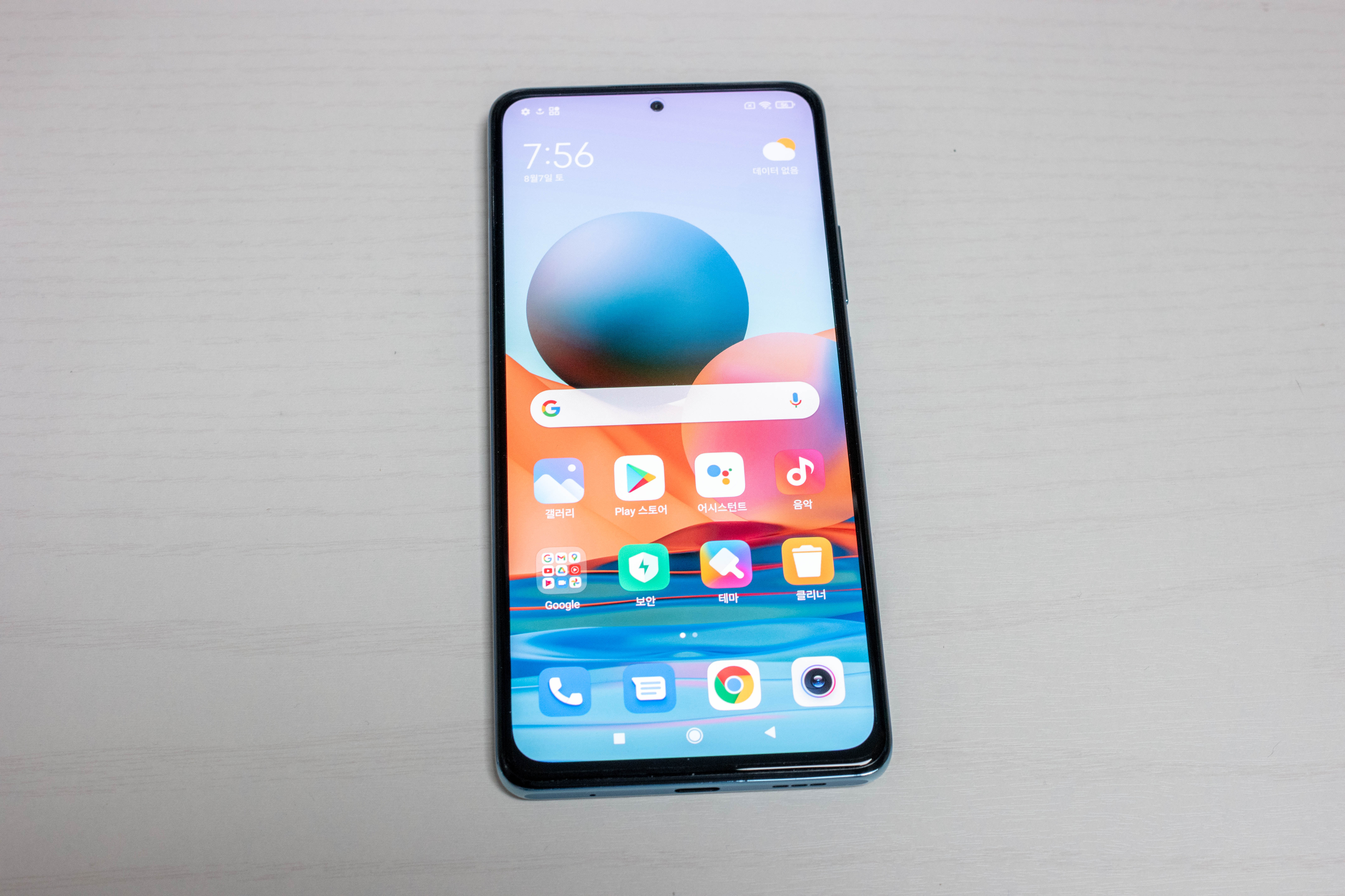 비닐을 제거하니 넓은 화면이 반겨줍니다. 홍미노트 10 프로는 기본 보호필름이 붙어 있어서 필름을 구매하지 않아도 바로 사용할 수 있어서 좋은 거 같습니다. 다만 필름이 얇고 스크래치가 잘나는 PET 재질이라서 임시로 쓰는게 좋을거 같네요.