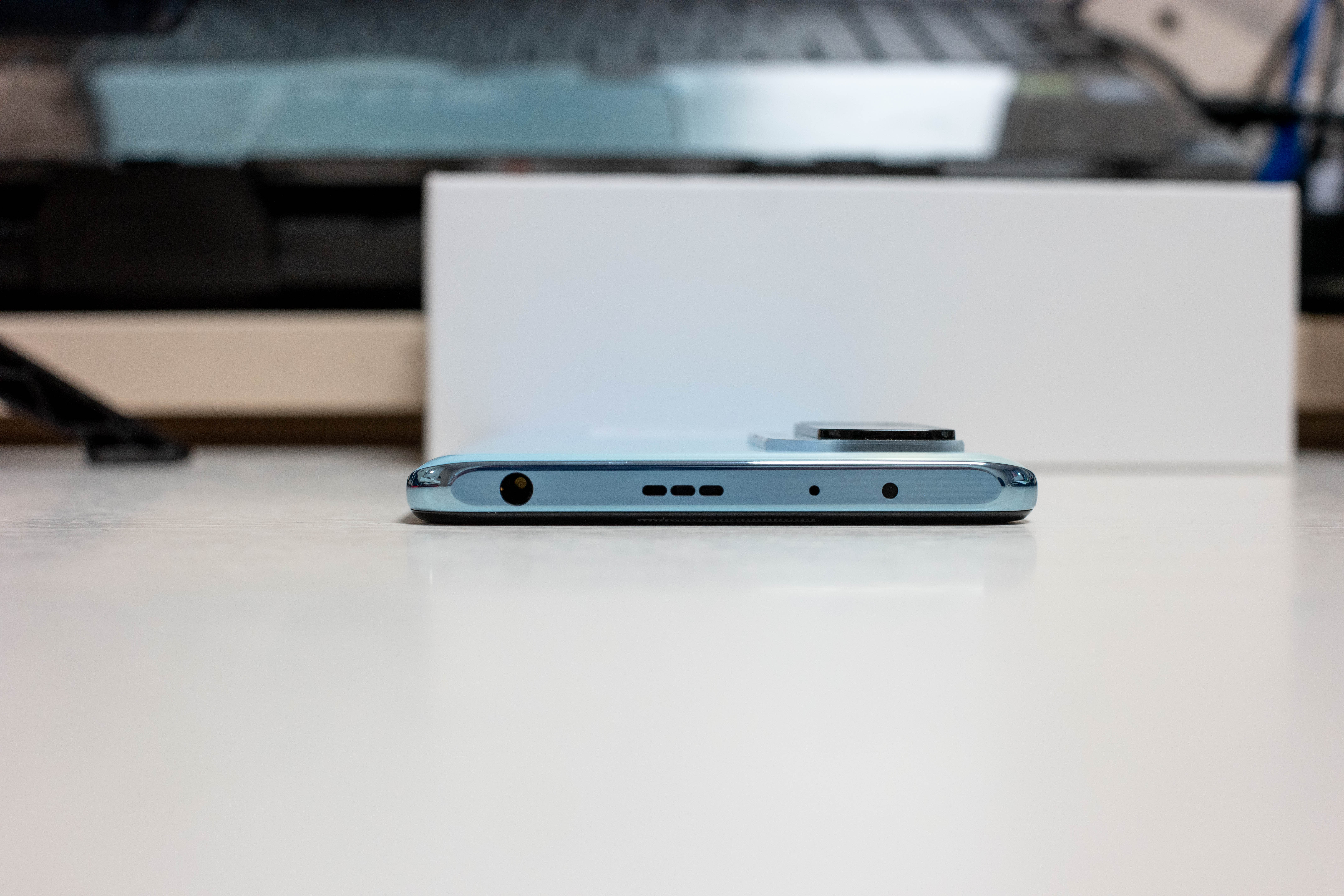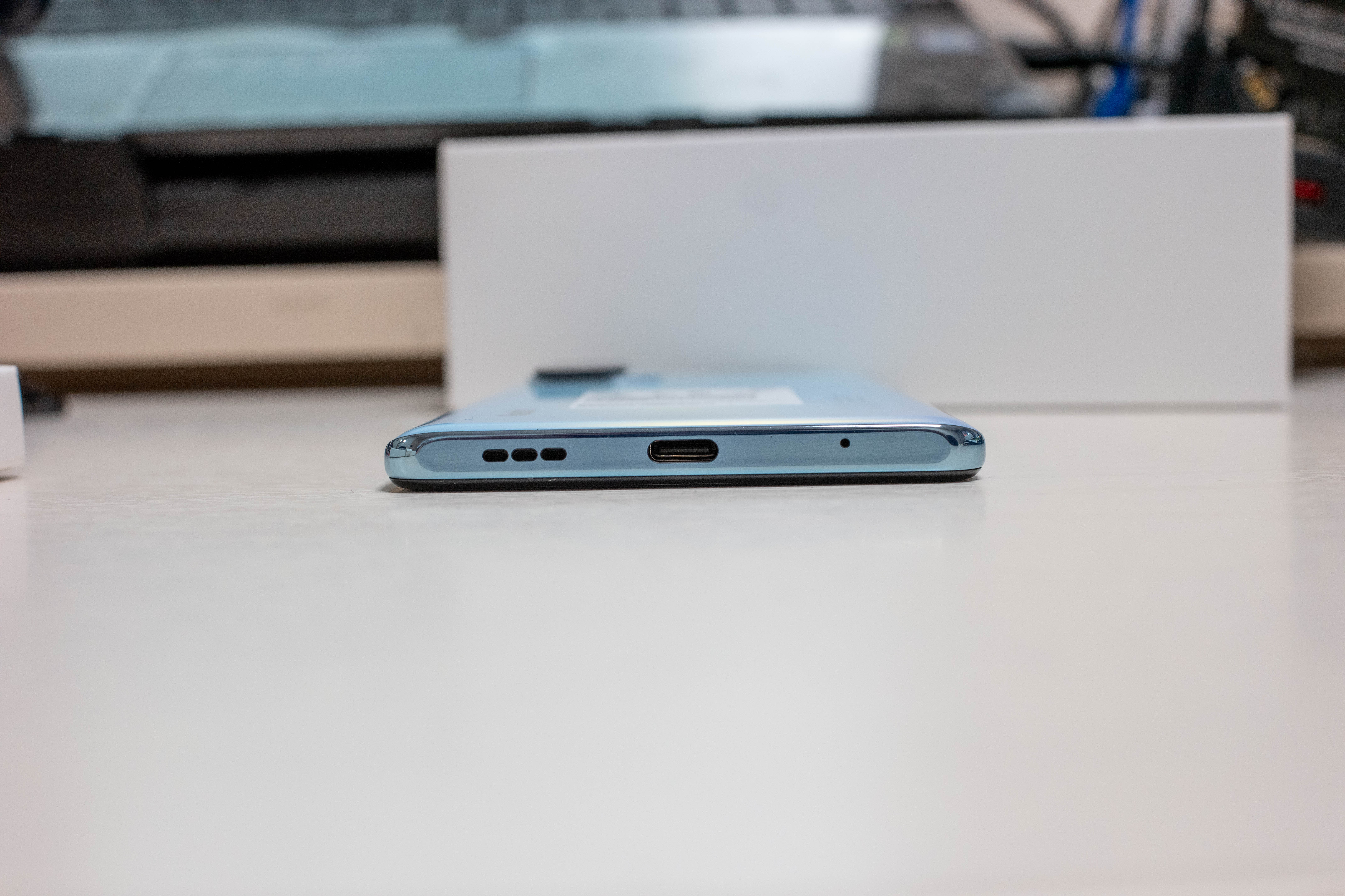 하단 부분에는 C 타입 포트가 있으며 스피커와 마이크가 자리잡고 있습니다.