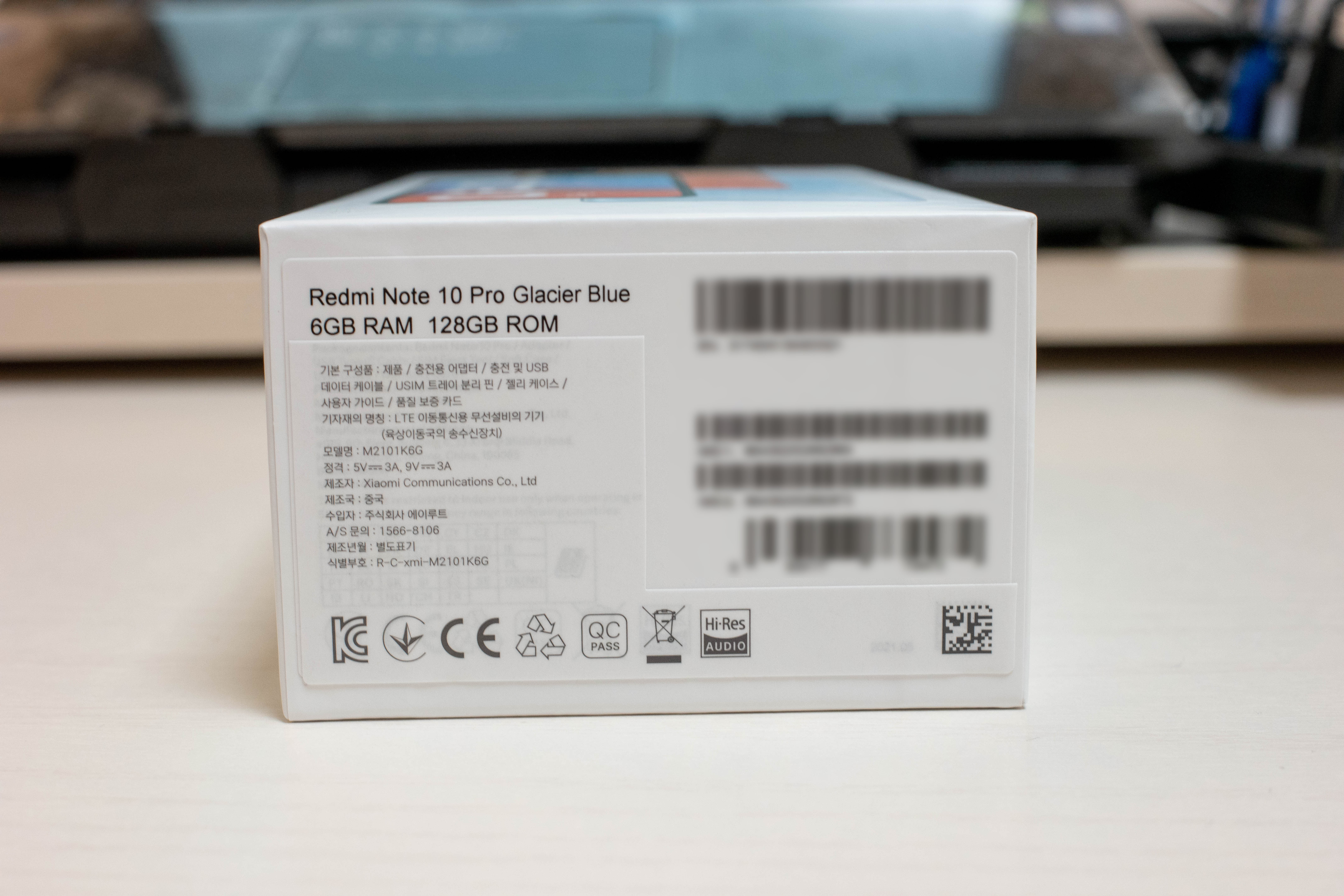 좌우 옆면에 Redmi Note 10 Pro 라고 적혀있습니다. 밑에 with easy access to the google apps you use most 라고 적혀있는데 구글 앱을 사용할 수 있다는 것을 강조하는 것 같습니다.
