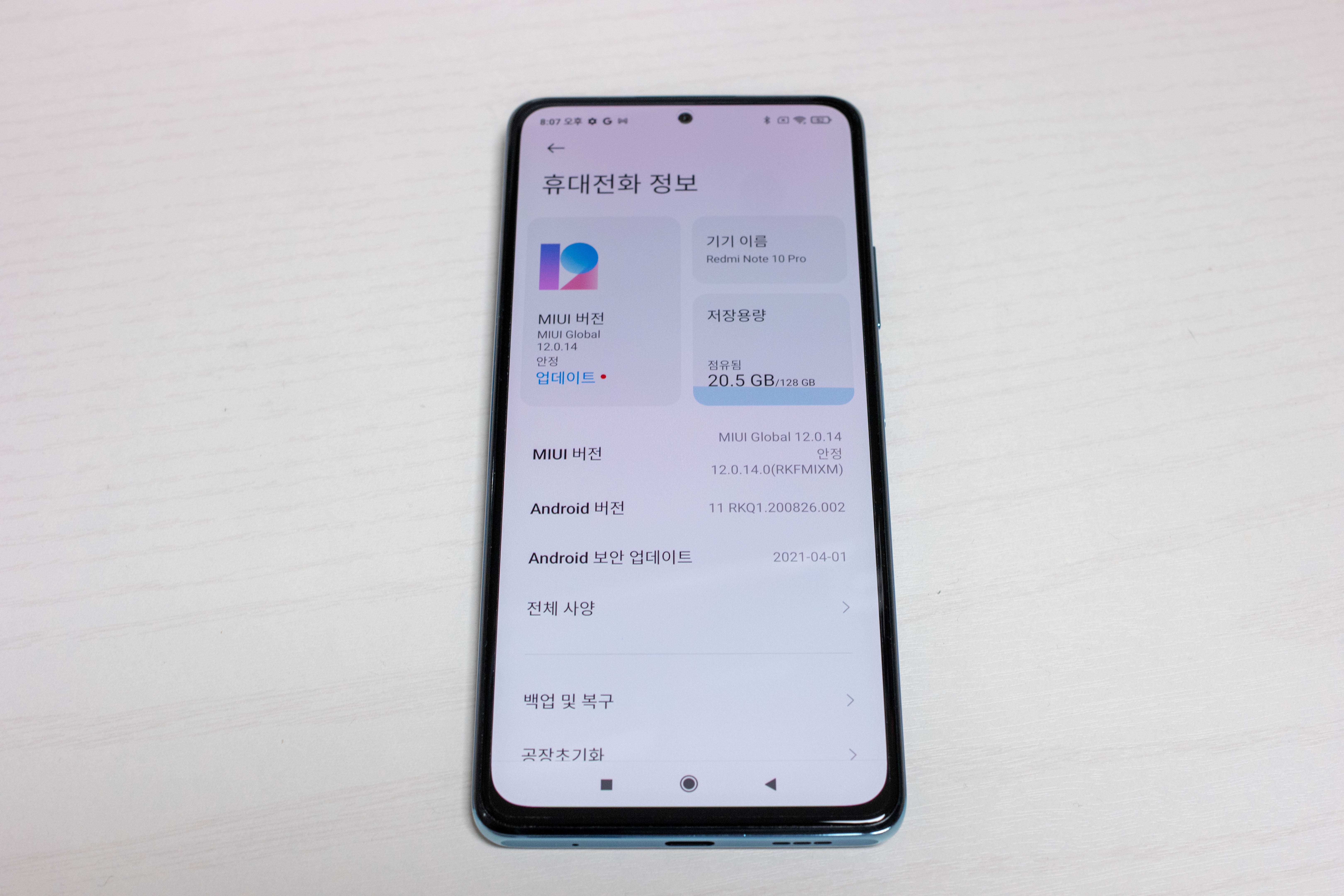 비닐을 제거하니 넓은 화면이 반겨줍니다. 홍미노트 10 프로는 기본 보호필름이 붙어 있어서 필름을 구매하지 않아도 바로 사용할 수 있어서 좋은 거 같습니다. 다만 필름이 얇고 스크래치가 잘나는 PET 재질이라서 임시로 쓰는게 좋을거 같네요.