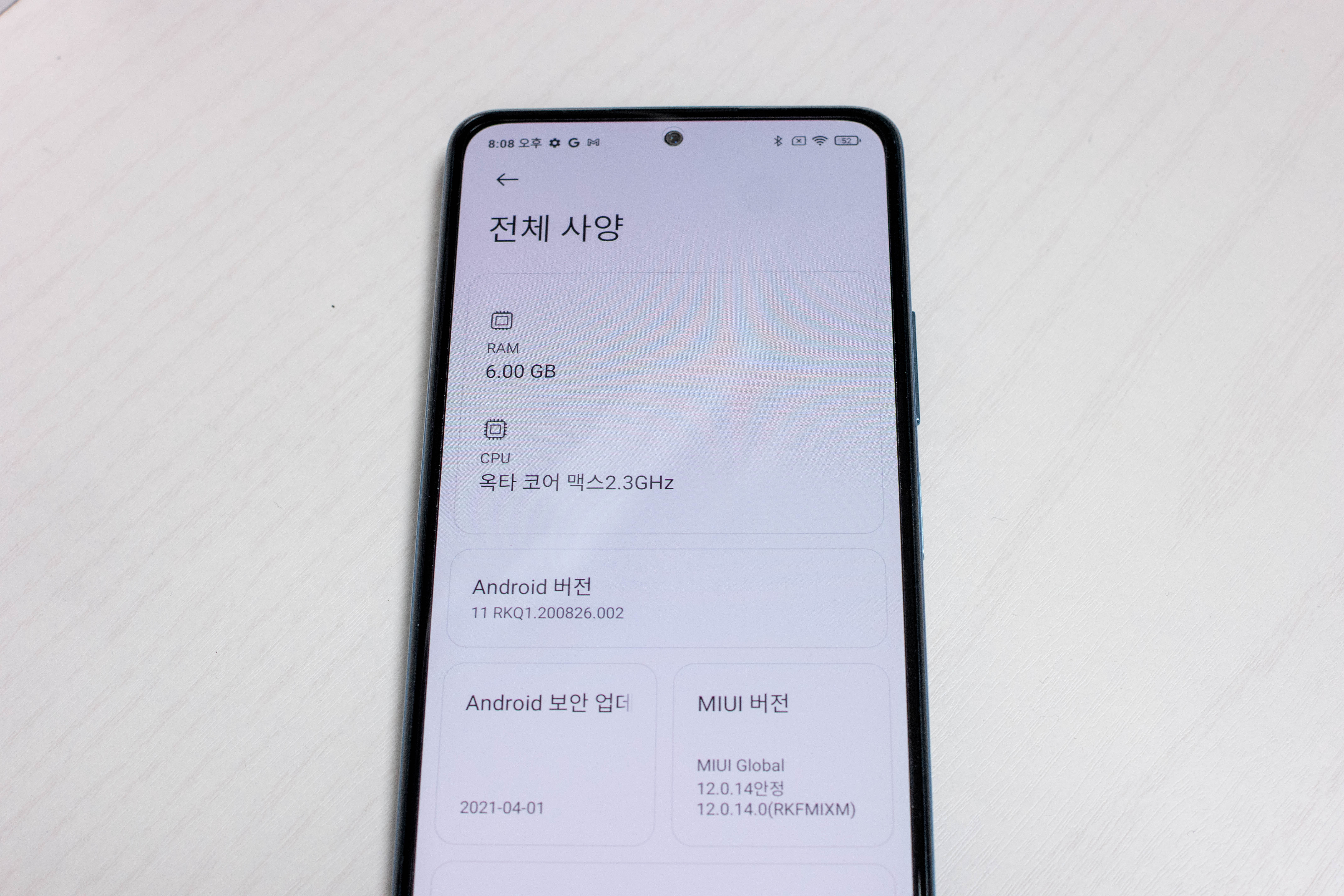 MIUI 12를 사용하고 있고 RAM은 6GB에 저장공간은 129GB입니다.