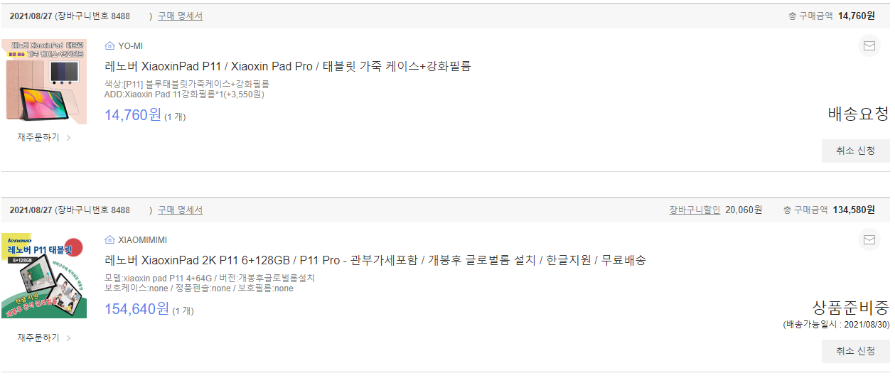 ▲레노버 P11 케이스 + 액정보호필름 링크