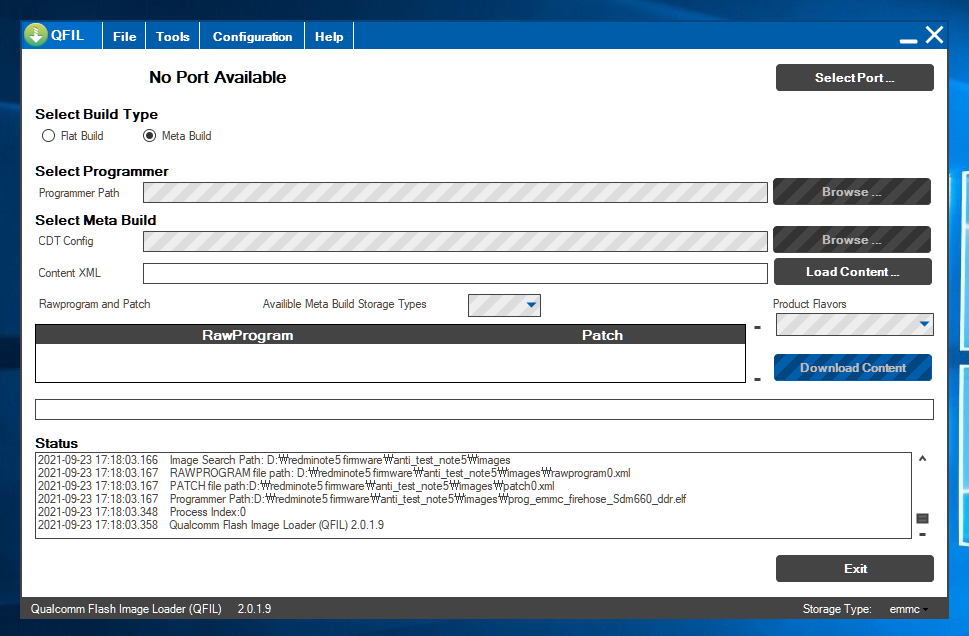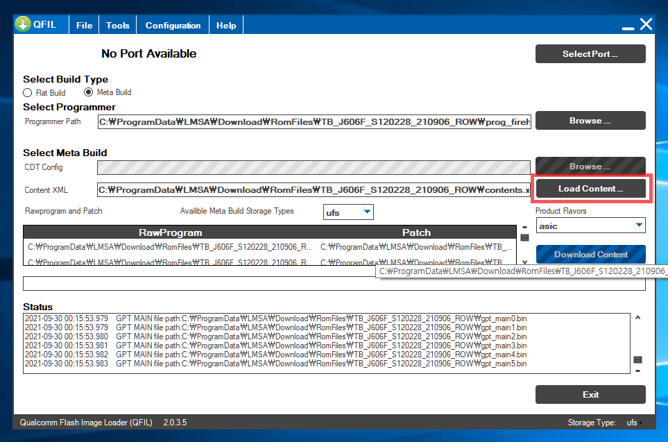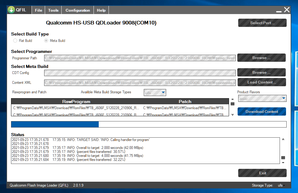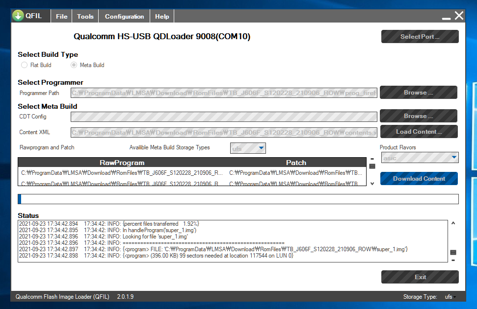 QFIL을 실행합니다. QPST를 설치하거나 래노버 레스큐 프로그램을 통해서 다운로드 받아서 실행할 수 있습니다.