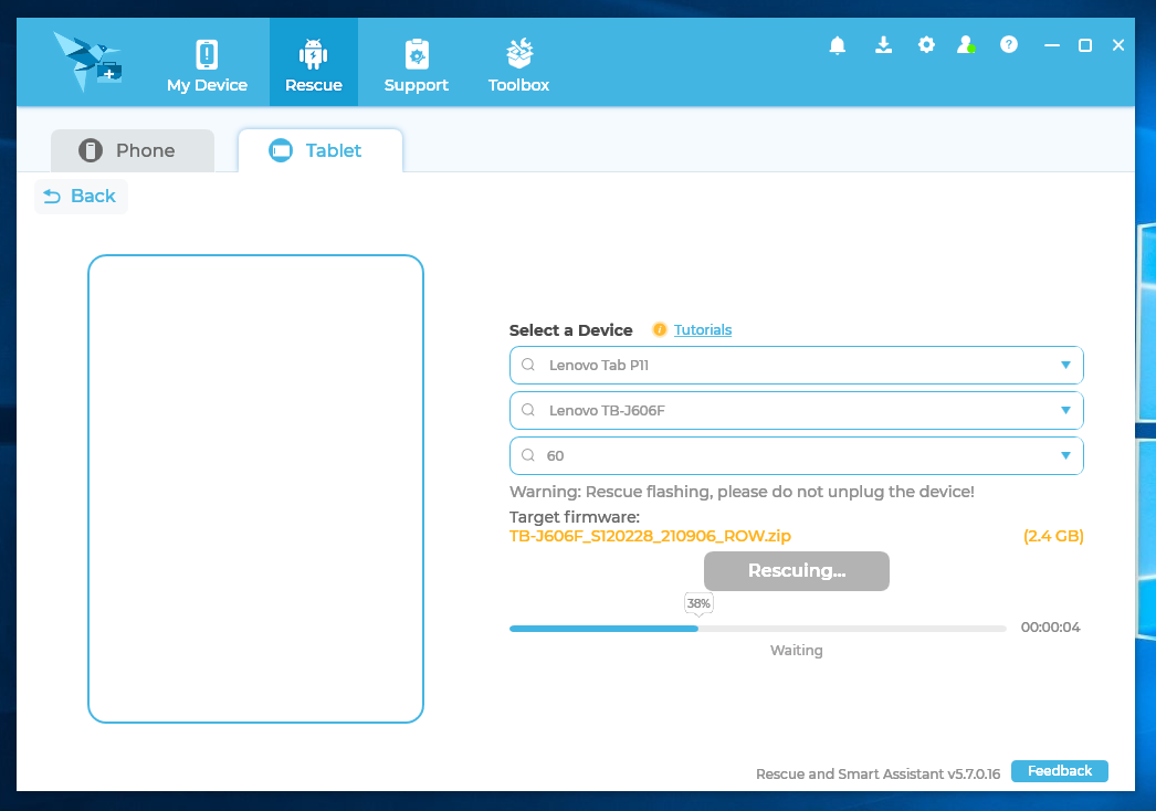 그러나 현재 내수용 롬(중국롬)이 설치되어 있다면 Rescue and Smart Assistant 에서 자동으로 롬을 선택하므로 내수용 롬에서 글로벌 롬으로 설치하려면 먼저 P11 태블릿을 연결하지 않고 Rescue and Smart Assistant를 실행해야 합니다.