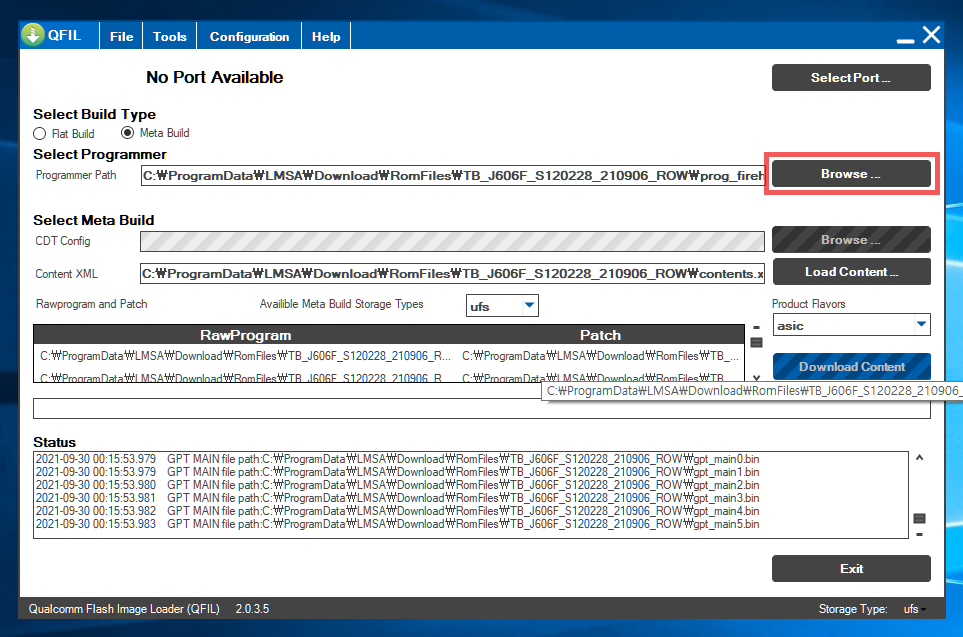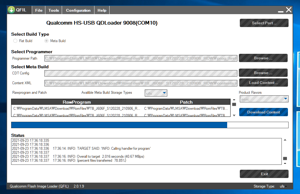 QFIL을 실행합니다. QPST를 설치하거나 래노버 레스큐 프로그램을 통해서 다운로드 받아서 실행할 수 있습니다.