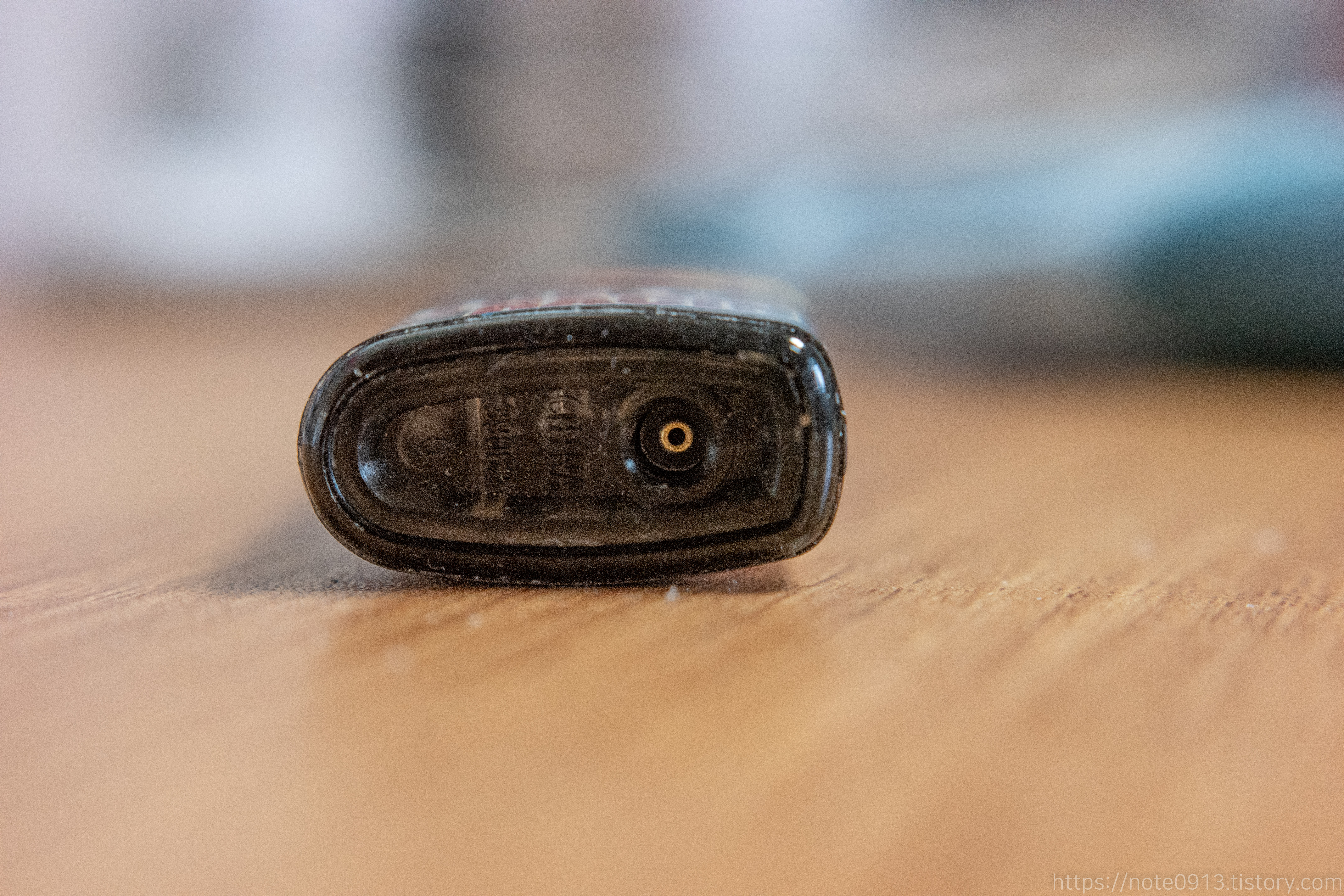 뒤쪽에는 사용방법이랑 주의사항등이 적혀있습니다. 성분은 액화부탄으로 시중에 판매되는 일반 부탄가스와 성분이 같습니다. 전에 일반 부탄가스로 라이터를 충전하려고 시도해보았는데 일반 부탄가스의 노즐 구멍이 크고 굵어서 라이터에 가스를 넣기 힘들었습니다.